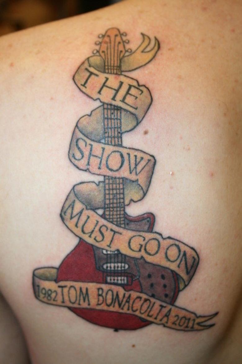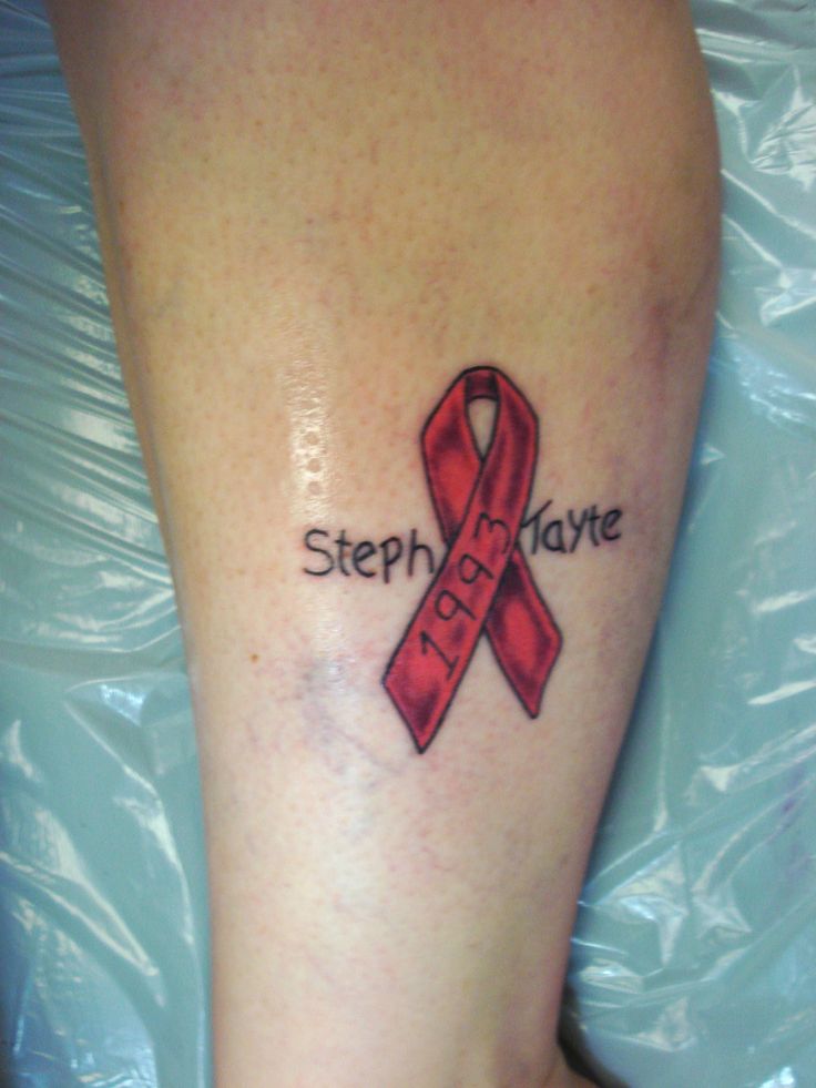 Les tatouages commémoratifs, qui représentent un ruban portant le nom d'un membre de la famille, sont appliqués en mémoire d'un membre de la famille qui a perdu la guerre avec cette affection la plus grave :