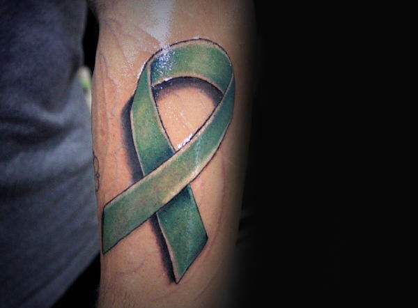 - Les tatouages en forme de ruban vert sont portés en signe de soutien aux survivants du cancer du rein.