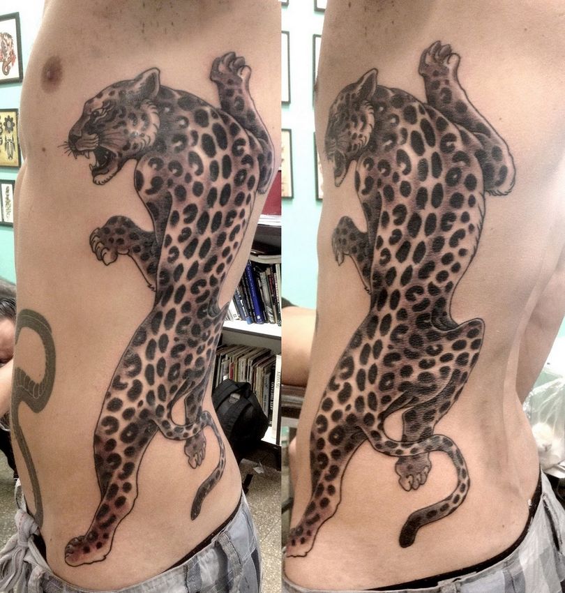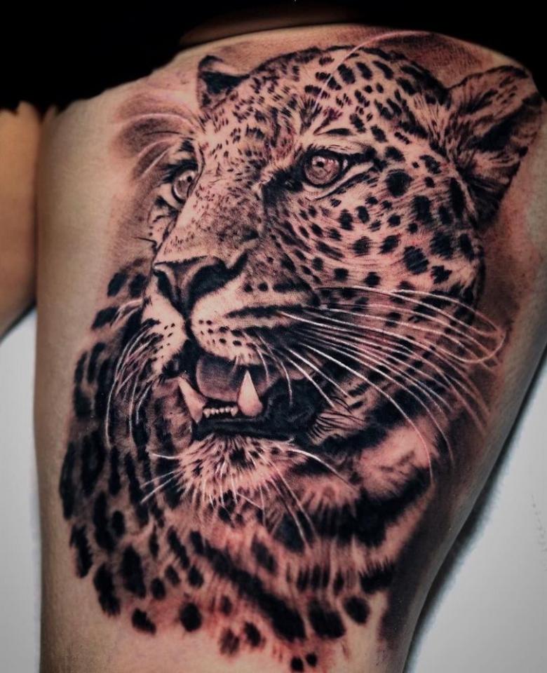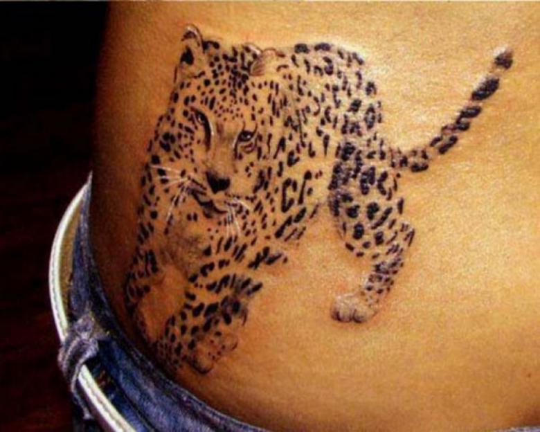 Informations utiles : Dans les temps anciens, les chefs portaient la peau de l'animal comme symbole de leur pouvoir, car elle était très appréciée dans la société. Aujourd'hui, c'est pratiquement impossible. Mais le tatouage en léopard est très populaire.