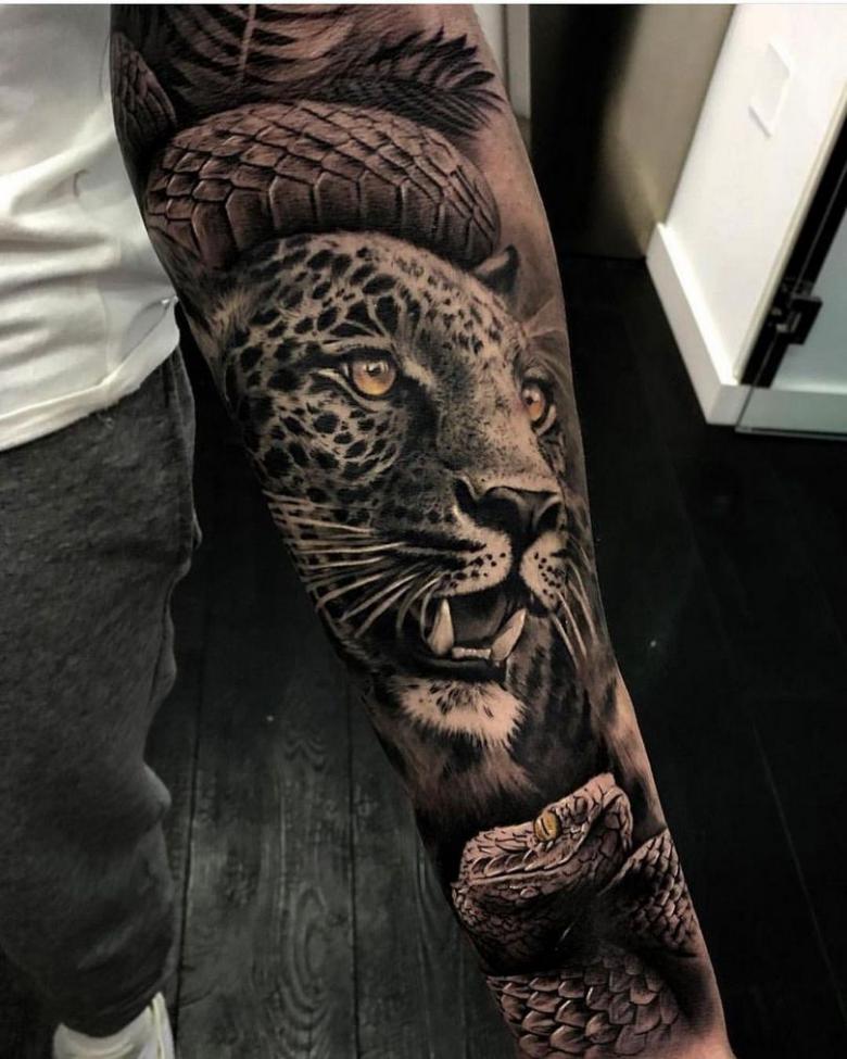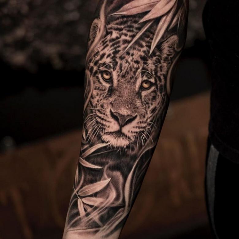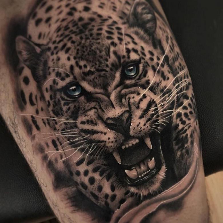 Il s'agit en fait d'un talisman tout fait. Il est avantageux de l'appliquer sur les mollets, les cuisses, le dos. Il symbolise la domination, la grâce et la confiance en soi. Par conséquent, il est utilisé par des hommes forts, confiants dans la justesse de leurs décisions. Cependant, le tatouage avec un léopard révèle plus de qualités :
