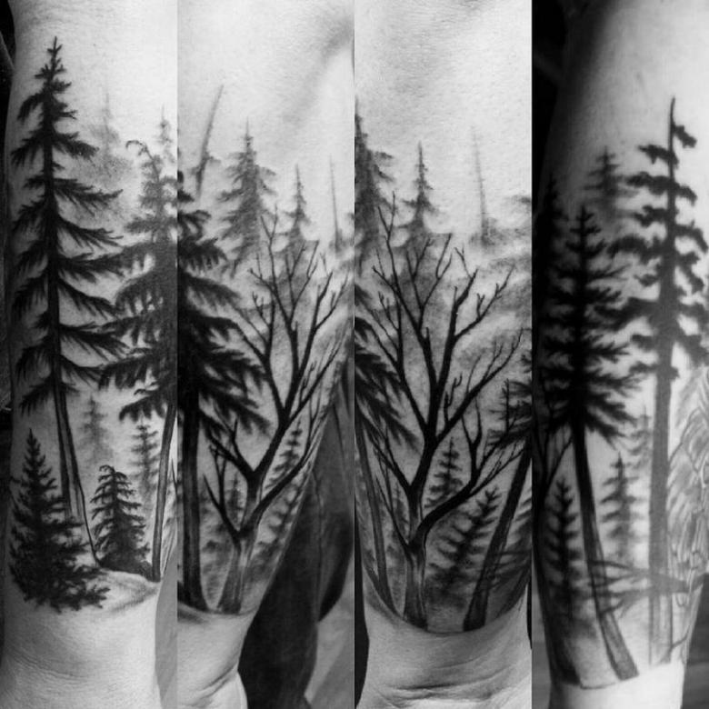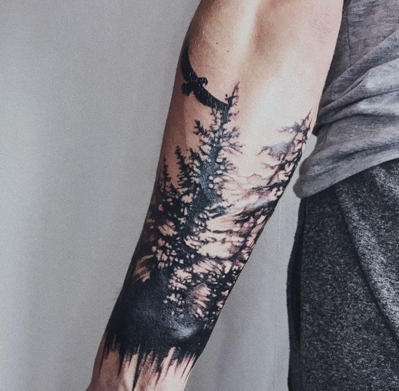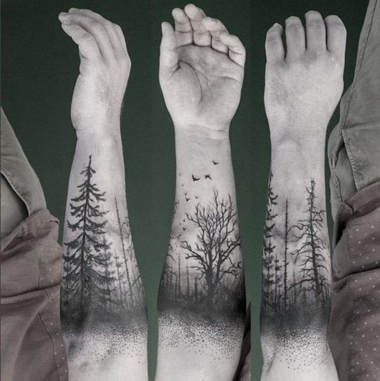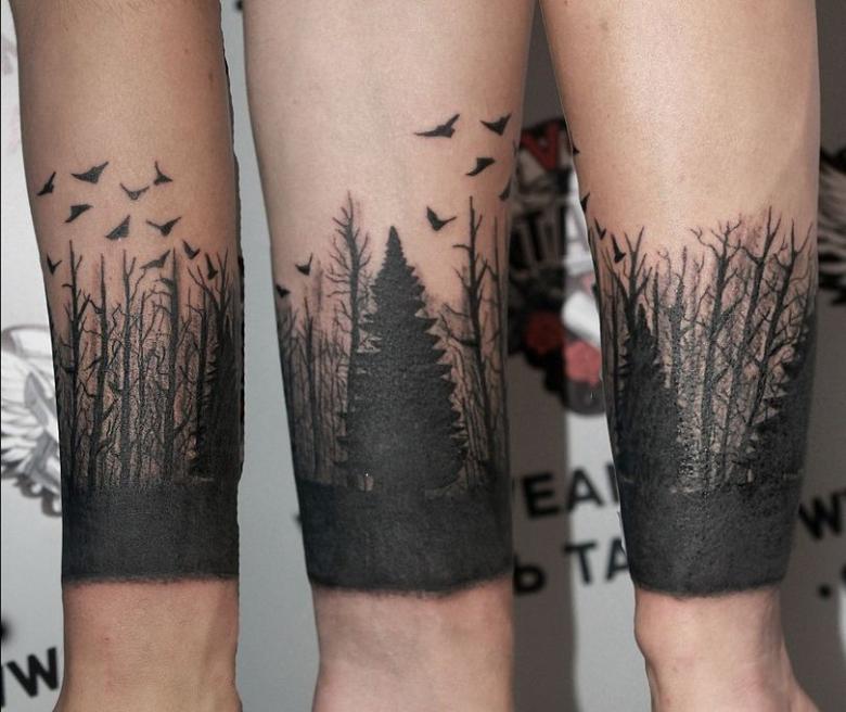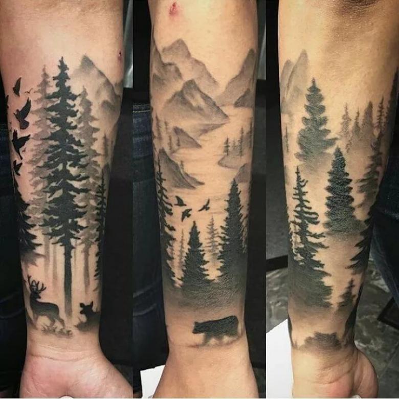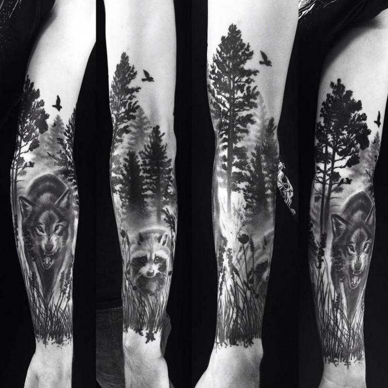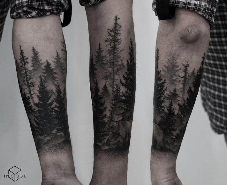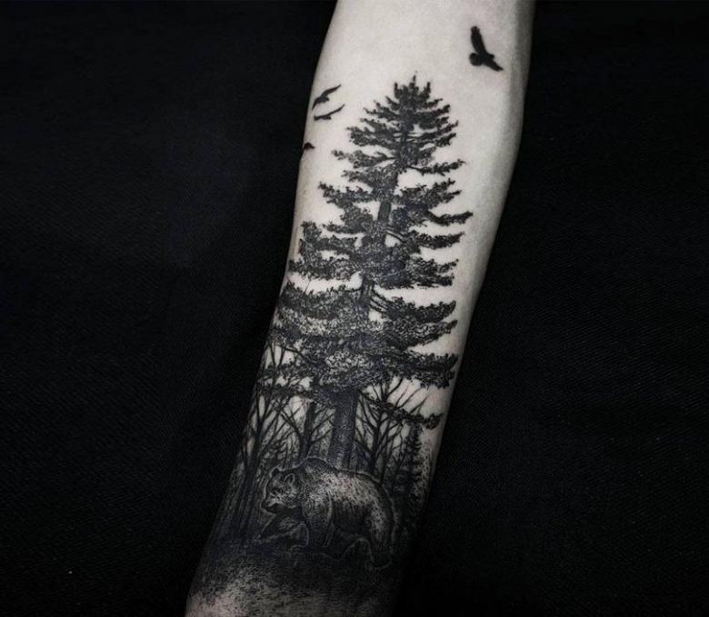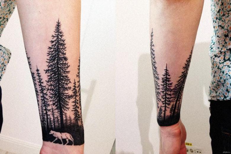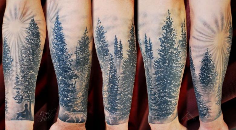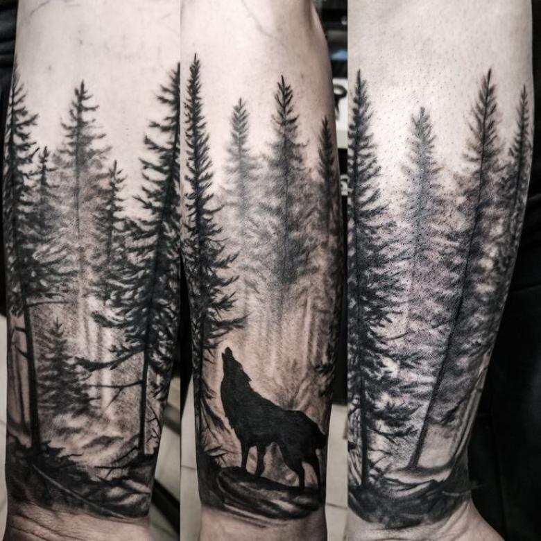 Tatouage de la forêt - signification pour les hommes, croquis (y compris le tatouage d'un loup ou d'un ours dans la forêt), où marquer, photo des œuvres