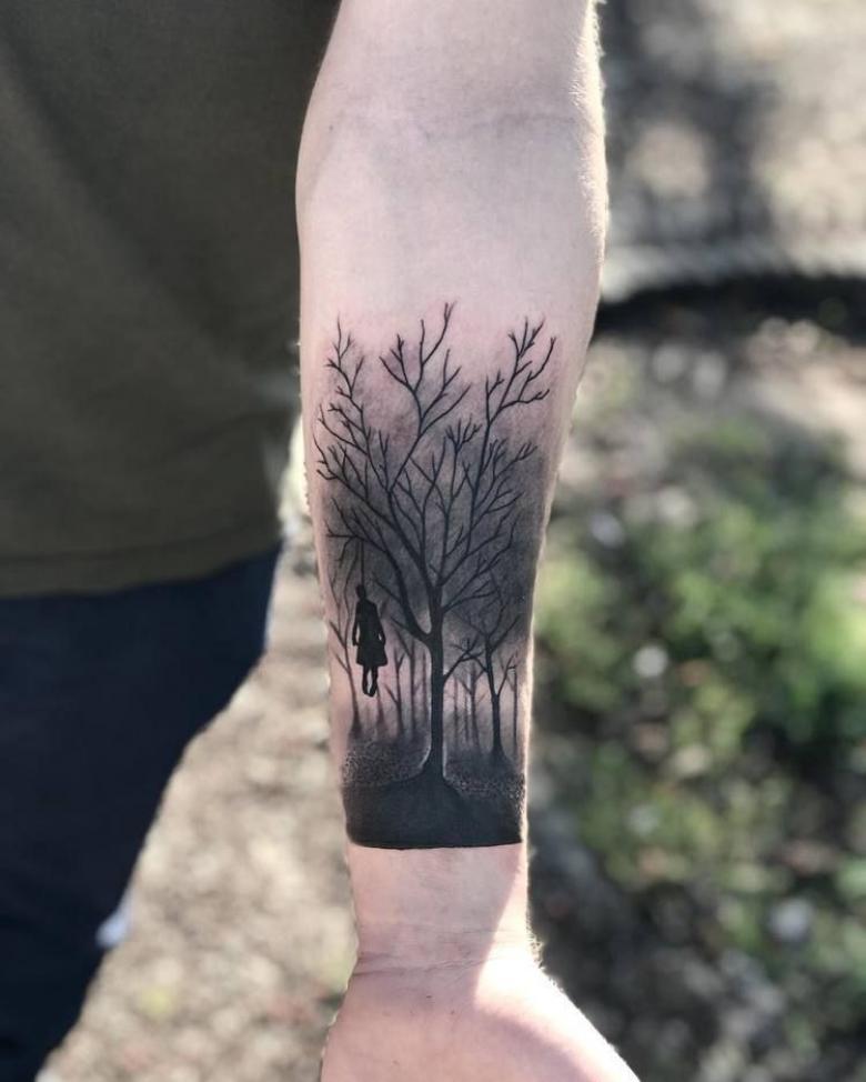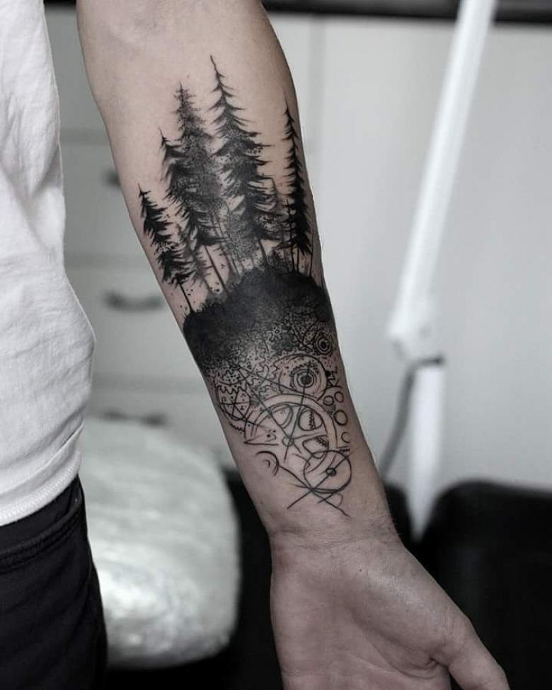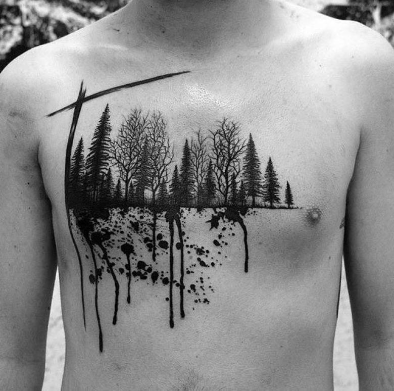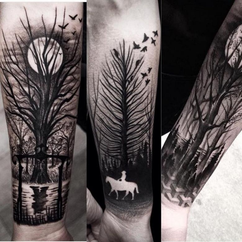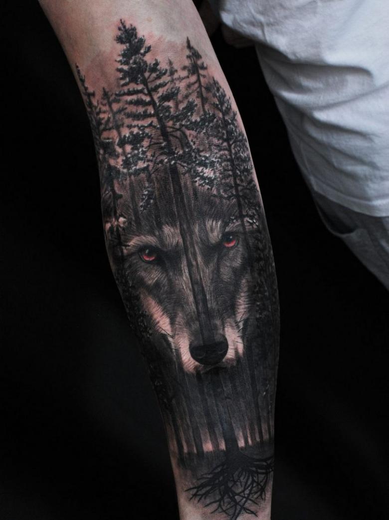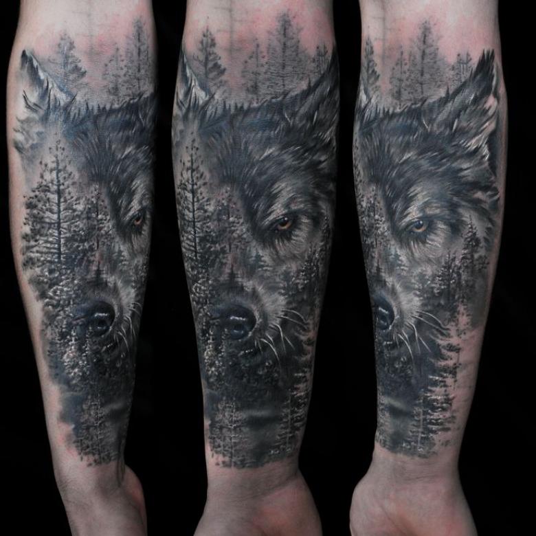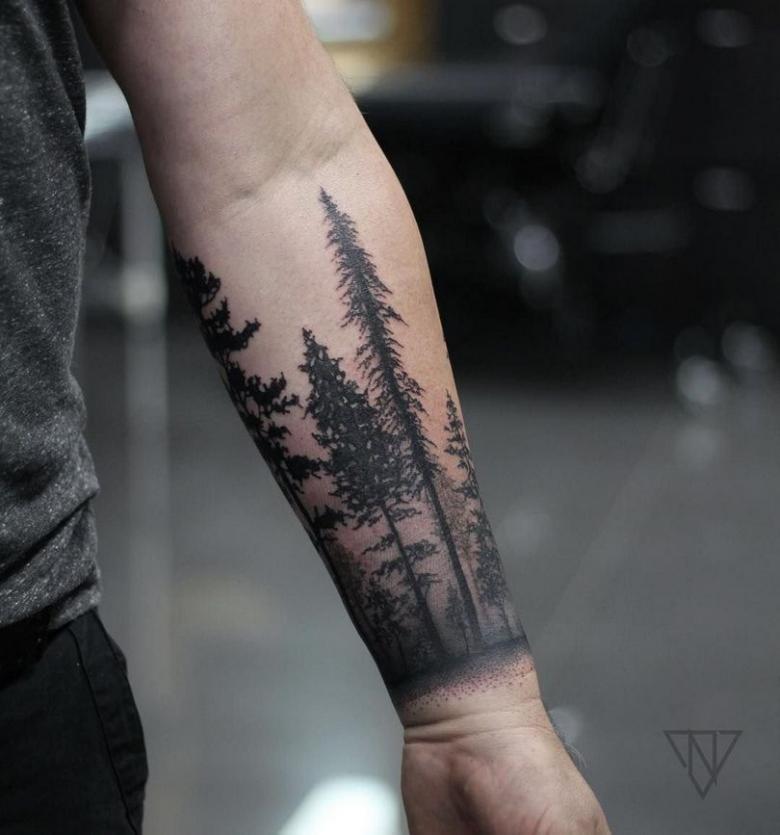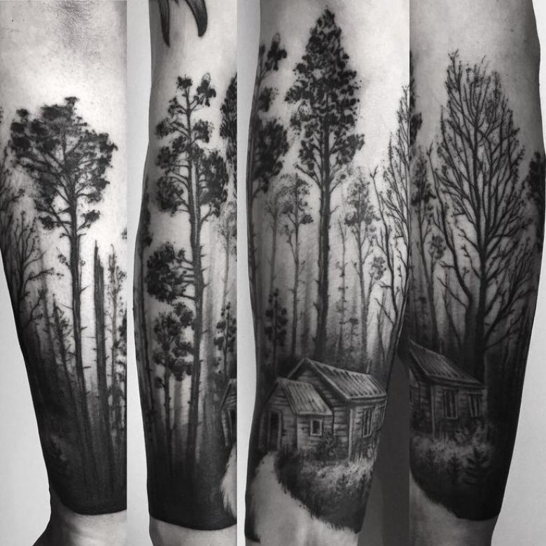 Tatouage de la forêt - signification pour les hommes, croquis (y compris le tatouage d'un loup ou d'un ours dans la forêt), où marquer, photo des œuvres