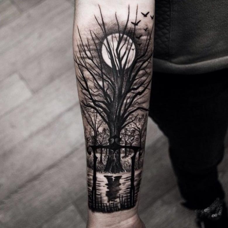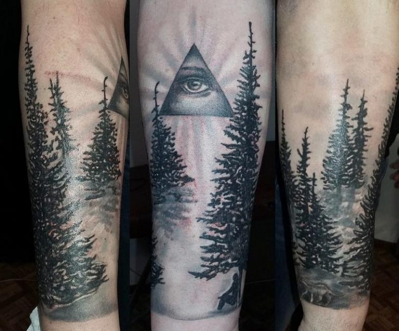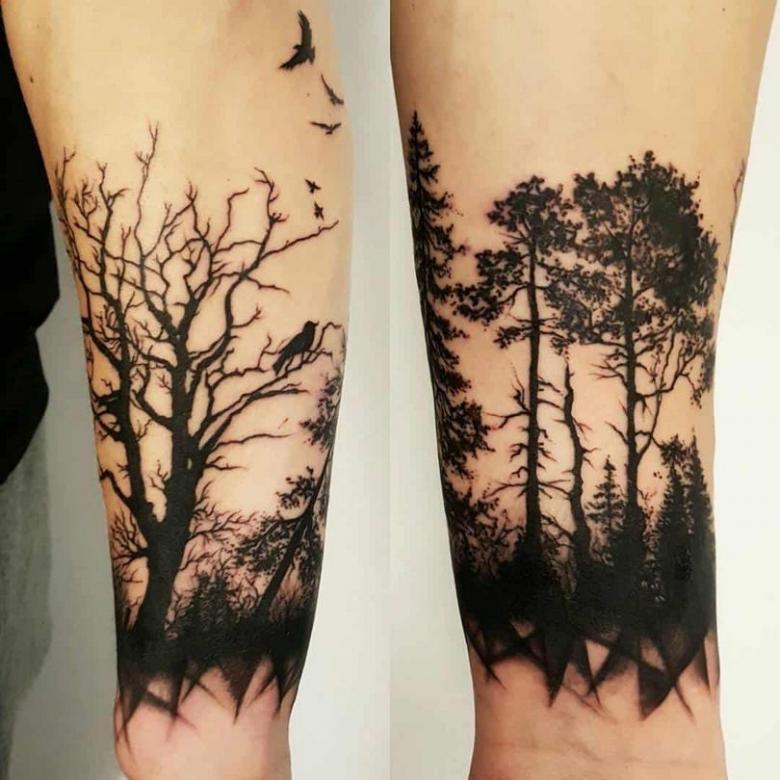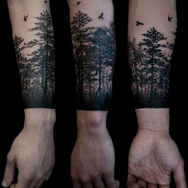 Le propriétaire du tatouage est très méticuleux dans la sélection de son entourage et n'est prêt à communiquer qu'avec un certain cercle de personnes répondant à certains paramètres. Un tatouage de forêt, en particulier, décrit le porteur comme une personne créative et autosuffisante.