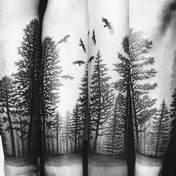 Malgré l'attrait du thème, il faut être réaliste car un tatouage de forêt couvrira une grande partie de la surface de votre corps. Étudiez d'abord les photos de tatouages similaires pour voir s'ils vous conviennent.