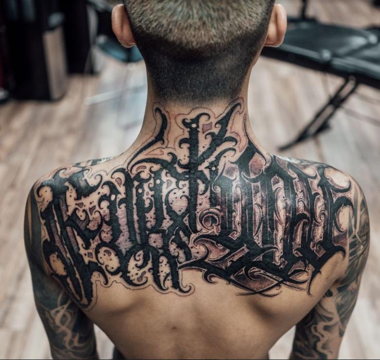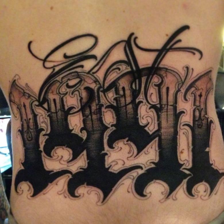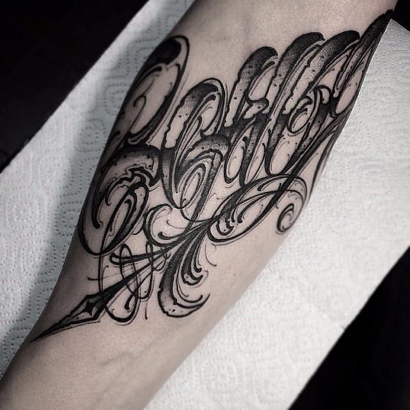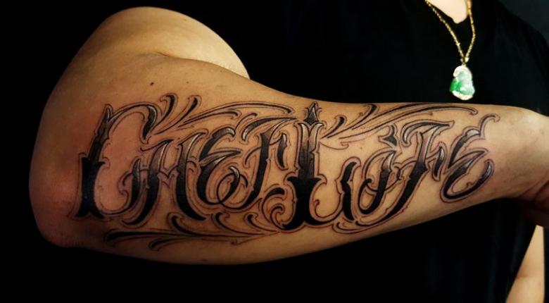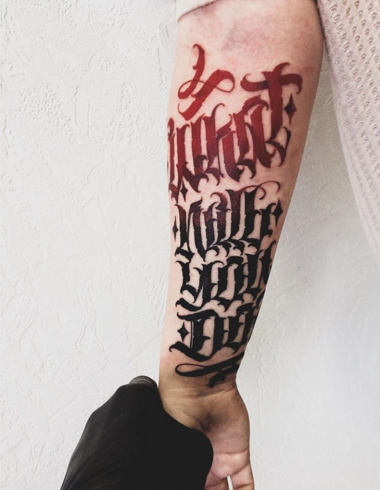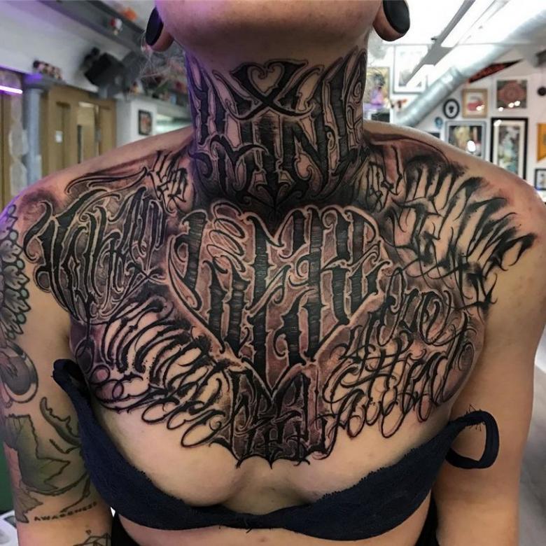 Tattoo Lettering - les raisons de la popularité, l'emplacement, les caractéristiques et les motifs de tatouage funky