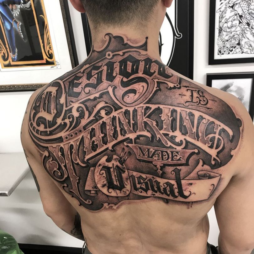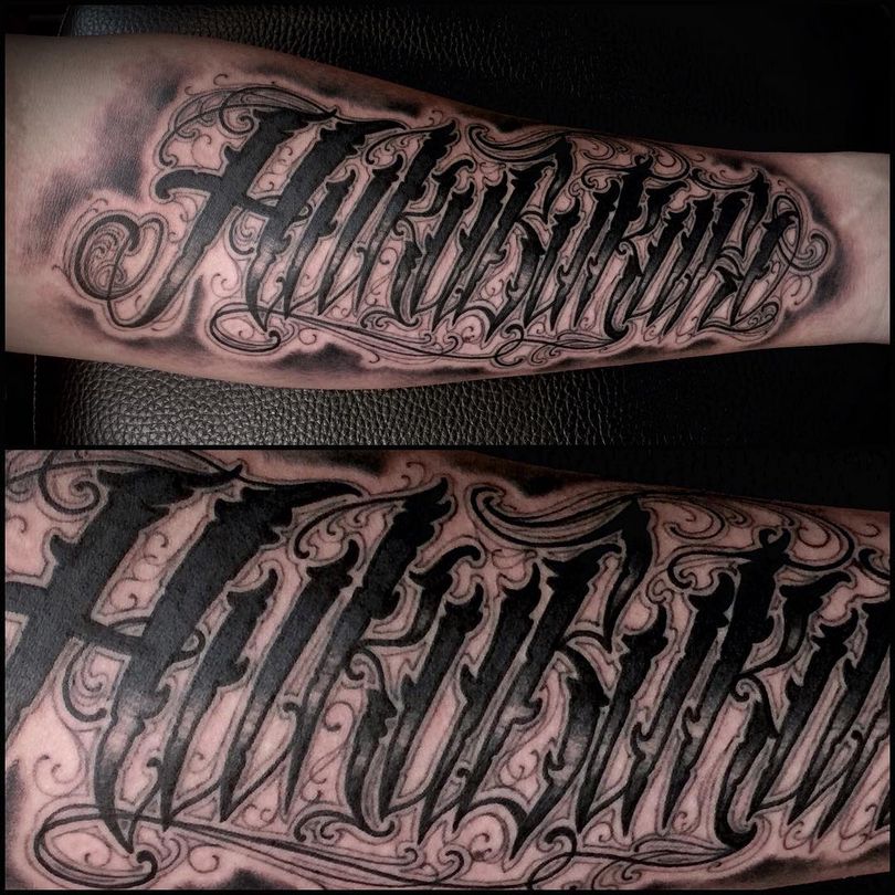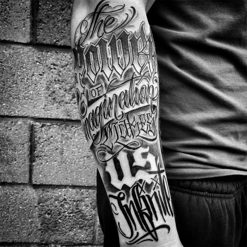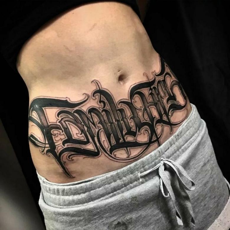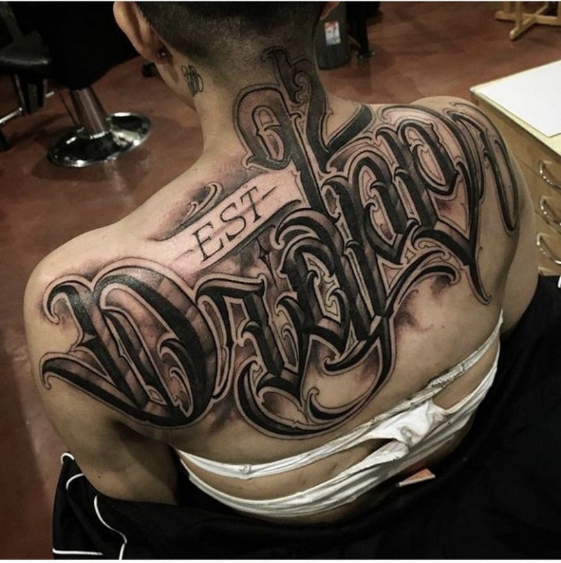 Tattoo Lettering - les raisons de la popularité, l'emplacement, les caractéristiques et les motifs de tatouage funky