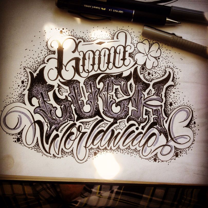 Le mot "lettrage" ("lettering", "dessin de lettres" de l'anglais) désigne toute solution décorative typographique. Le mot est arrivé dans l'art du tatouage à partir de l'environnement de l'imprimerie et de la typographie. Éditeurs, concepteurs, typographes, programmeurs, artistes - tous travaillent avec des lettres, d'une manière ou d'une autre.