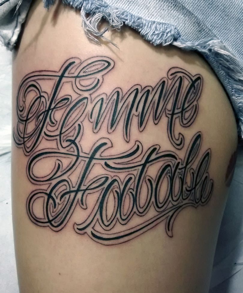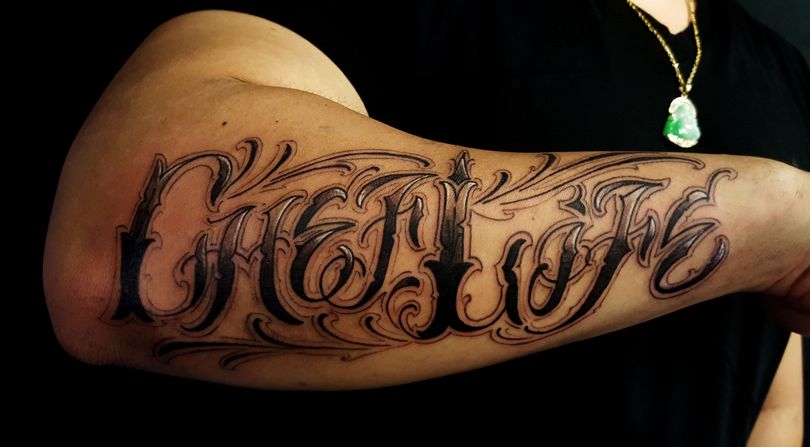 Les personnes qui se gravent des significations différentes sur elles-mêmes ne sont pas différentes des autres. Mais ils veulent souvent exprimer leur credo personnel sous cette forme. Et l'esthétique du lettrage embellit une partie du corps et est tout simplement agréable à l'œil avec son exécution calligraphique.
