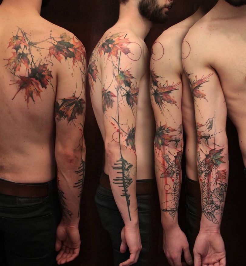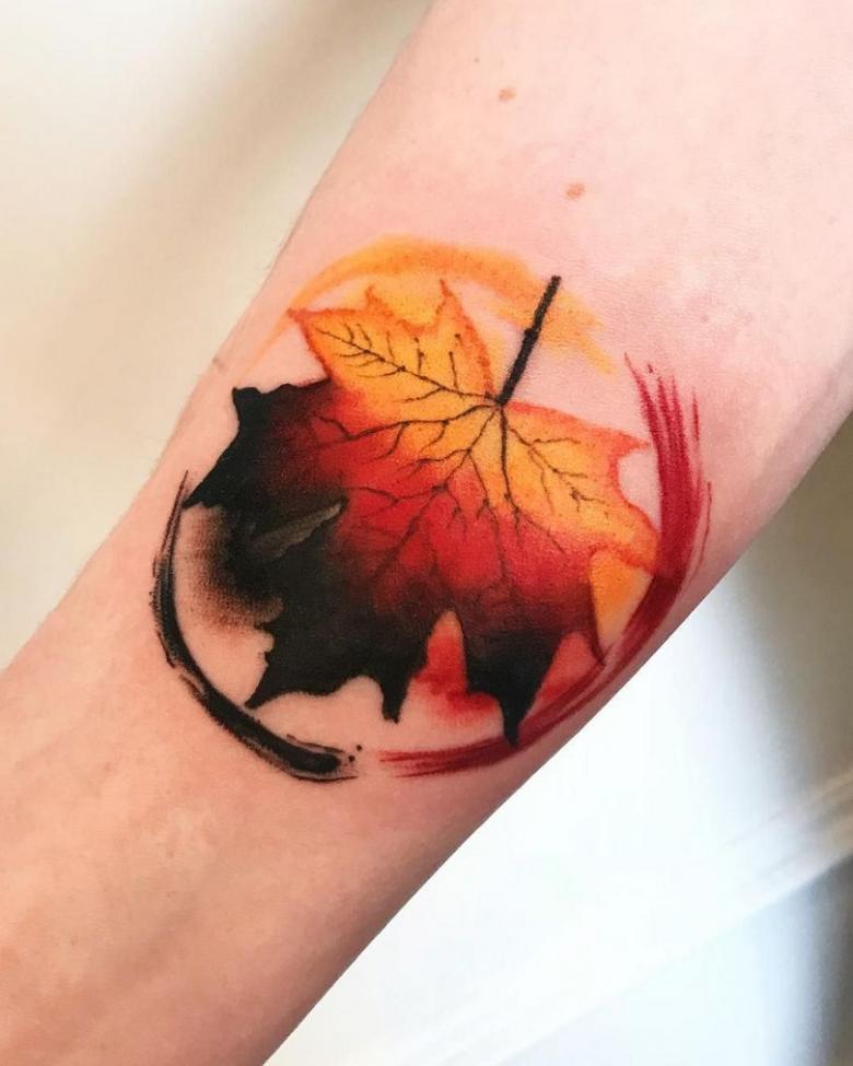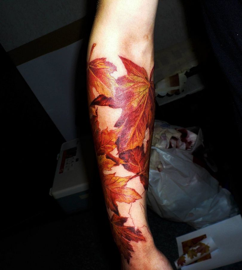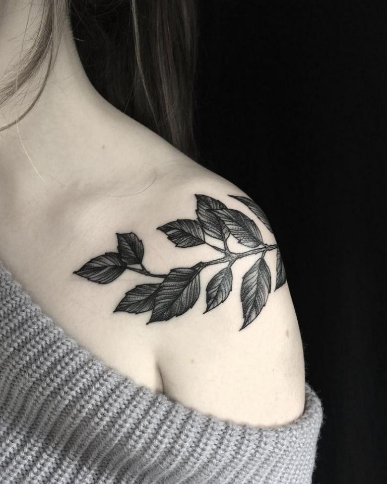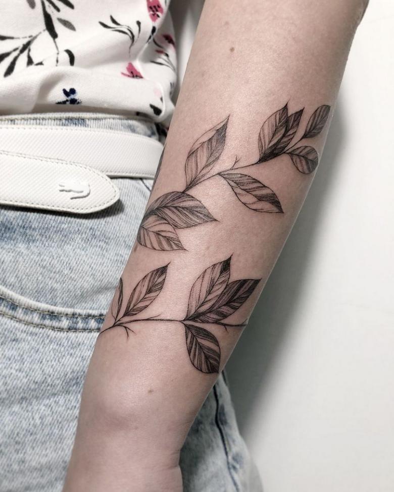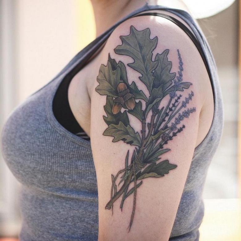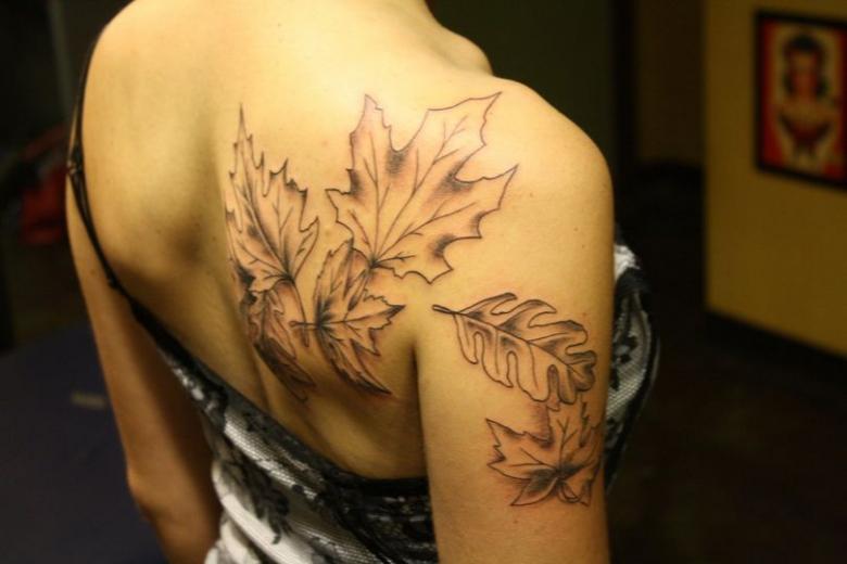 Tatouage de feuilles - croquis et signification des espèces d'arbres, les sites d'application (sur le bras, la clavicule), idées de photos populaires