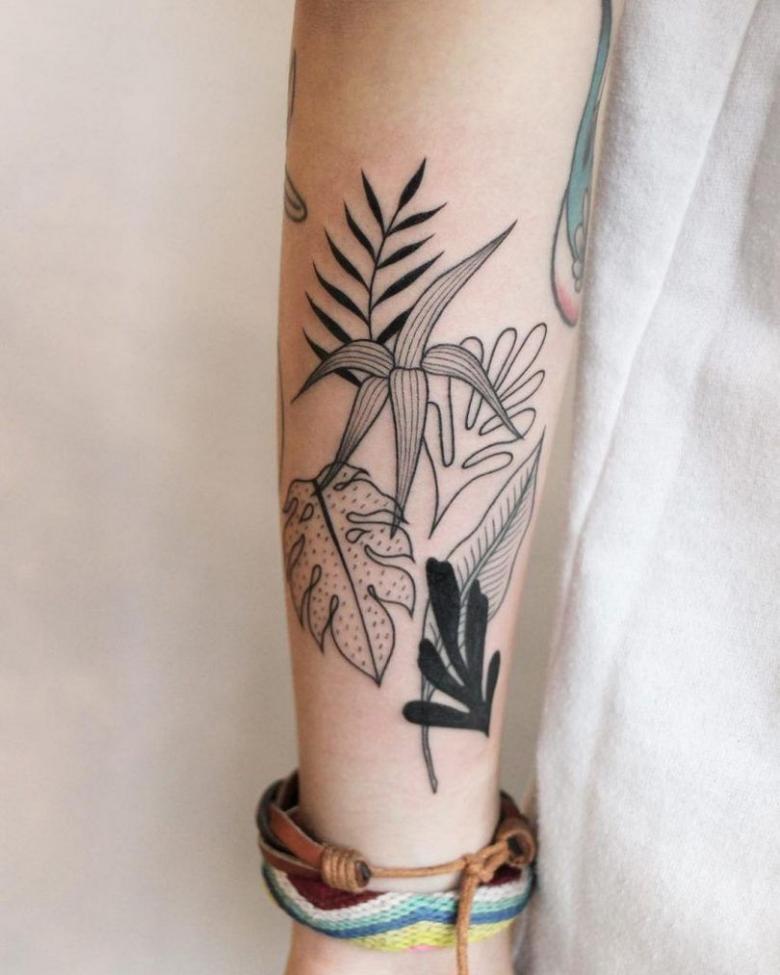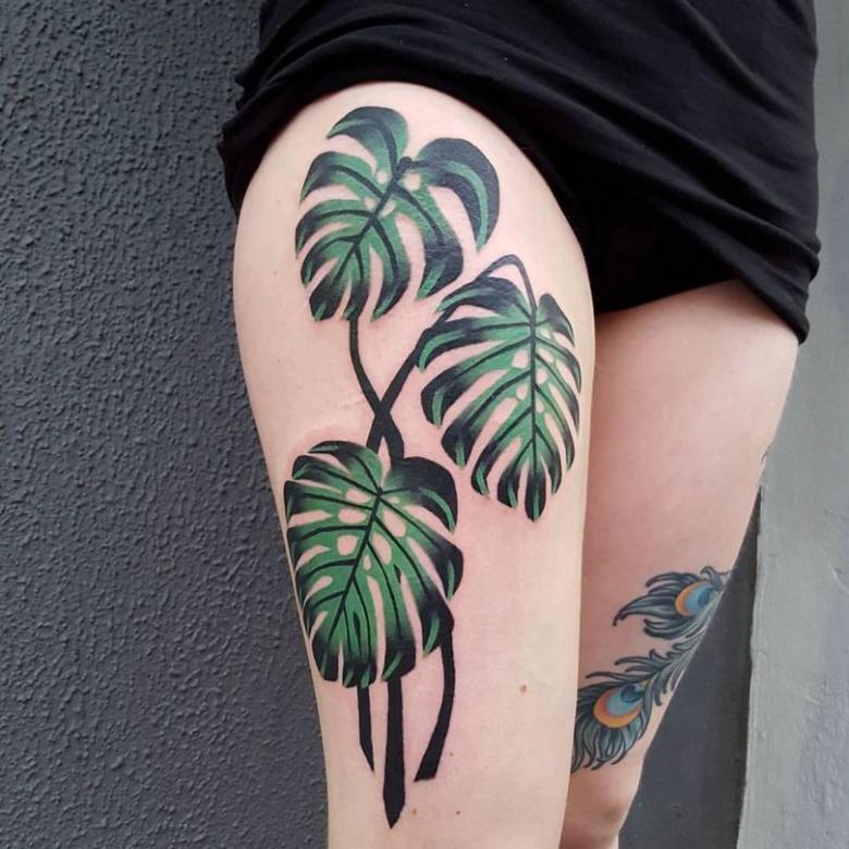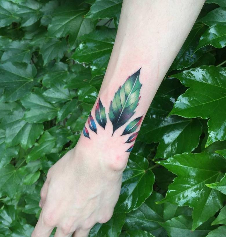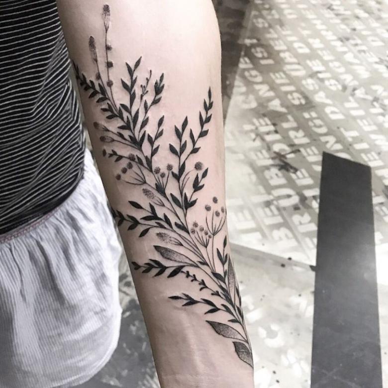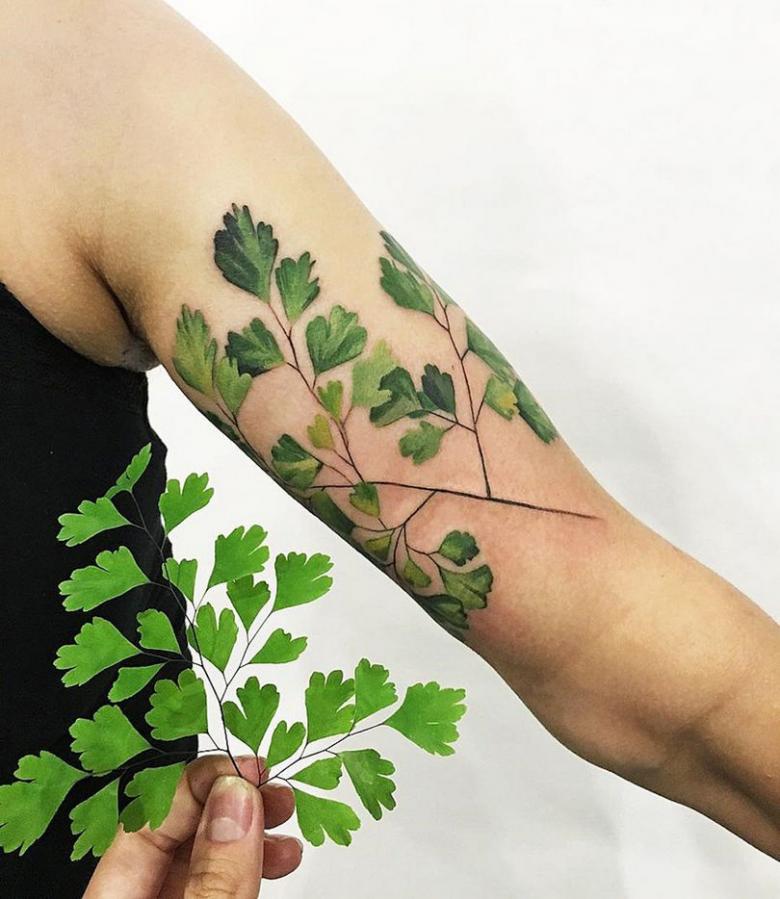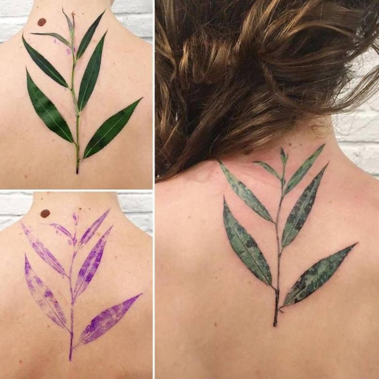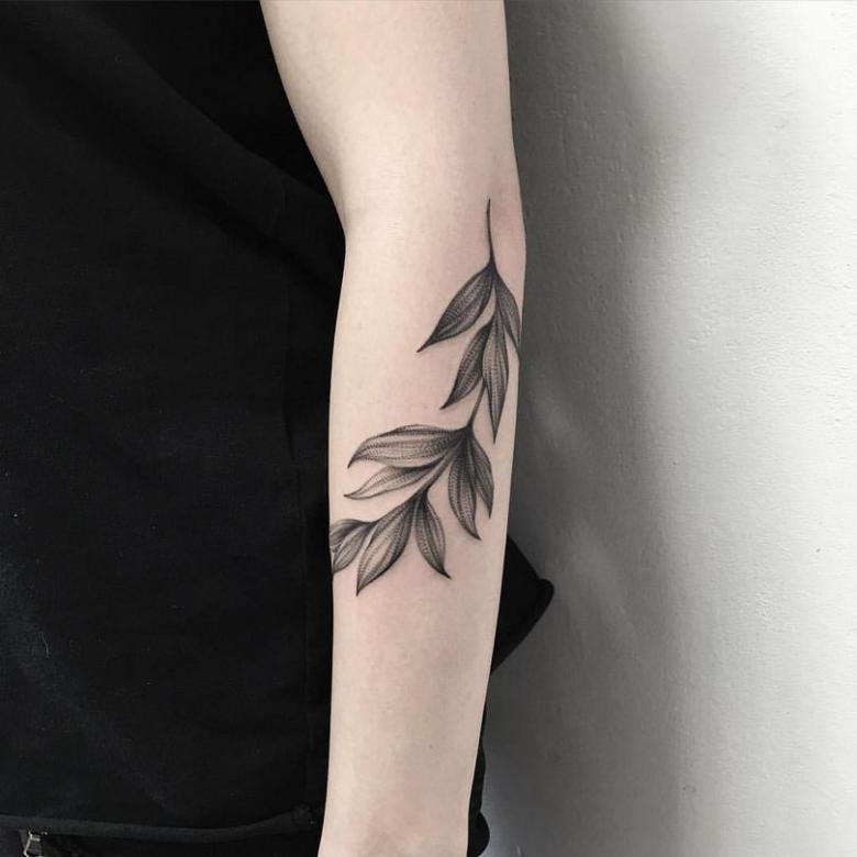 La diversité des feuilles dans la nature est grande. Ces tatouages conviennent donc à tout le monde, indépendamment de la profession, des goûts ou des intérêts, du sexe ou de la morphologie. Le riche monde des plantes est le moyen le plus sûr de s'exprimer.