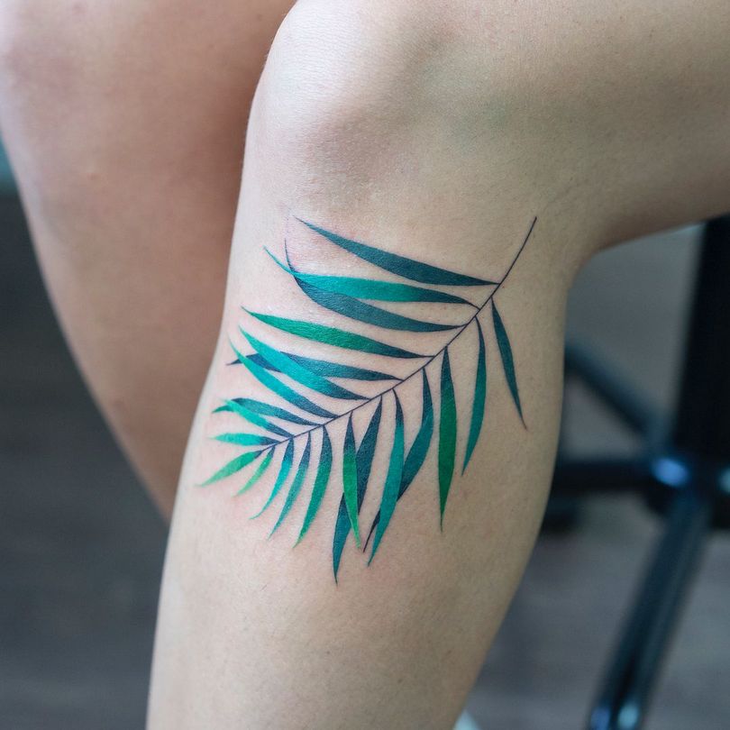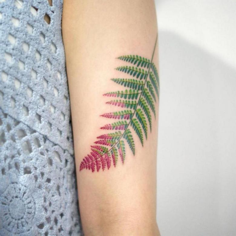 Si la palette de couleurs du tatouage est à dominante verte, elle peut symboliser la fertilité, l'amour de la vie et la jeunesse d'une fille. La présence de couleurs plus vives et plus chaudes, comme le rouge, le jaune ou l'orange, suggère l'optimisme et une nature joyeuse.