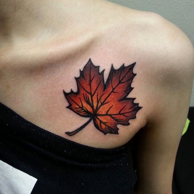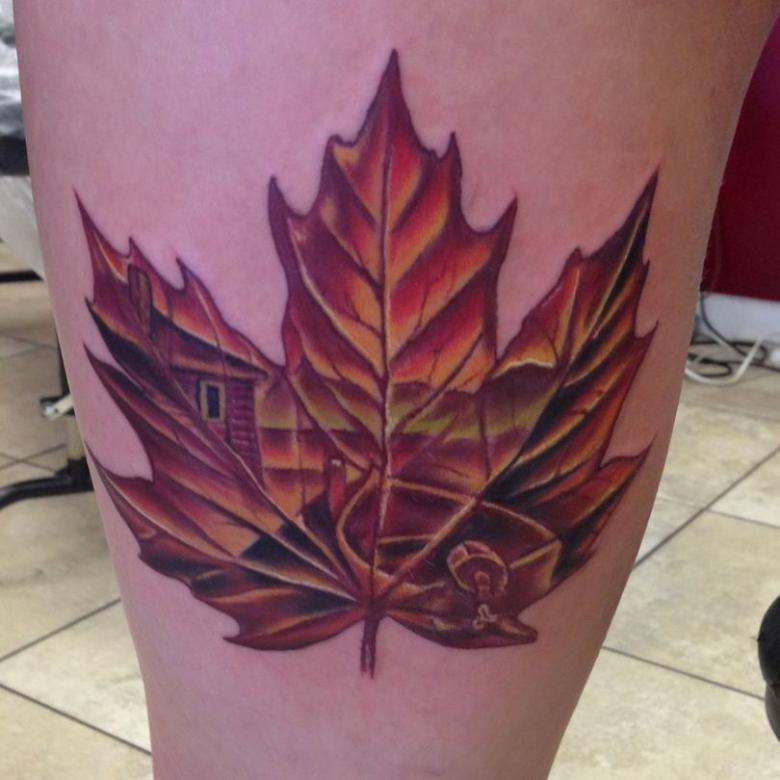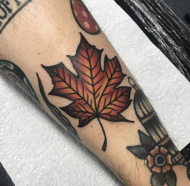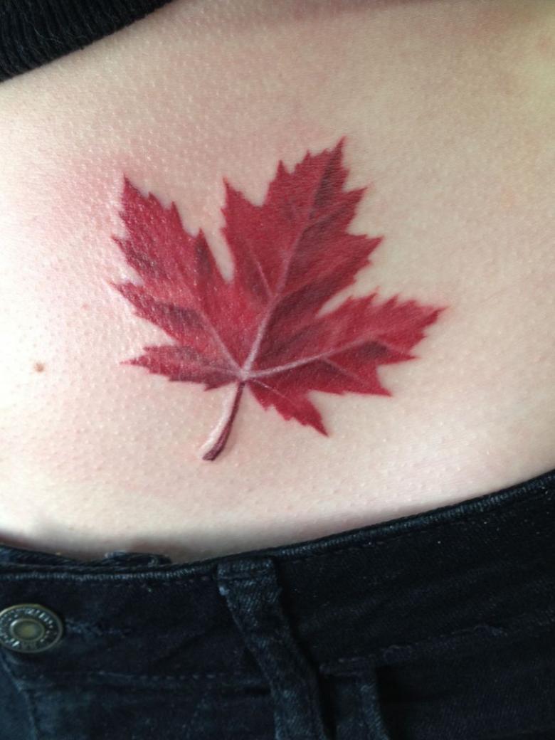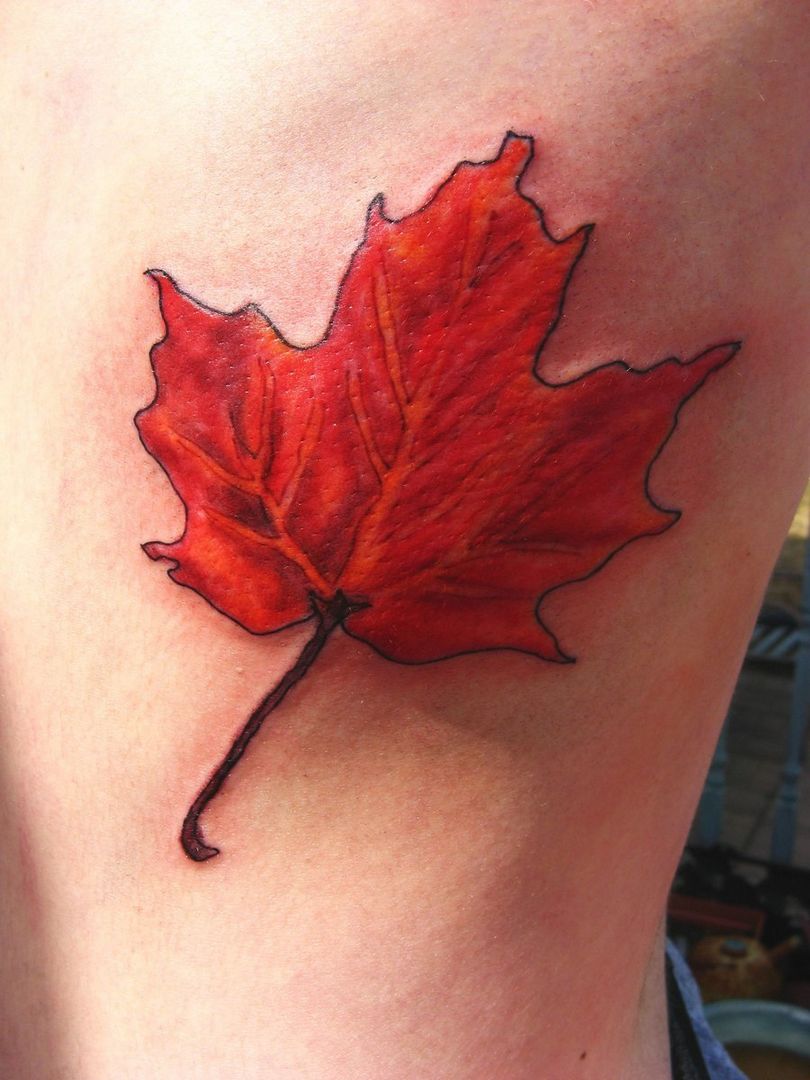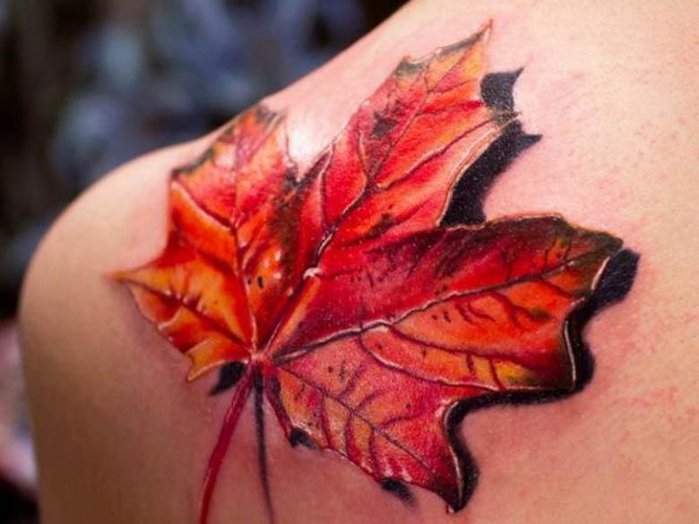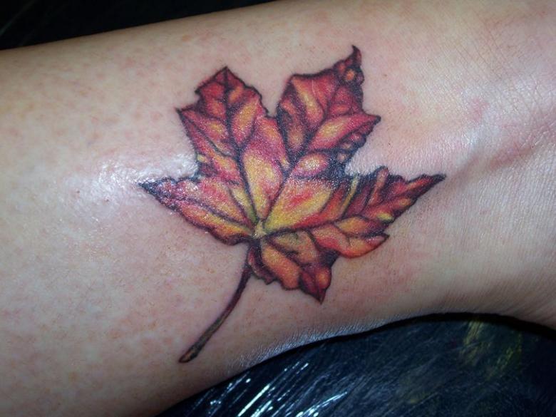 Une feuille d'érable dépliée ressemble à la paume d'un être humain, c'est pourquoi ce dessin en est venu à symboliser la fidélité et la loyauté. De nos jours, les tatouages en forme de feuille d'érable sont réalisés par des couples amoureux qui se laissent des éclairs rouges vifs en signe d'amour.