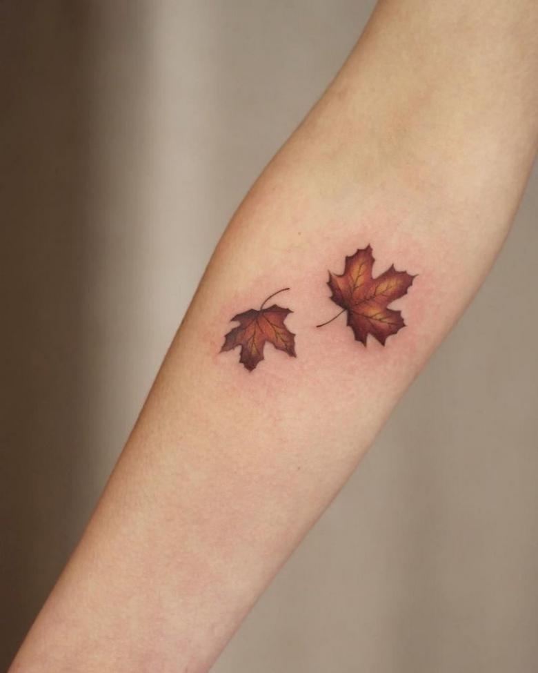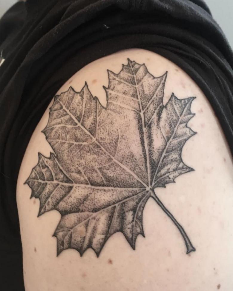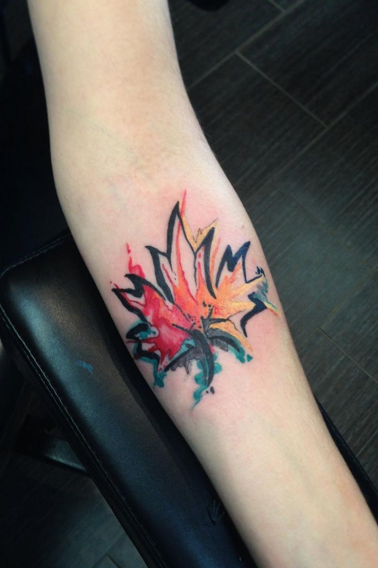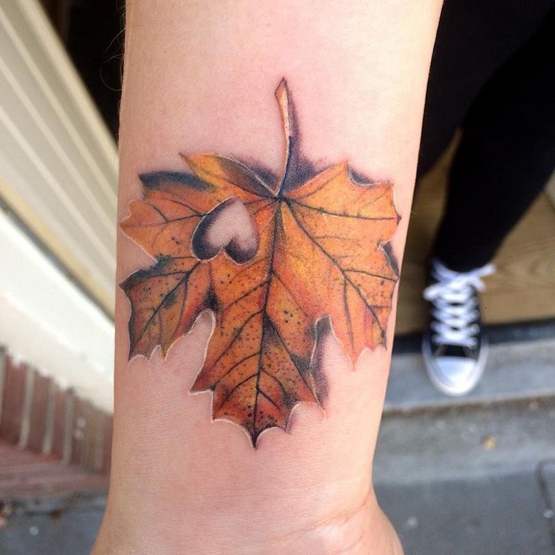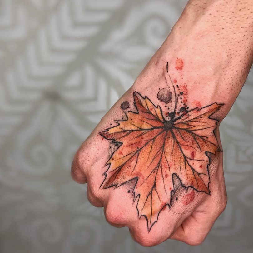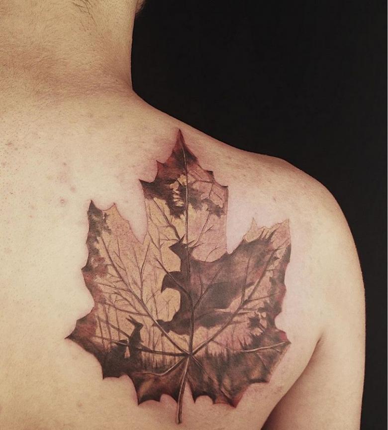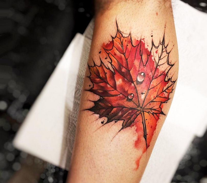 Une feuille d'érable dépliée ressemble à la paume d'un être humain, c'est pourquoi ce dessin en est venu à symboliser la fidélité et la loyauté. De nos jours, les tatouages en forme de feuille d'érable sont réalisés par des couples amoureux qui se laissent des éclairs rouges vifs en signe d'amour.
