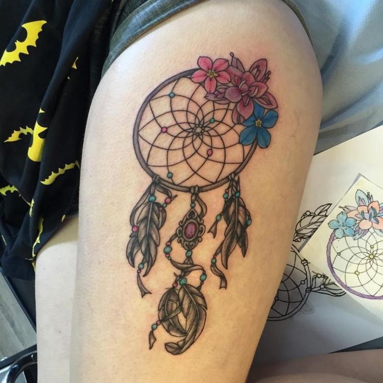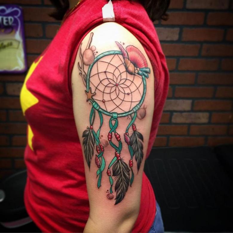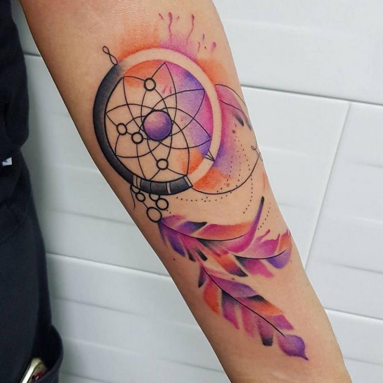 L'attrape-rêves a un effet mystique, il peut protéger le sommeil d'une personne et ne permettre que de bons rêves. Ce qui est remarquable, c'est que dans le monde du tatouage, ce symbole a gagné une popularité particulière grâce aux maîtres.