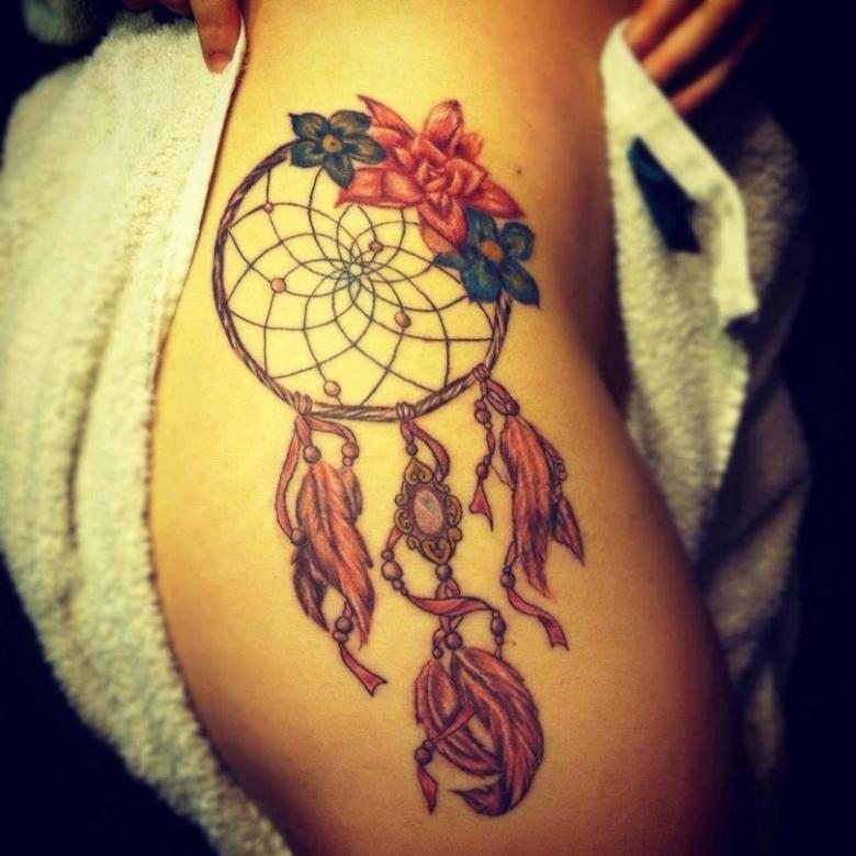 Le tatouage attrape-rêves est le plus souvent visible sur les bras, les jambes, le dos et l'avant-bras, la cuisse et le côté. La taille est généralement moyenne à grande. Il est intéressant de noter qu'il n'est pas recommandé de cacher un tel tatouage. Il est donc conseillé de l'appliquer sur les zones ouvertes du corps. De cette façon, la propriété de protection du symbole "fonctionnera". Le lieu du dessin corporel peut être choisi en fonction de vos propres préférences, il n'y a pas de restrictions à cet égard.