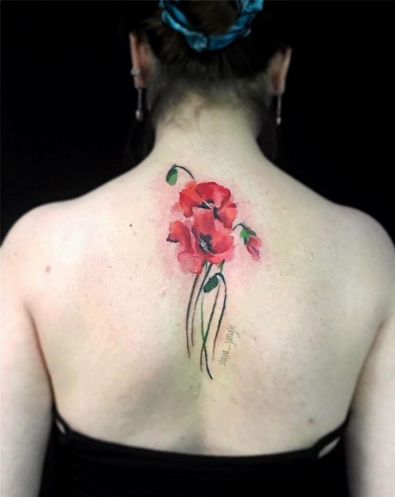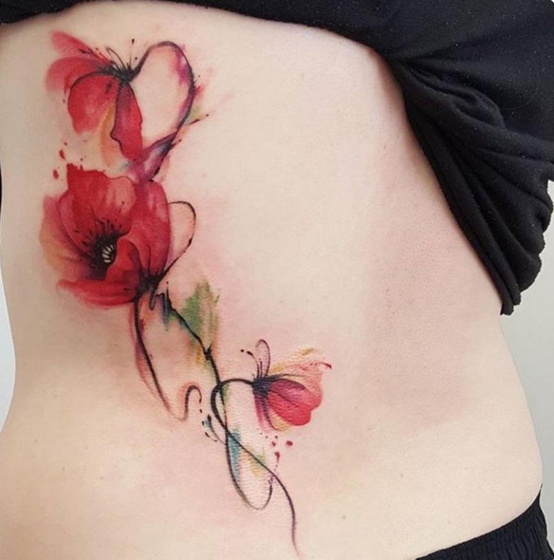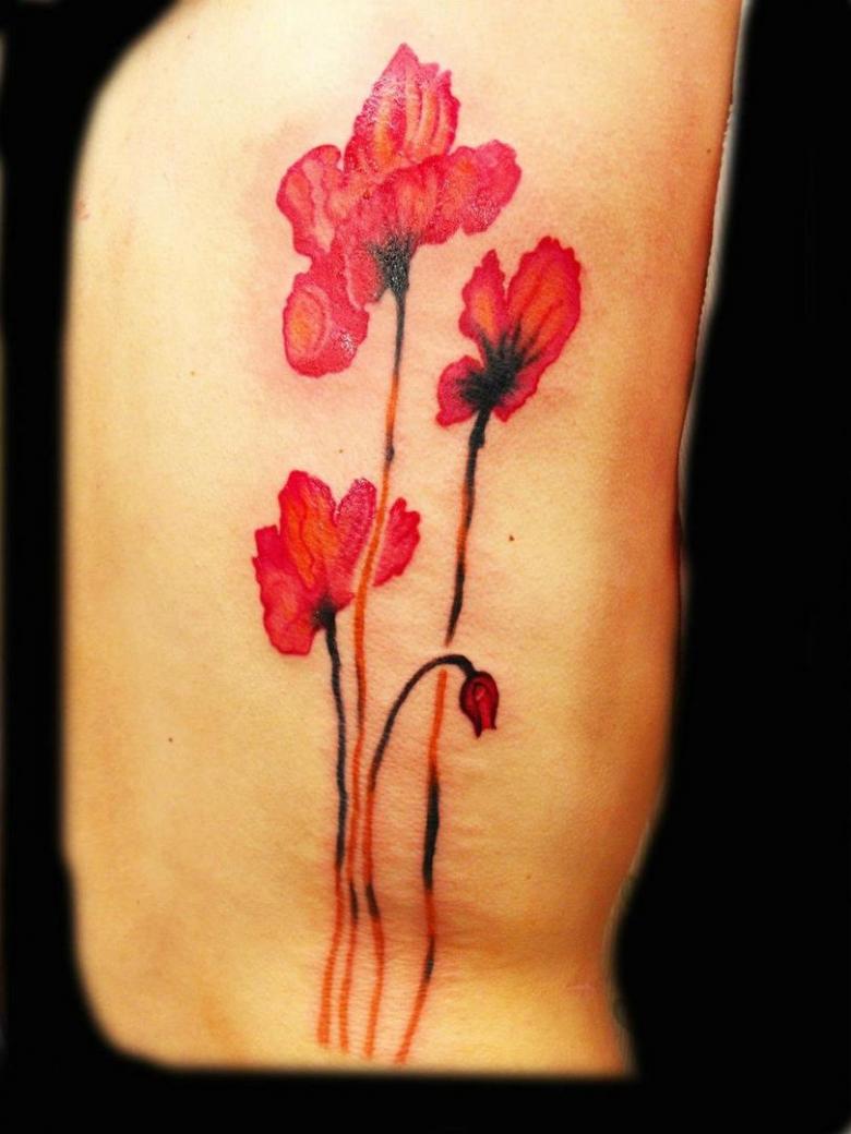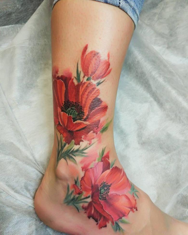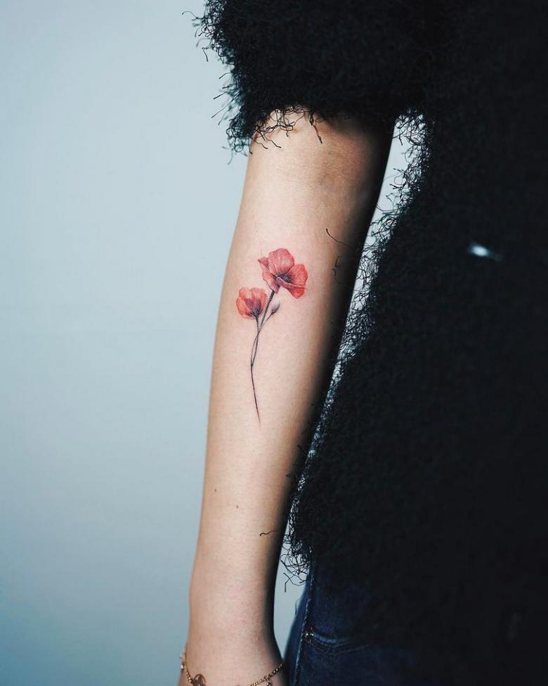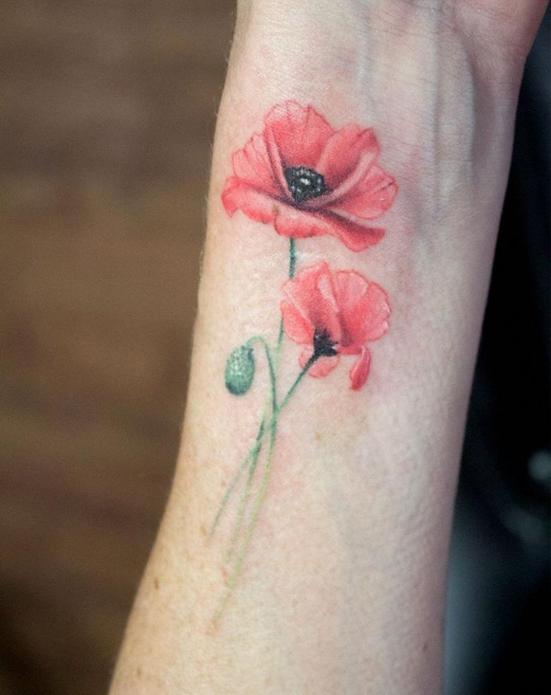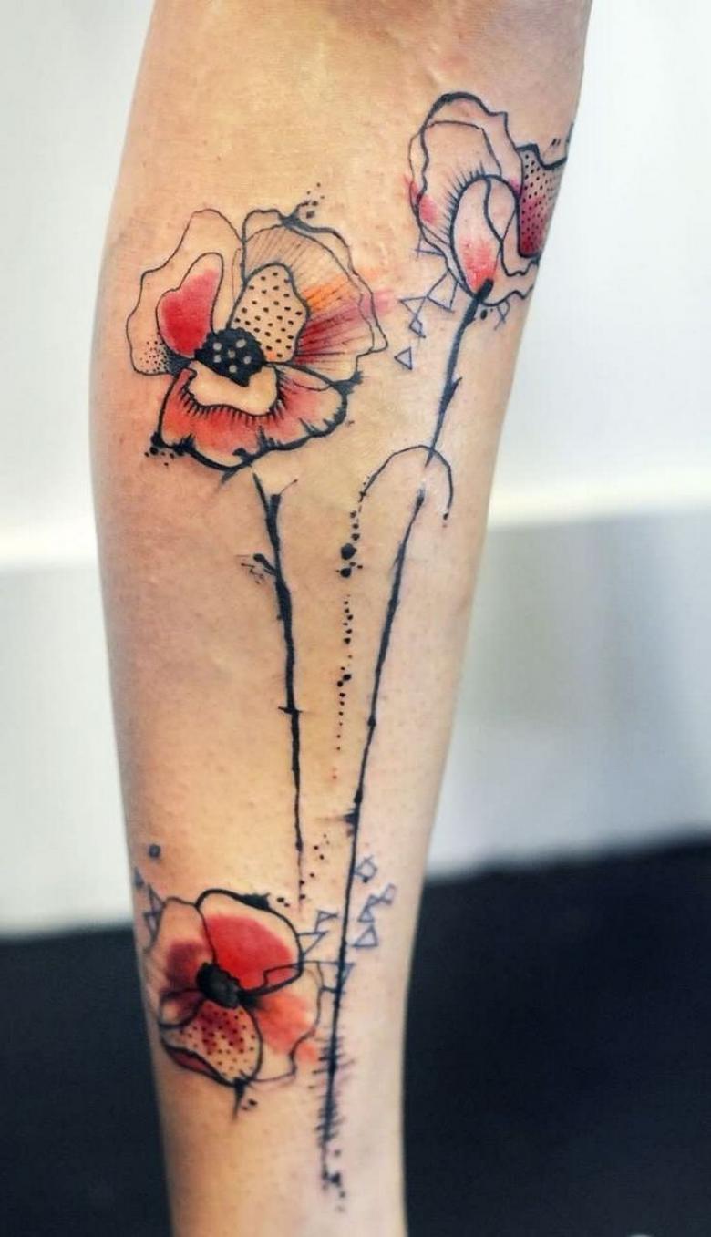 Un tatouage avec des fleurs de coquelicot serait un excellent choix pour quelqu'un qui veut un tatouage lumineux et coloré.