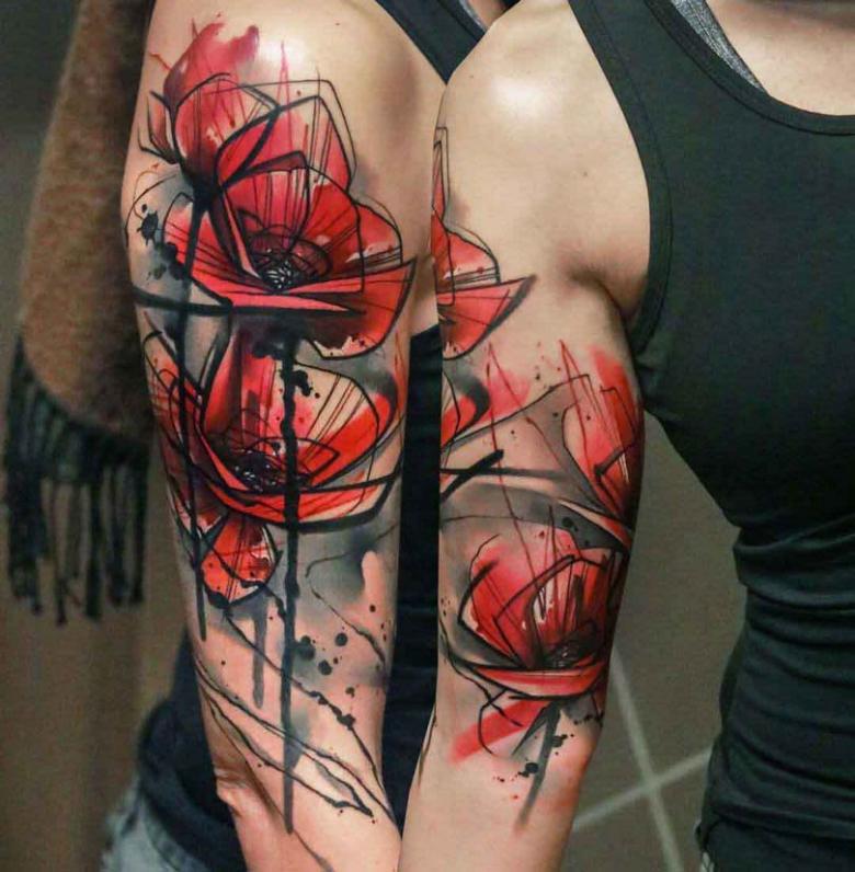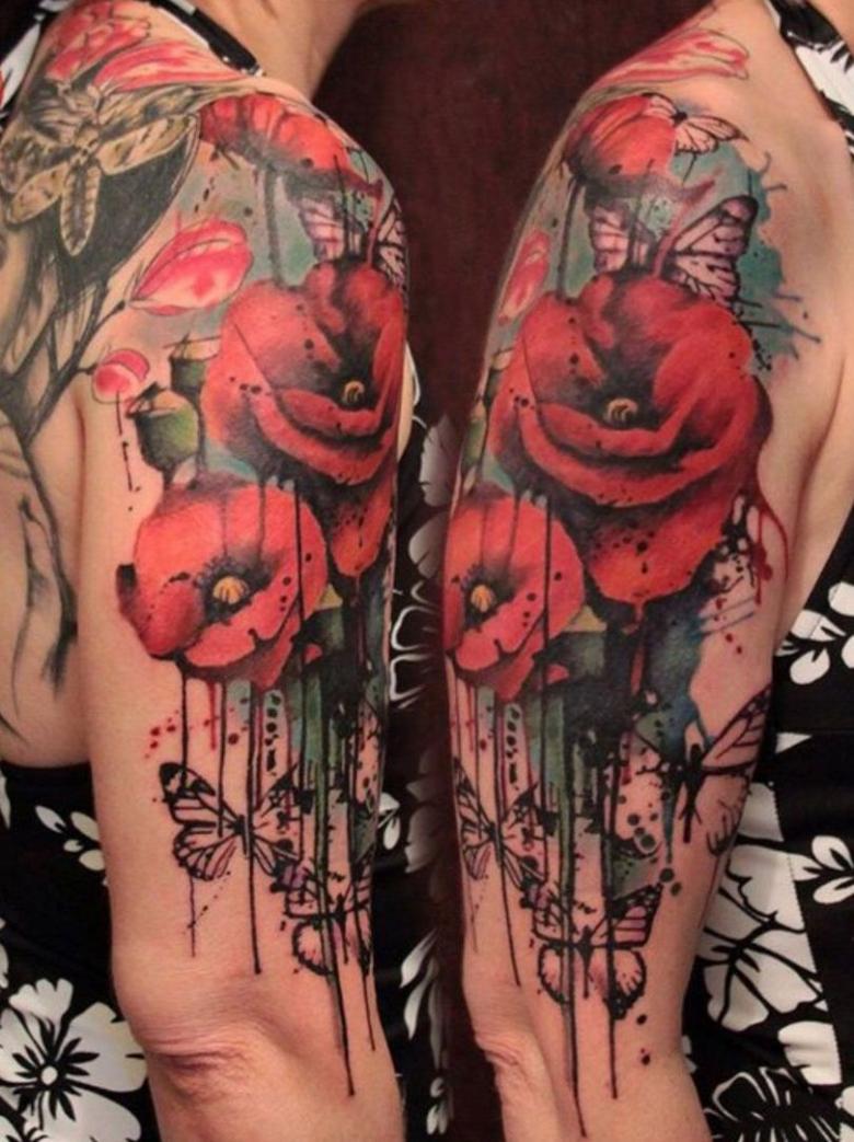Ce tatouage peut être une manche complète ou un petit tatouage sur votre poignet. Souvent, les côtes, les mollets, les biceps sont choisis pour l'emplacement du tatouage. Vous pouvez choisir une subtile fleur de coquelicot flottant dans l'air sur votre avant-bras, votre cou et votre pied, ou vous pouvez combiner l'image avec un crâne pour une image à plus grande échelle.