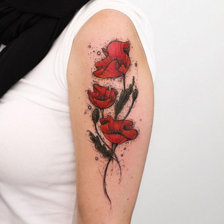 Le style le plus populaire parmi les clients pour un tatouage avec des coquelicots est le réalisme. Son principal avantage est la précision et le détail des images, ce qui permet de créer un dessin plus spectaculaire. Parfois, les artisans utilisent une technique telle que les points de polissage (qui ne convient que pour créer une esquisse sombre ou négative). Parfois, il y a des coquelicots réalisés de manière minimaliste, graphique, Dotwork ou le style traditionnel.