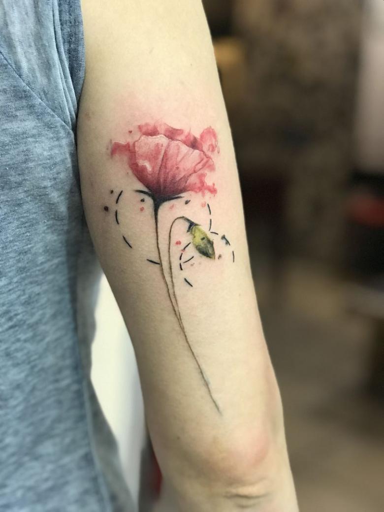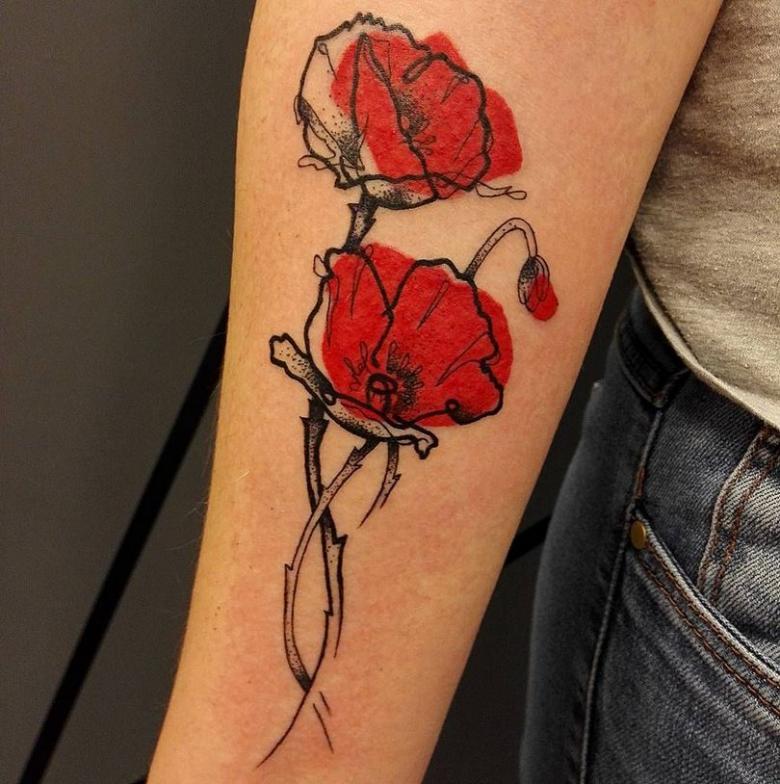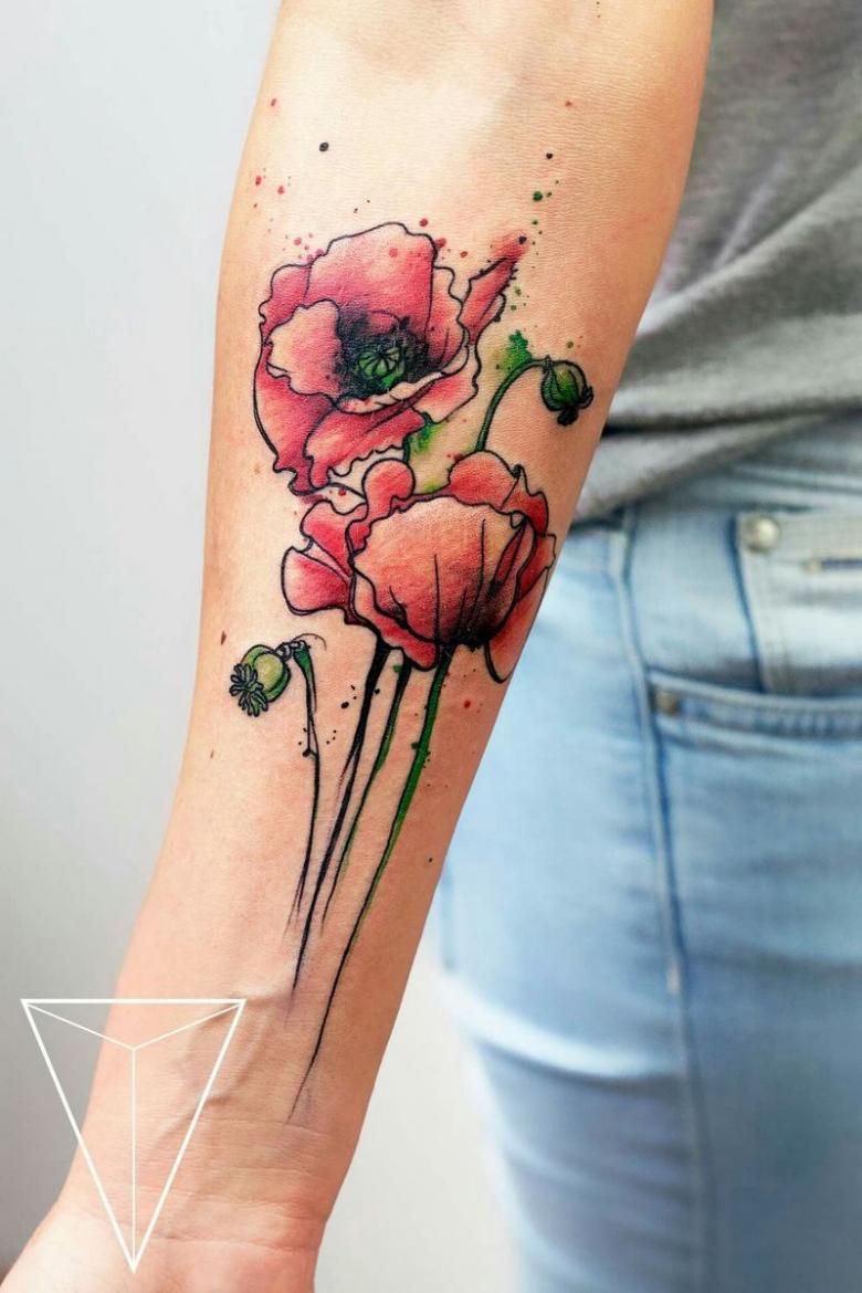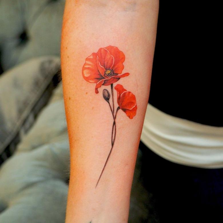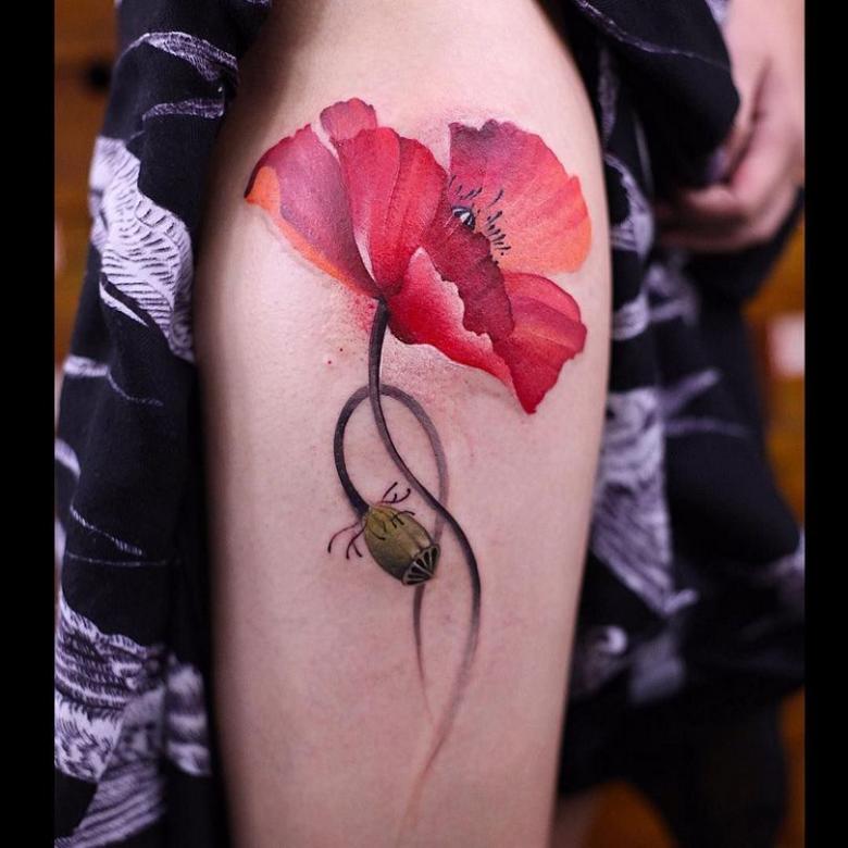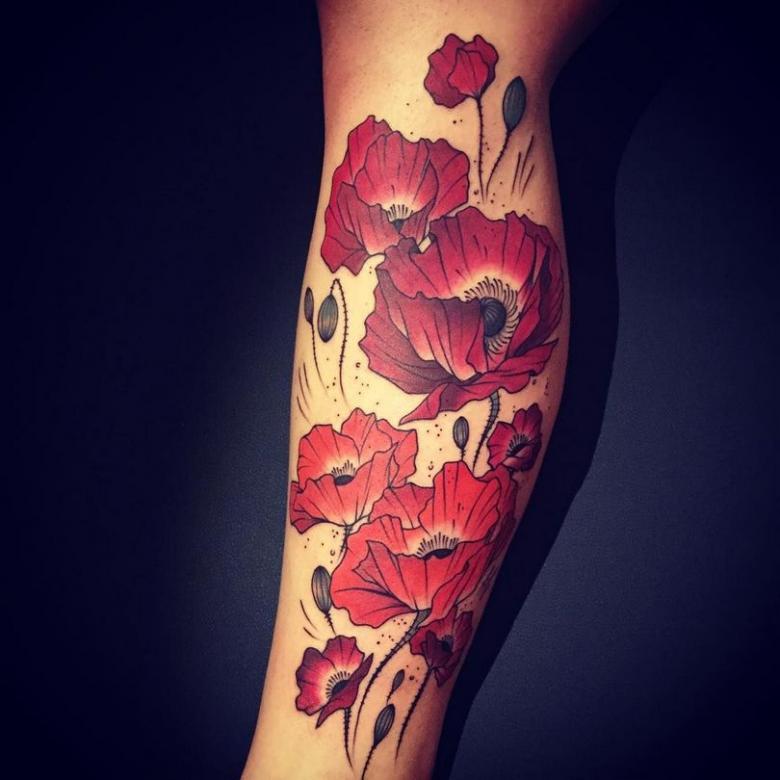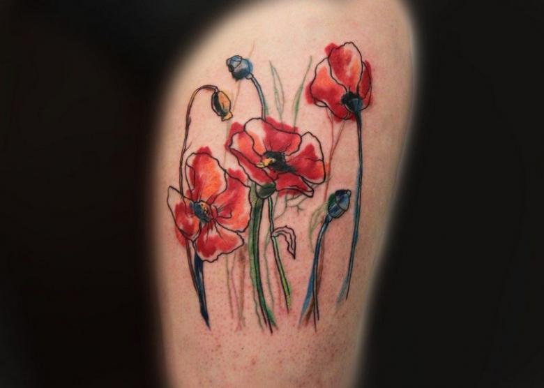 Tatouage avec des coquelicots - signification pour les filles et les hommes, beaux motifs, photos et vidéos