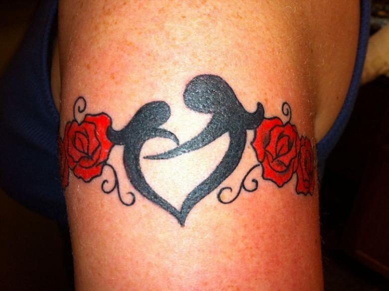 - Le tatouage montre des sentiments sincères pour une seule personne, la mère. Le dessin peut dire du porteur qu'il n'a pas de chance avec ses partenaires dans la vie. La personne fait souvent des erreurs et souffre dans ses relations amoureuses.
