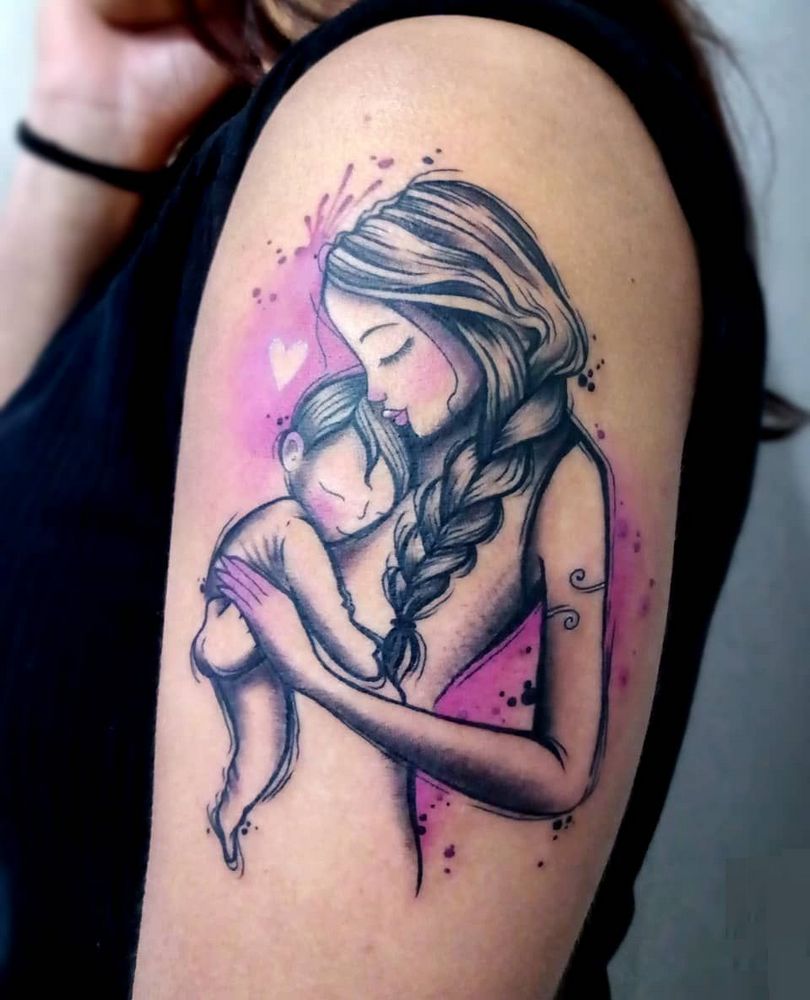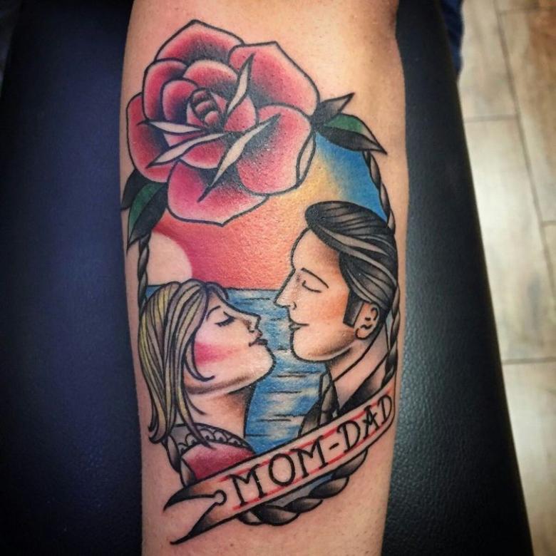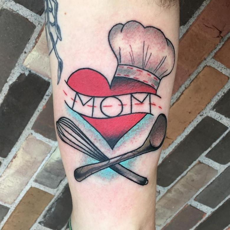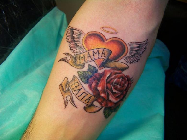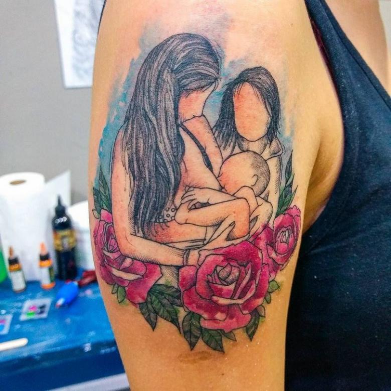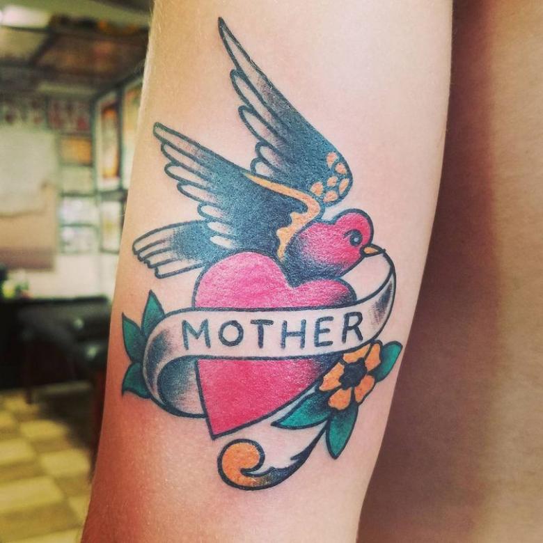 Le tatouage de maman est fait en l'honneur de la famille et des parents. Le portrait ou l'inscription peuvent être complétés par divers éléments. Les images portées dédiées à la mère symbolisent toujours l'amour de l'enfant pour ses parents. La réaction de la famille à ce tatouage thématique est souvent positive.