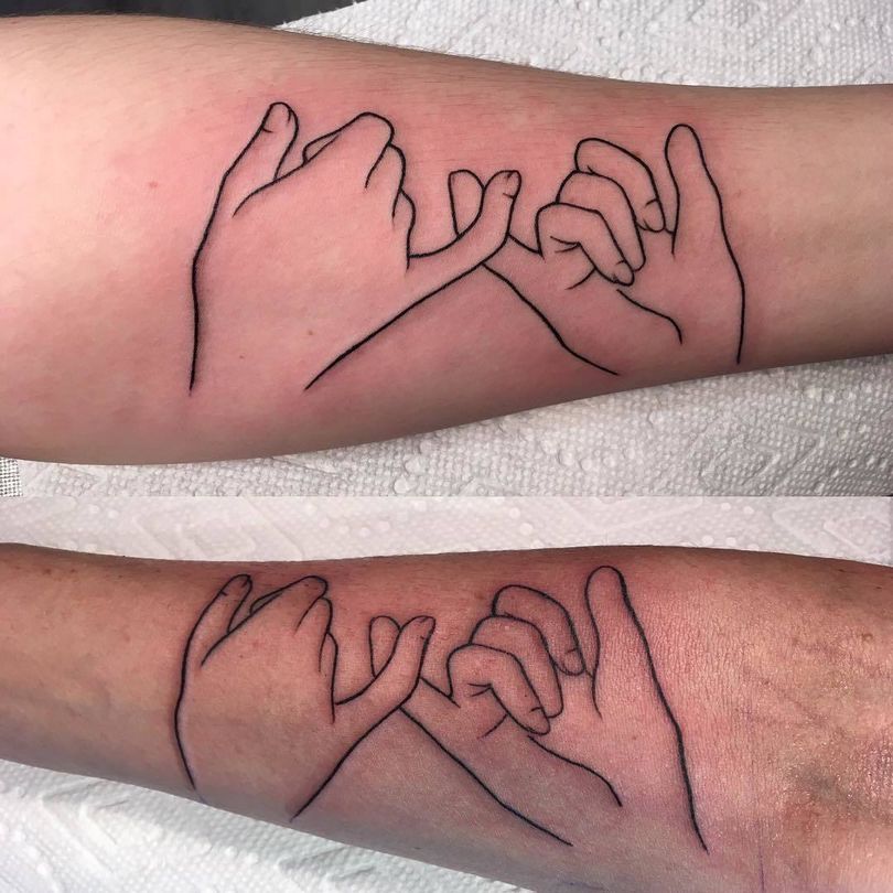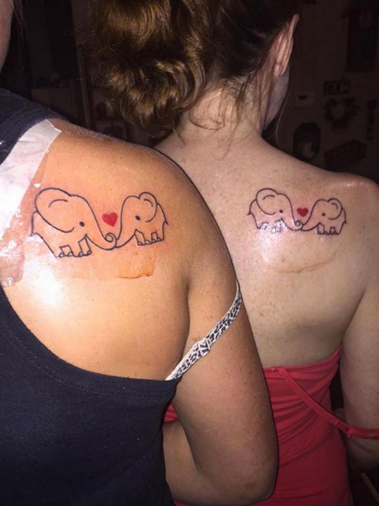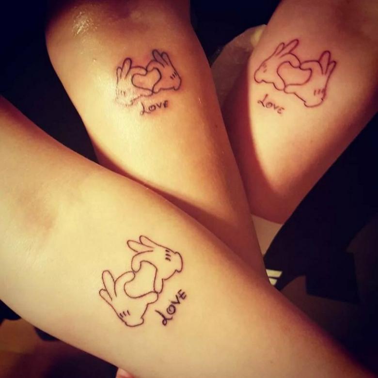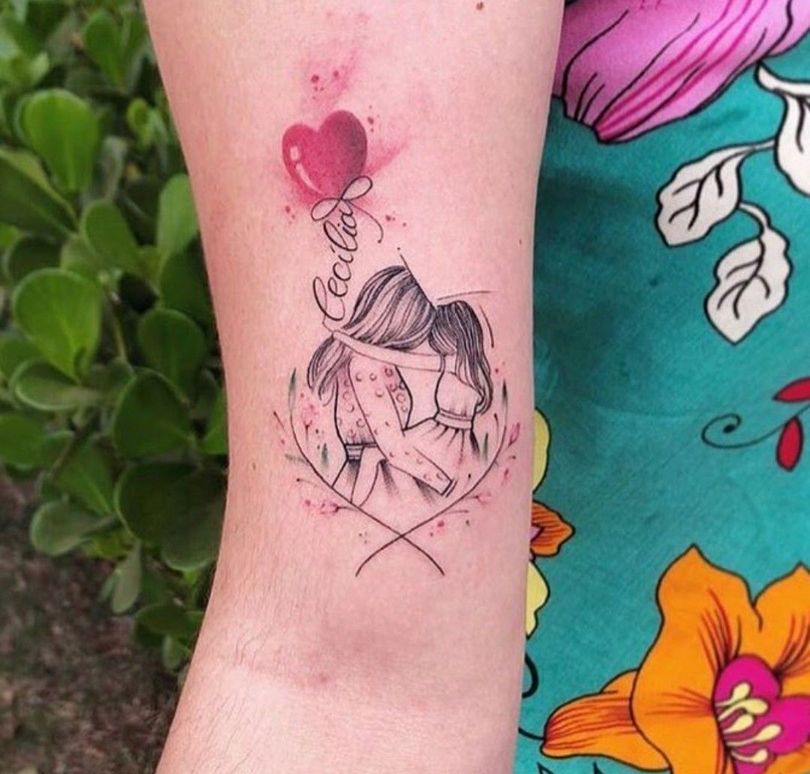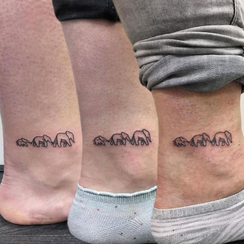 Une caractéristique du tatouage, dédié à la famille, est l'image d'éléments appariés. L'image, réalisée en l'honneur de la mère, est plus sentimentale. L'année de naissance peut être ajoutée ici, car la date est significative pour la maman et l'enfant.