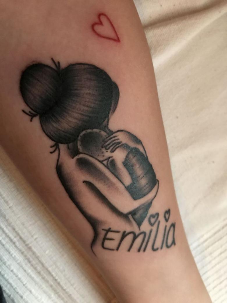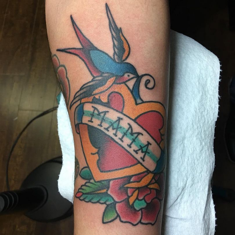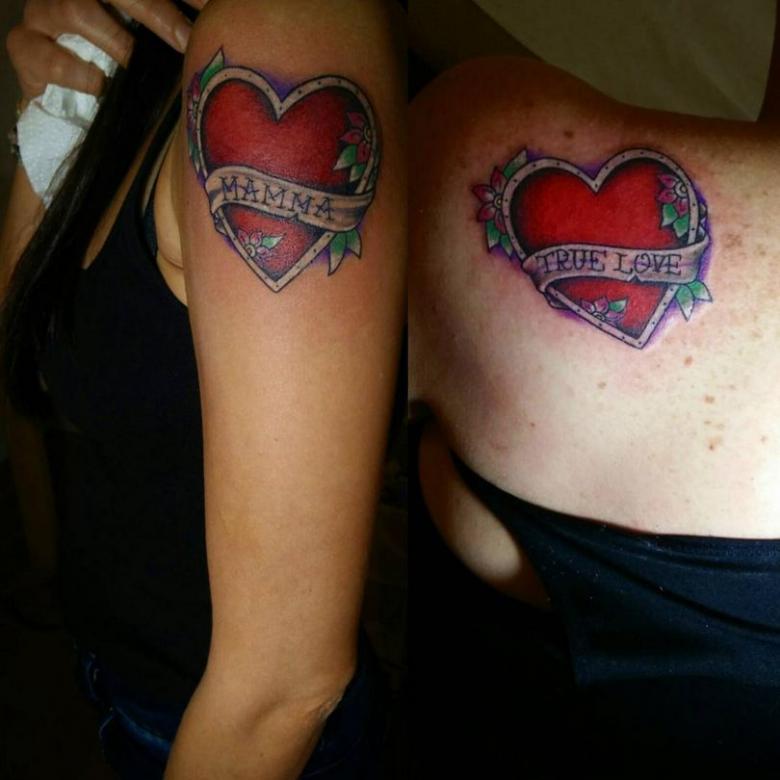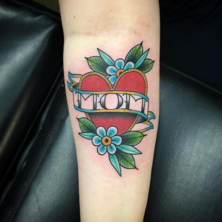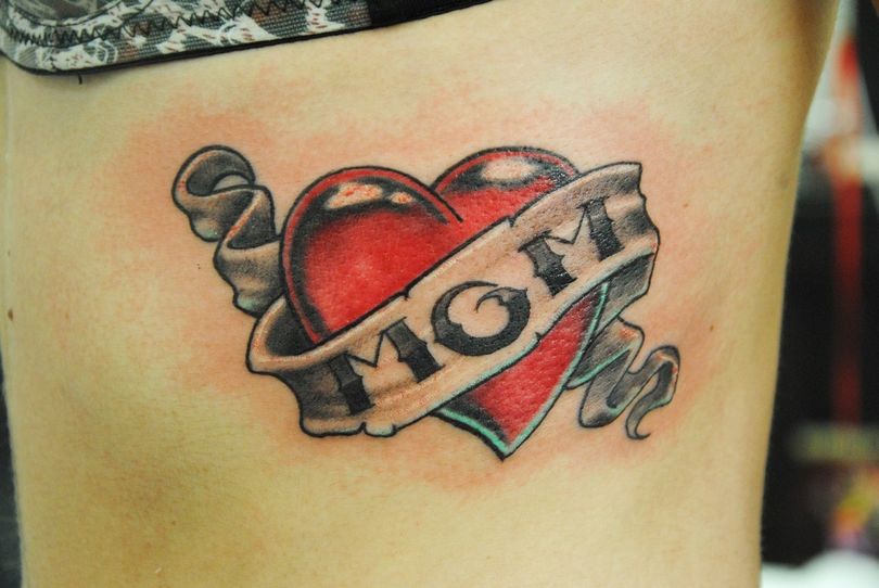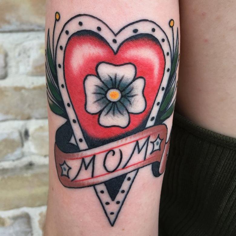 Le symbole du cœur est identifié à la naissance. Le tatouage signifie des sentiments profonds pour la mère.