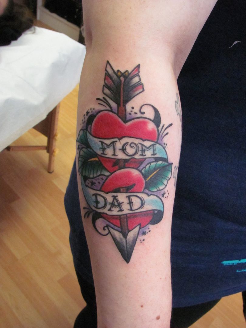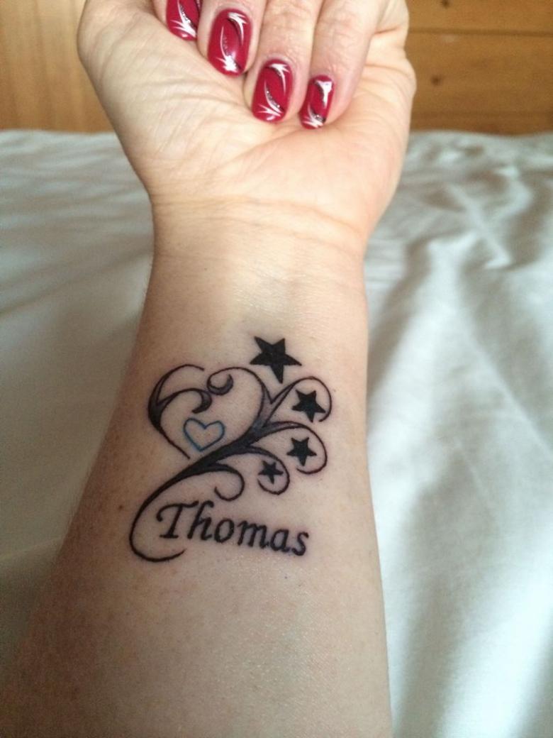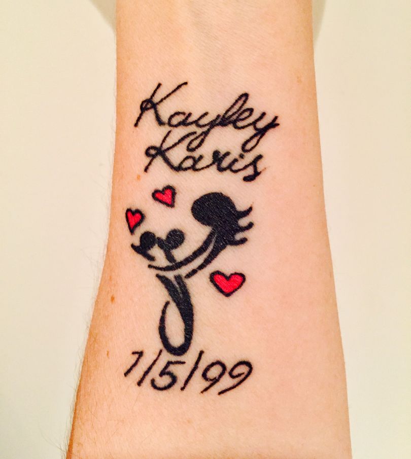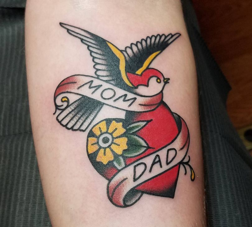 Le symbole du cœur est identifié à la naissance. Le tatouage signifie des sentiments profonds pour la mère.
