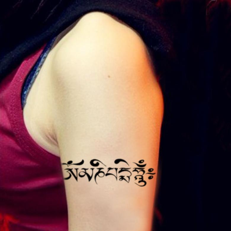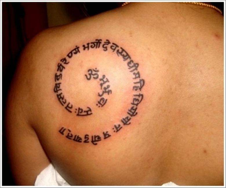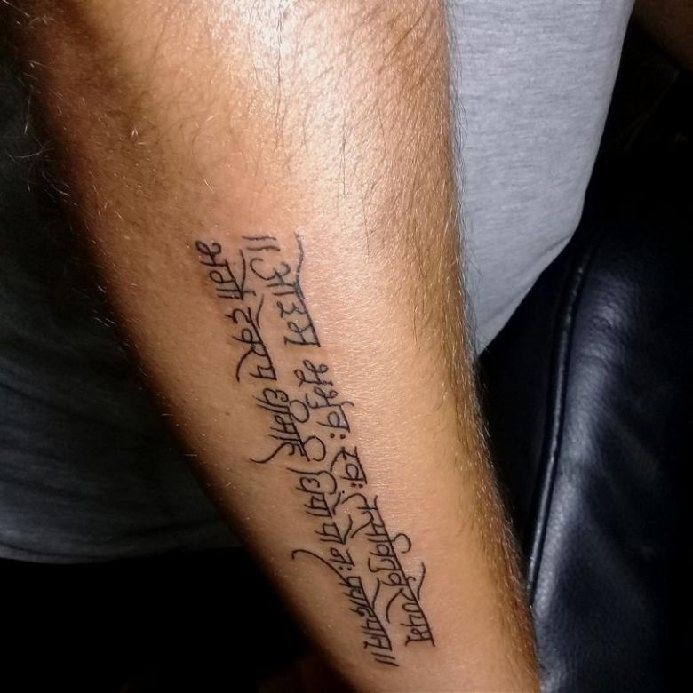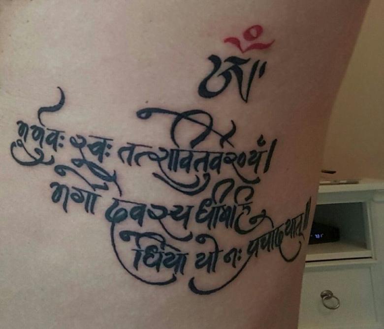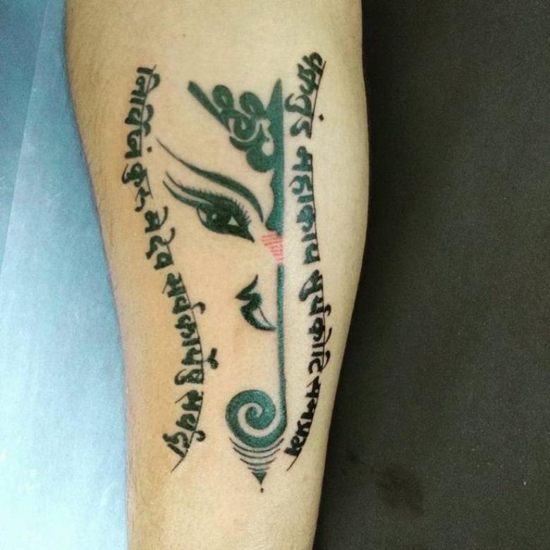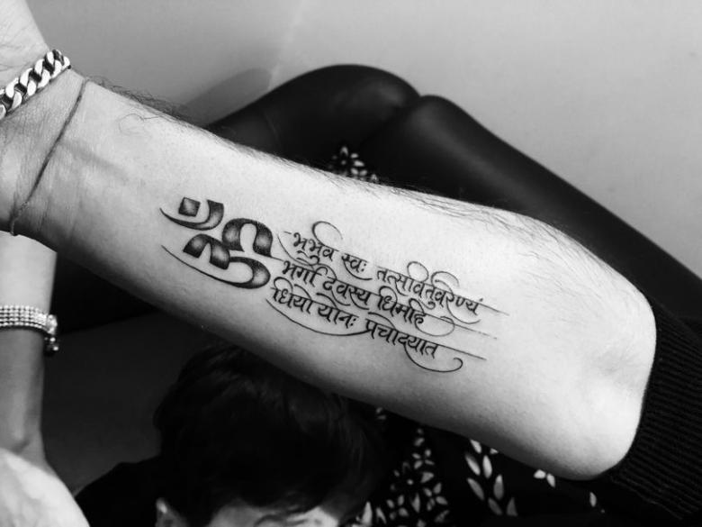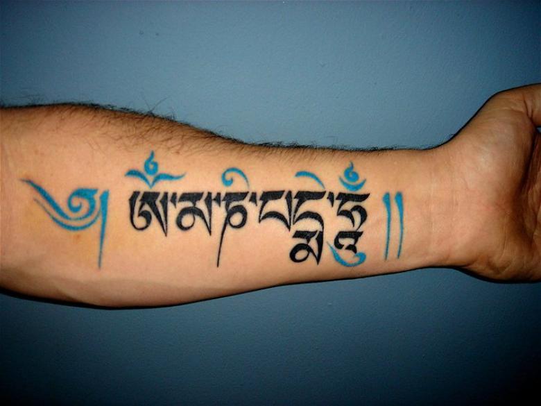 - Om Namah Shivaya - utilisé pour vénérer Shiva, dont le nom se traduit par bonheur et bonne chance. Le footballeur Theo Walcott a un tel tatouage.