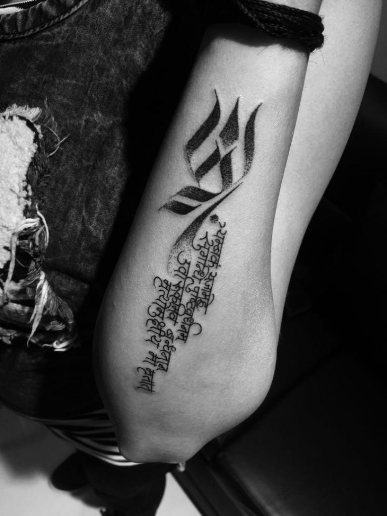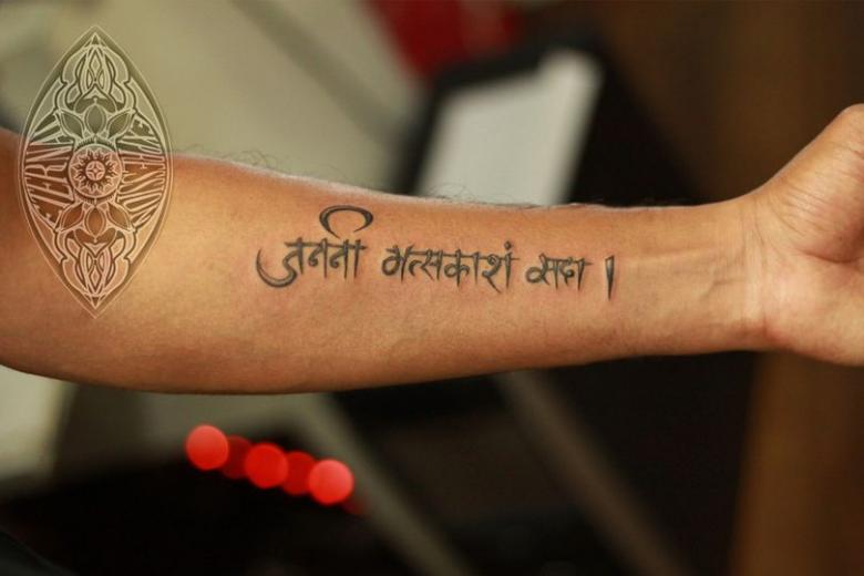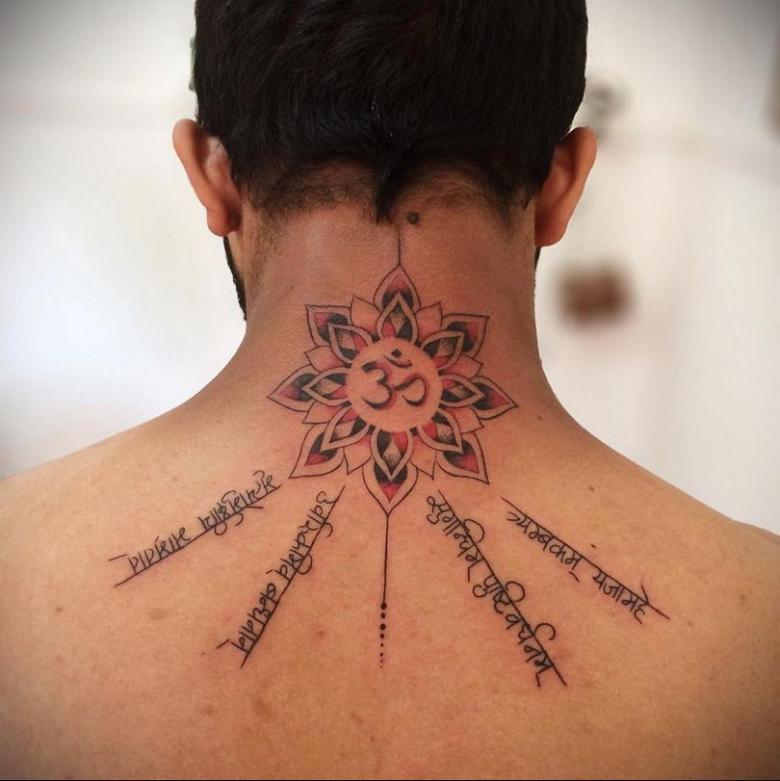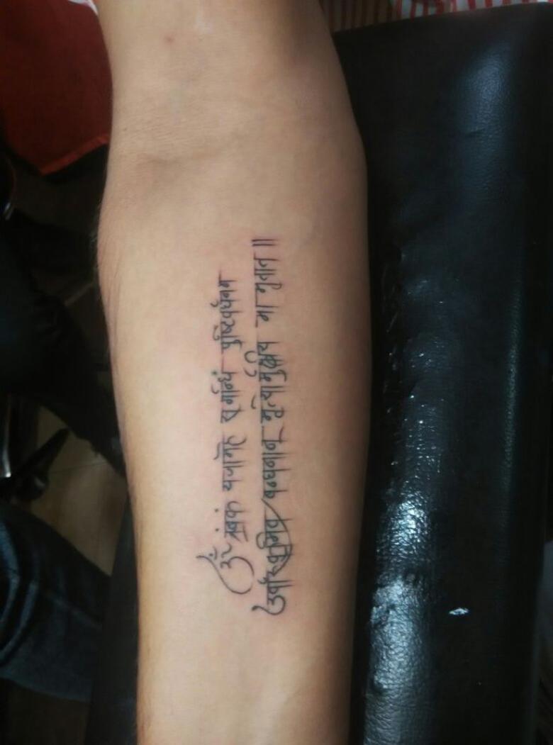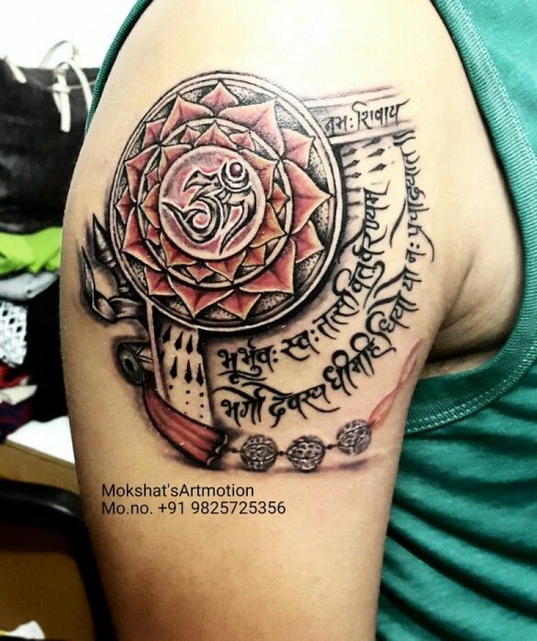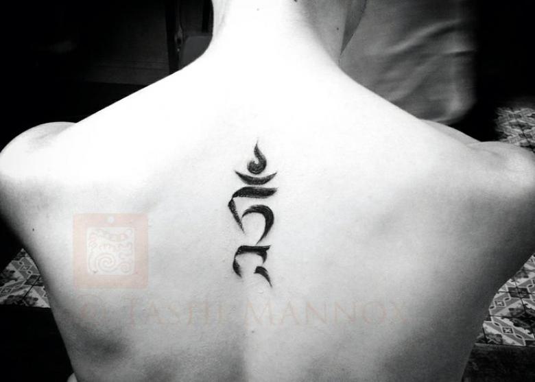 - Om Namah Shivaya - utilisé pour vénérer Shiva, dont le nom se traduit par bonheur et bonne chance. Le footballeur Theo Walcott a un tel tatouage.