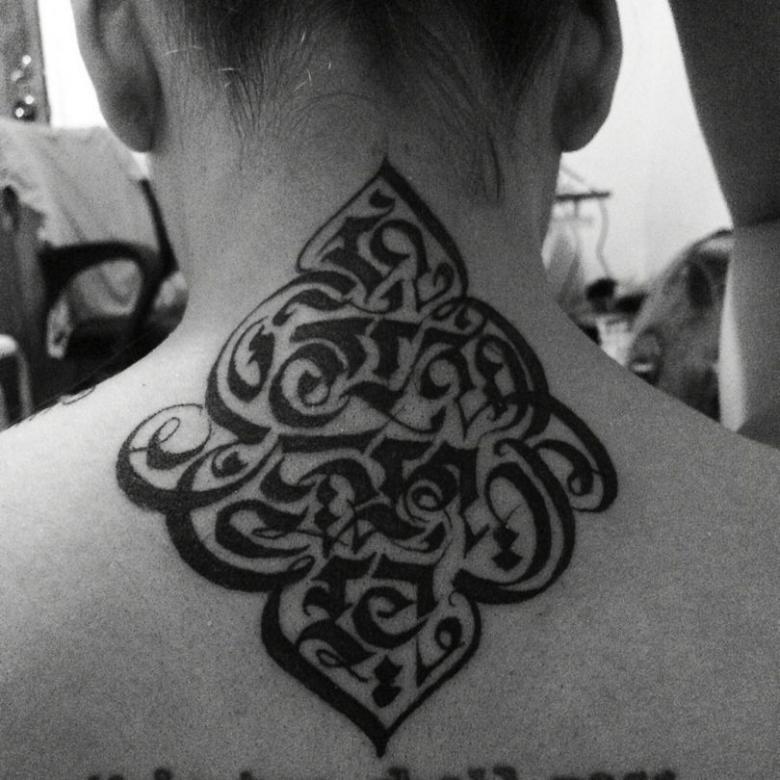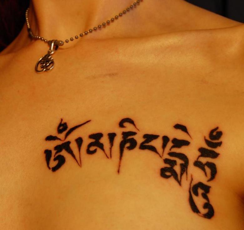 Tatouage avec un mantra - description complète et signification pour les filles, motifs populaires, photos intéressantes