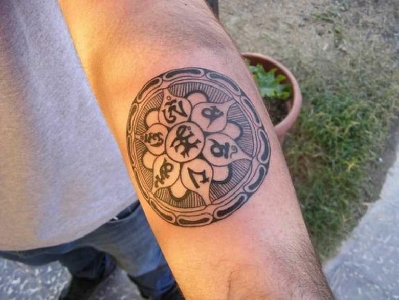 Il vaut la peine d'en parler séparément, car c'est le plus courant. Si vous cherchez sur Internet des tatouages avec des mantras, il en ressort la plupart des photos. C'est également le point de départ de nombreux pratiquants bouddhistes pour recevoir une bénédiction de la divinité principale, Chenrezig.