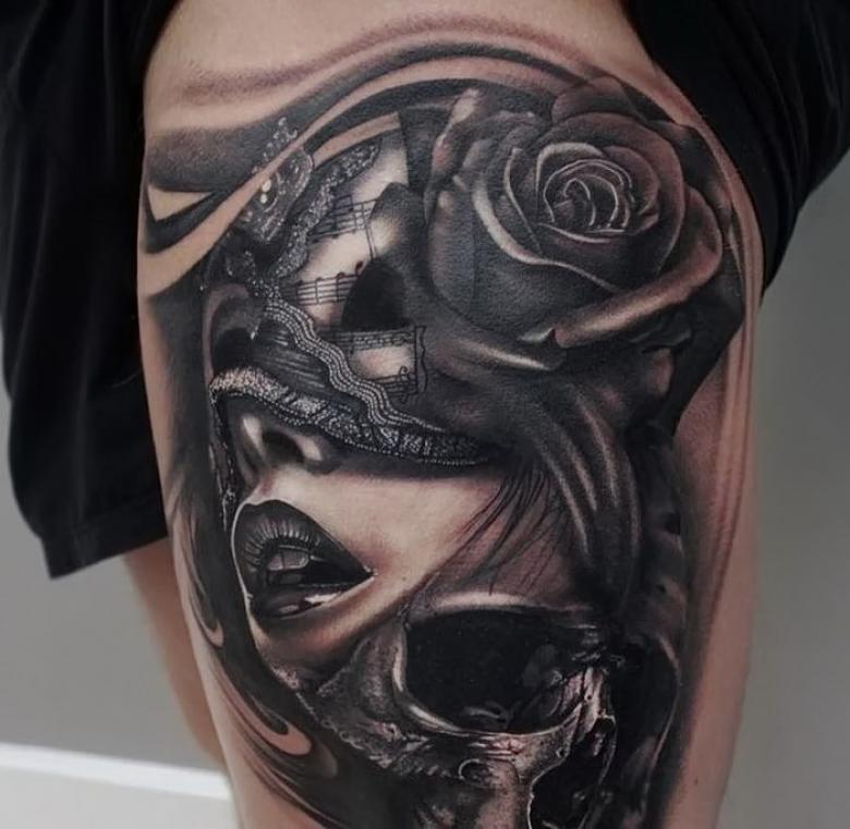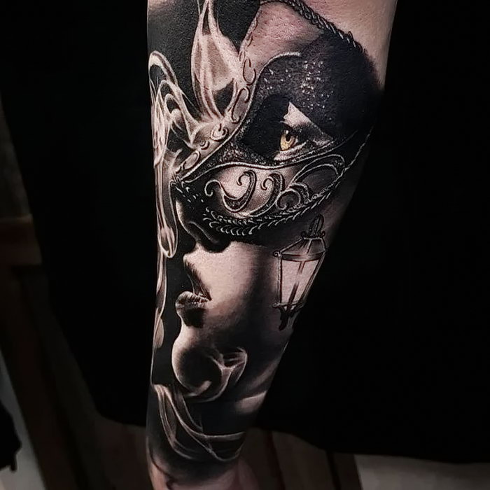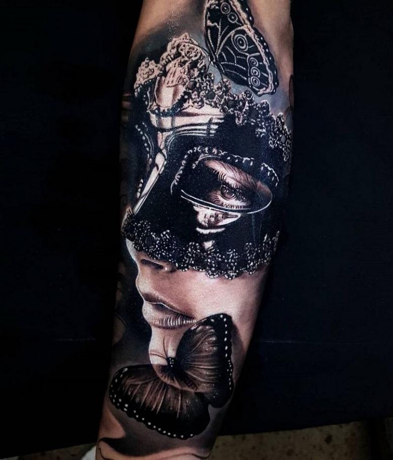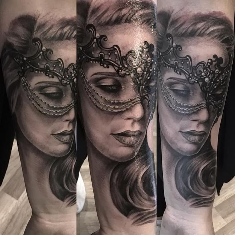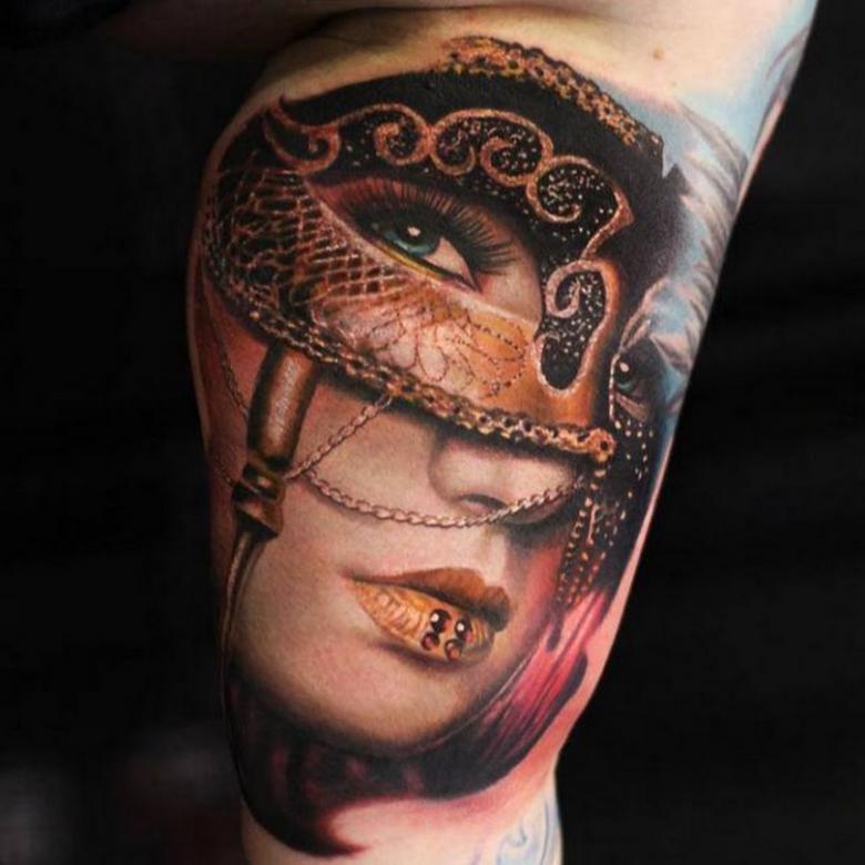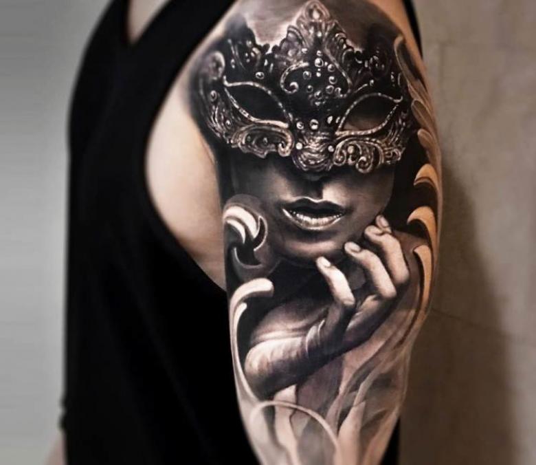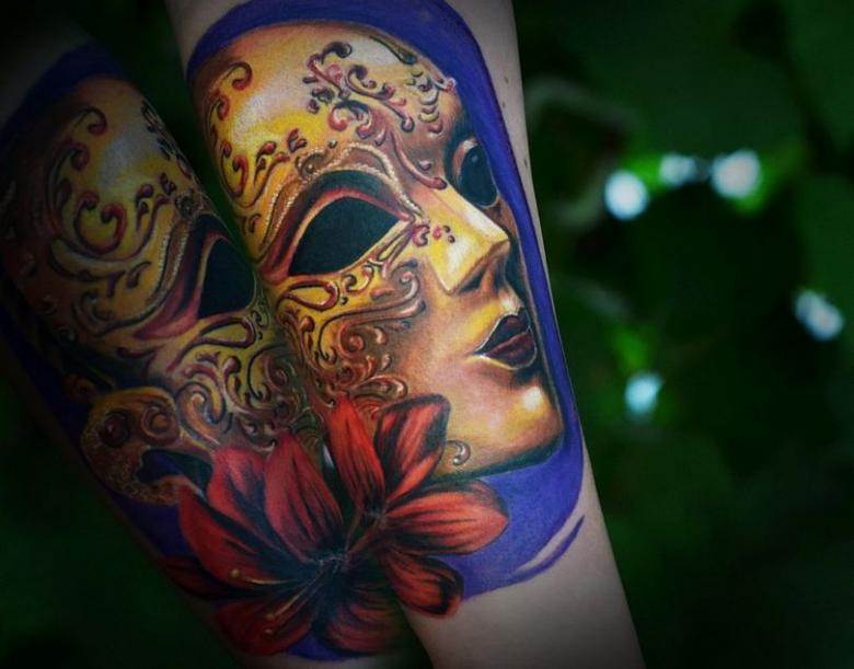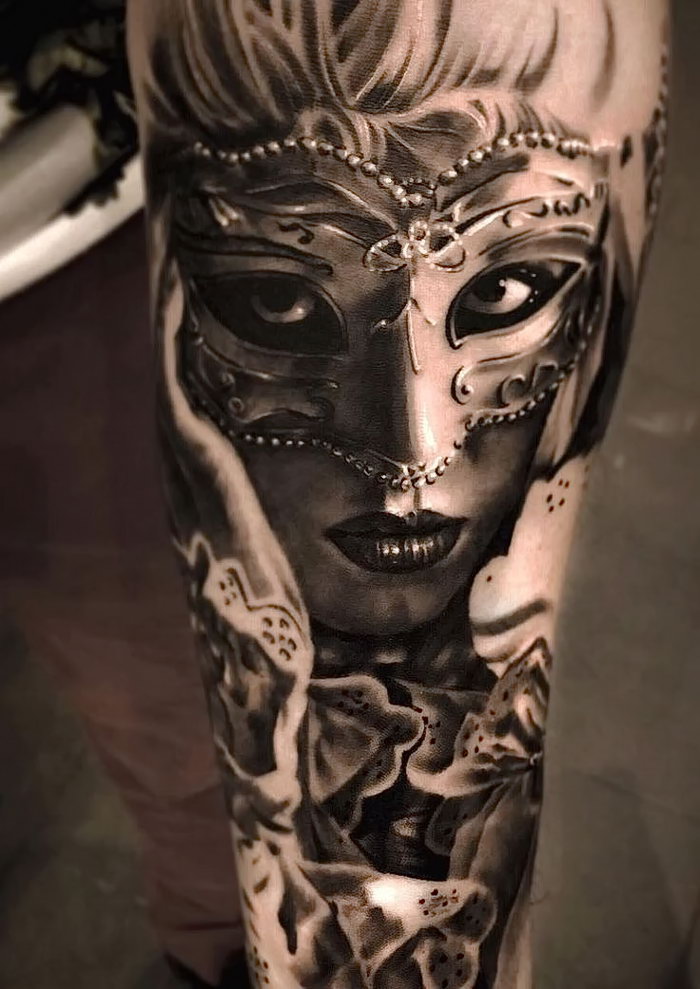 Les types de styles artistiques sont également variés, en fonction du professionnalisme du maître. Mais le réalisme est plus approprié, un masque est toujours un sujet du monde réel. Stylistiquement brillant, vénitien, il est préférable de le placer sur les bras. C'est une partie exposée du corps.