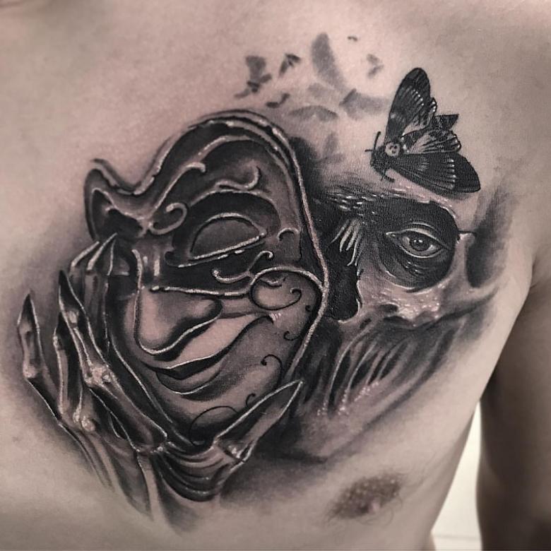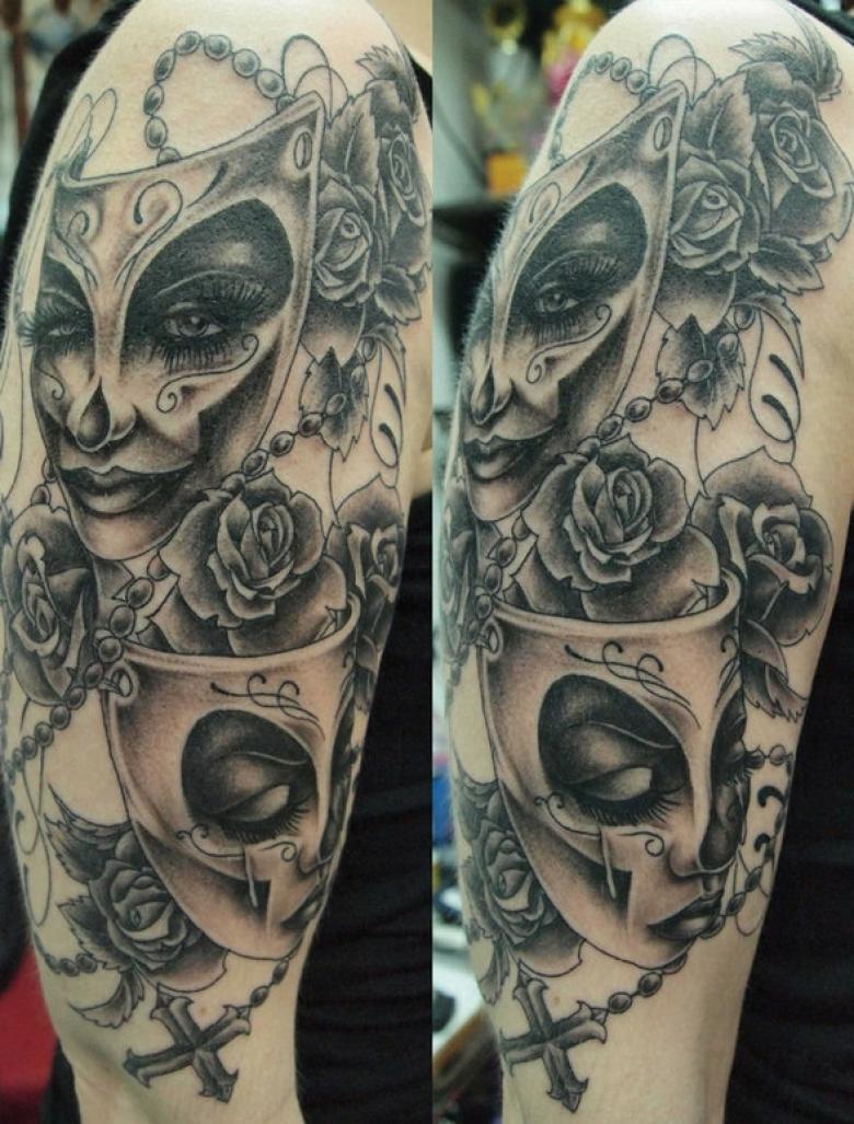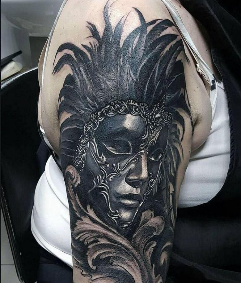 Masque de tatouage - croquis et significations, placement, photos intéressantes