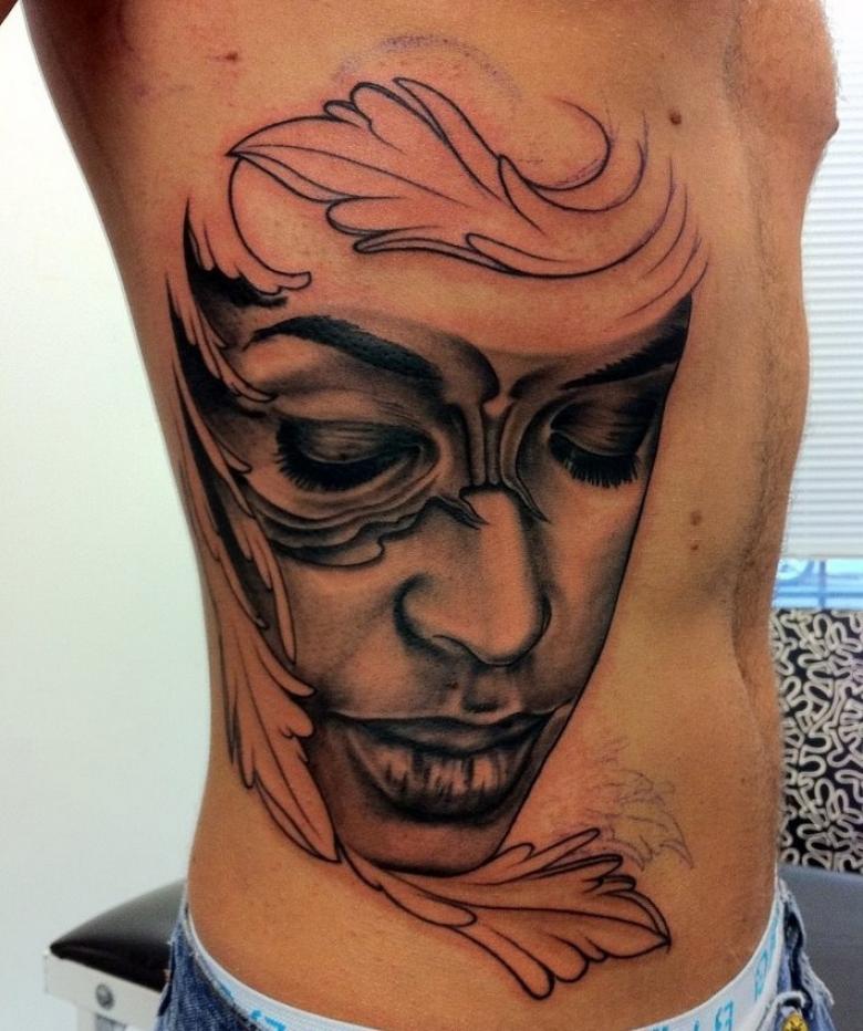 Notre civilisation se développe spirituellement, mais cette croissance n'est pas encore achevée. Par conséquent, l'endroit où les tatouages masquent est un certain nombre de restrictions tacites. Pour être exact un - c'est un visage. L'interdiction n'est pas catégorique, tout dépend de la situation. Bien que le masque doive initialement dissimuler le visage de son propriétaire, dans le monde de l'art corporel, il n'est pas toujours pris au pied de la lettre.