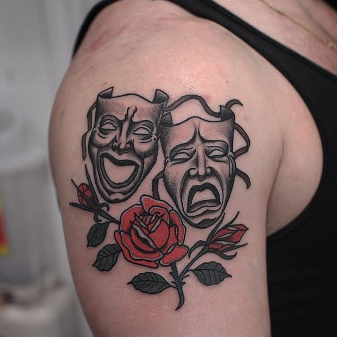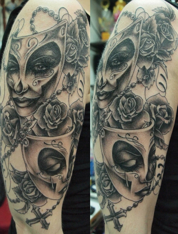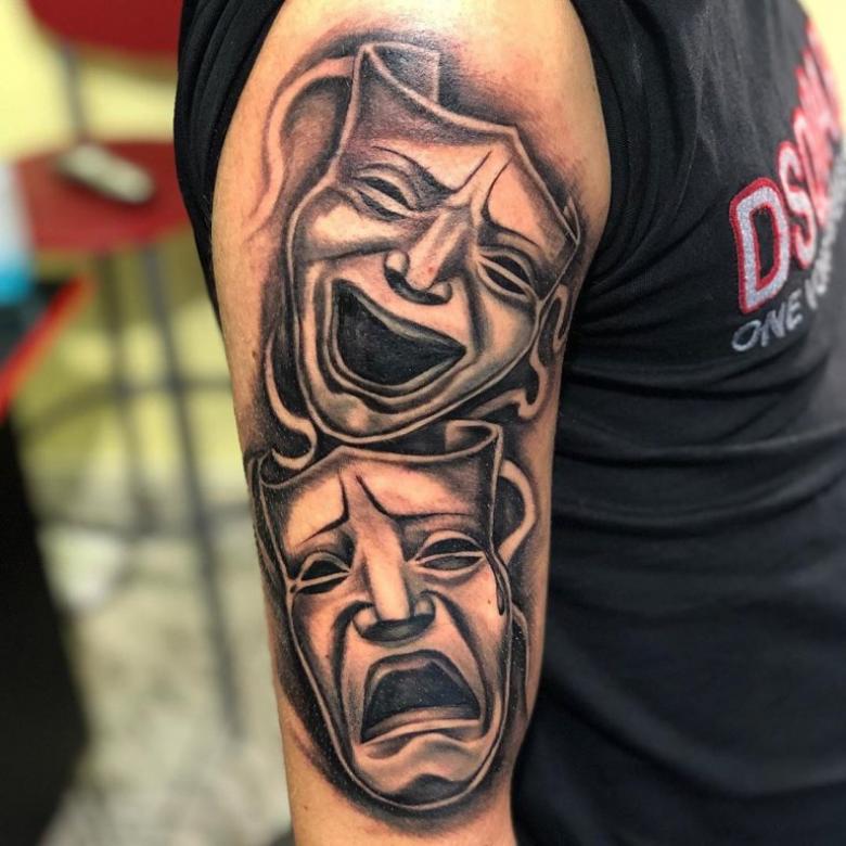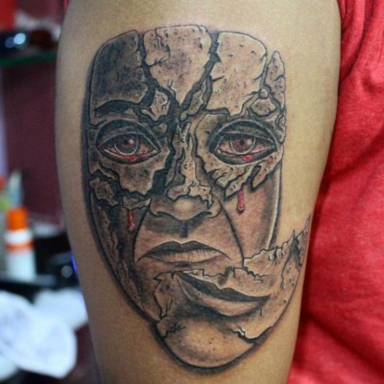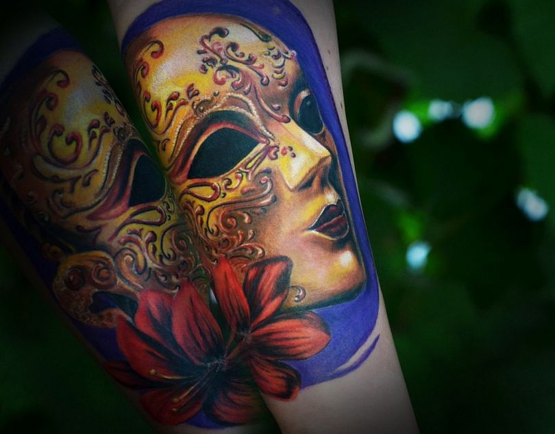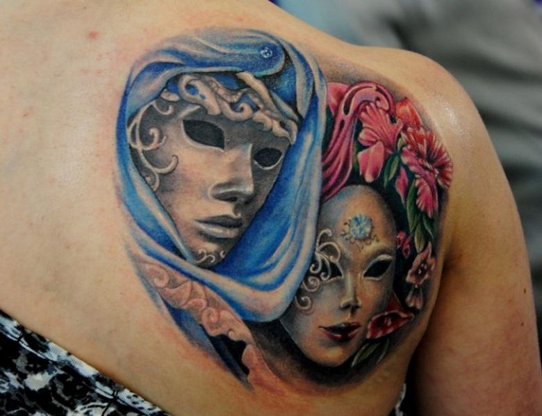 Le mot masque est utilisé dans de nombreux domaines de la vie, du maquillage aux funérailles. Le monde du tatouage n'en est pas dépourvu. Le mot masque est associé au jeu, à la théâtralité, à la religiosité, au rituel et au mystère. Chaque personne qui en porte un trouve sa propre raison de choisir un masque. Pour certains, c'est un beau dessin, et pour d'autres, c'est un bouclier, un talisman.