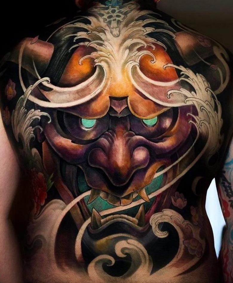Ils ne laissent quelque chose que dans leur propre monde. Un masque est la frontière entre ces mondes. C'est un certain écran visuel, un mur. Pour ces personnes, l'important est ce qui se cache derrière ; c'est le mystère lui-même qui compte, pas le dessin. Le masque n'est qu'un bouclier et un indicateur de l'intrigue, du mystère, du moi caché. En même temps, il existe des connaisseurs du tatouage qui sont fascinés par le masque lui-même, par son apparence, par son passé historique et géographique.