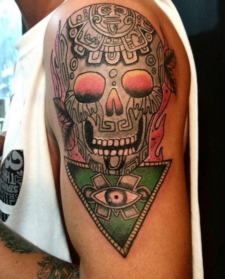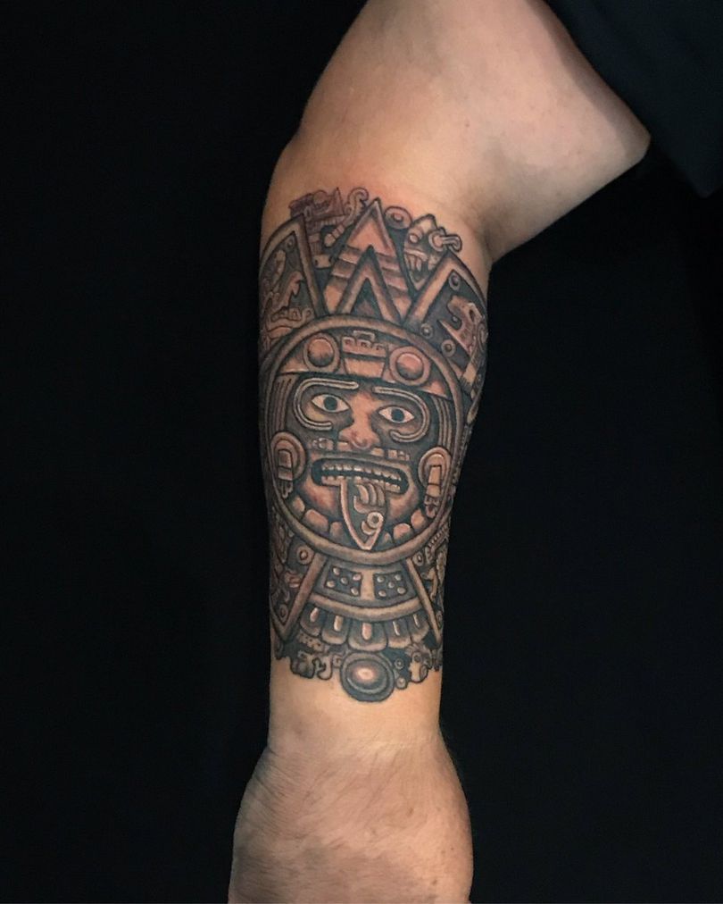 Les symboles les plus importants de la mythologie aztèque représentés sur le tatouage