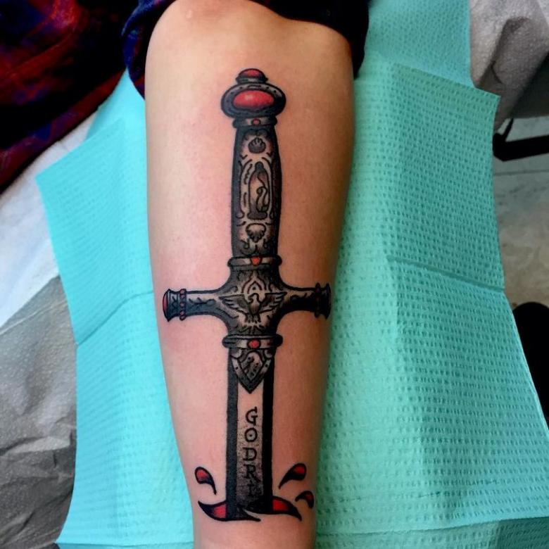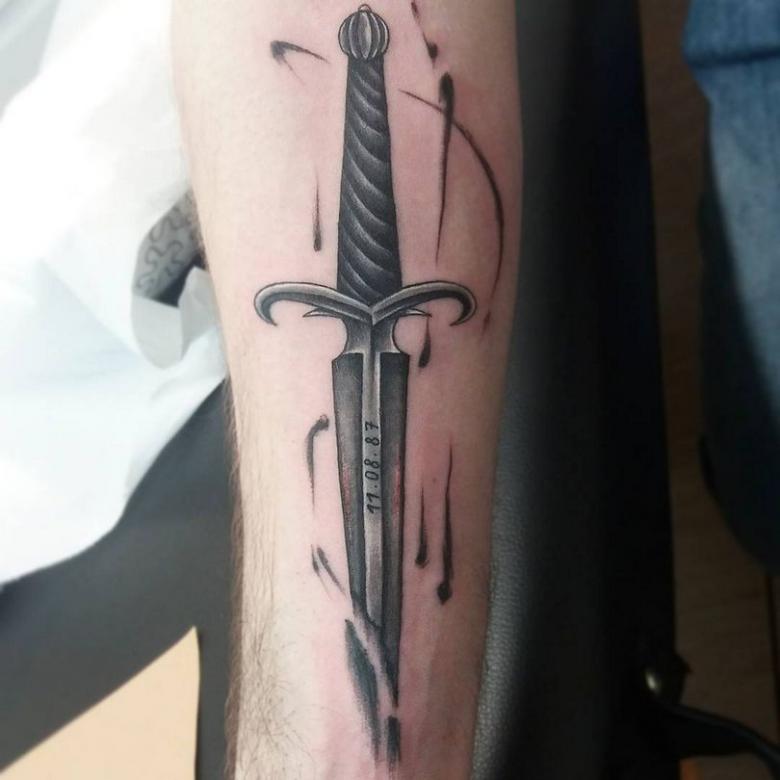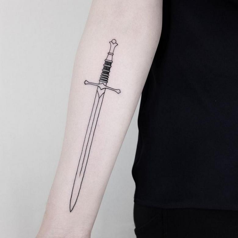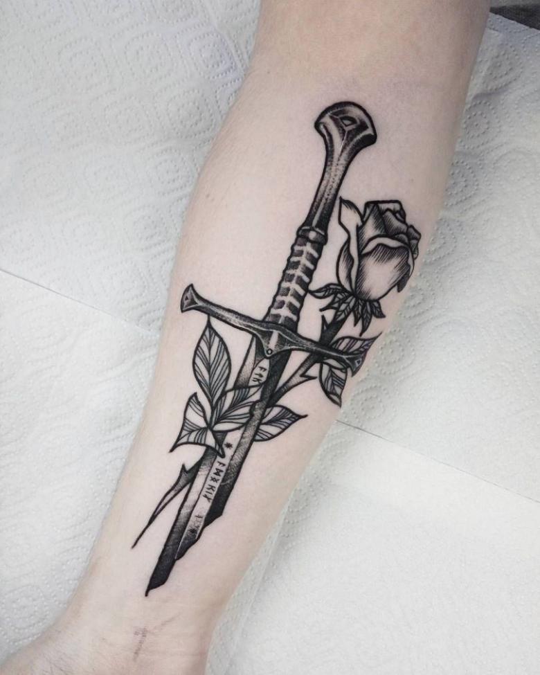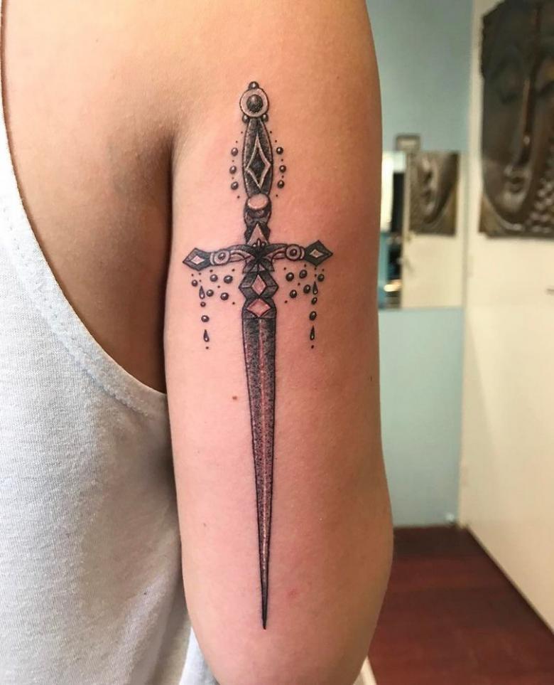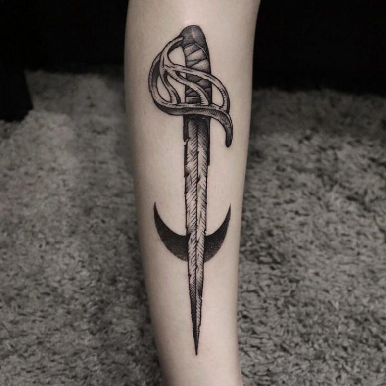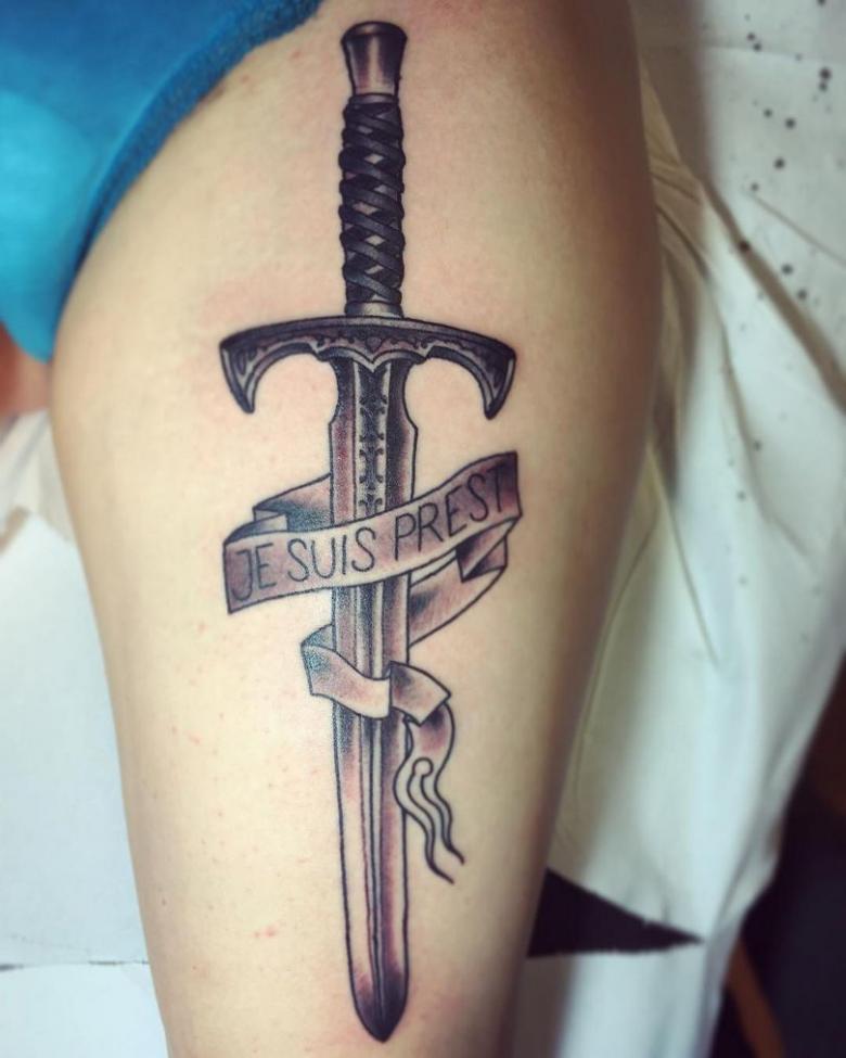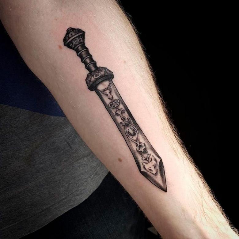 Il n'est pas rare de voir apparaître des tatouages représentant des armes tranchantes et une épée est le plus populaire d'entre eux.
