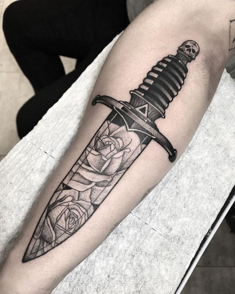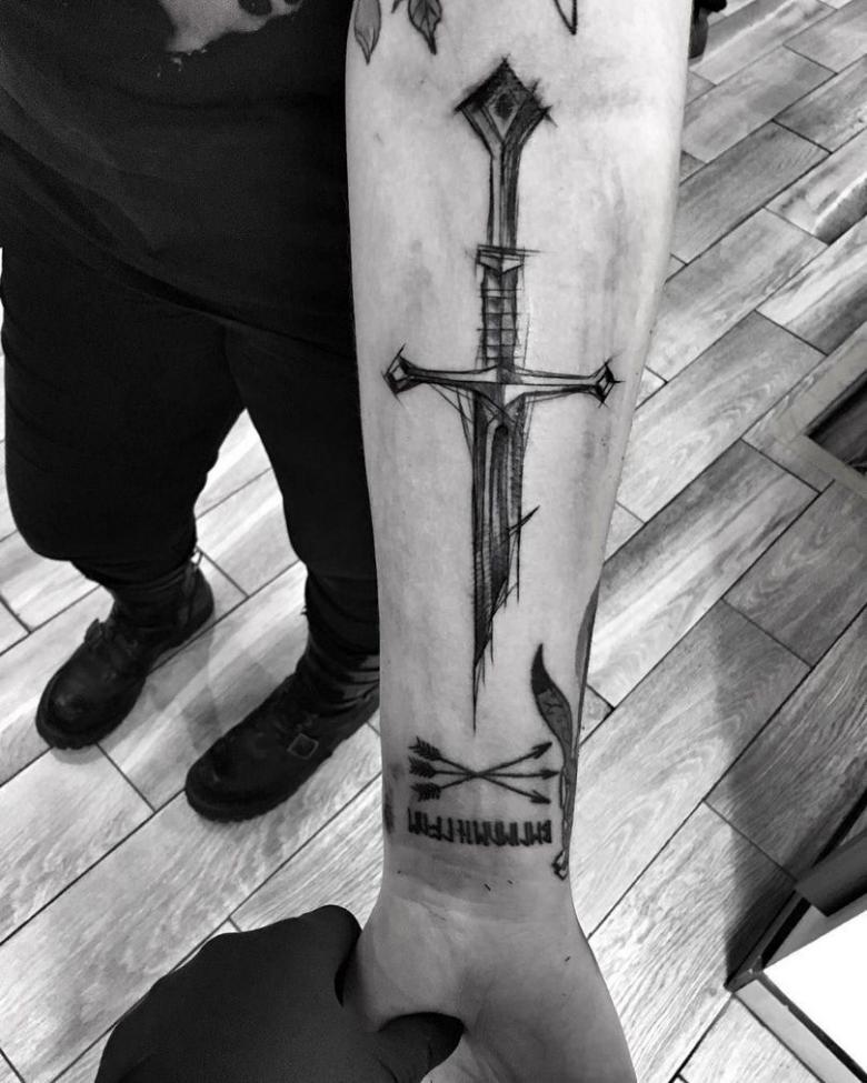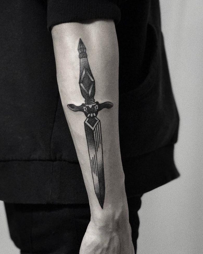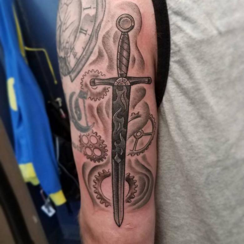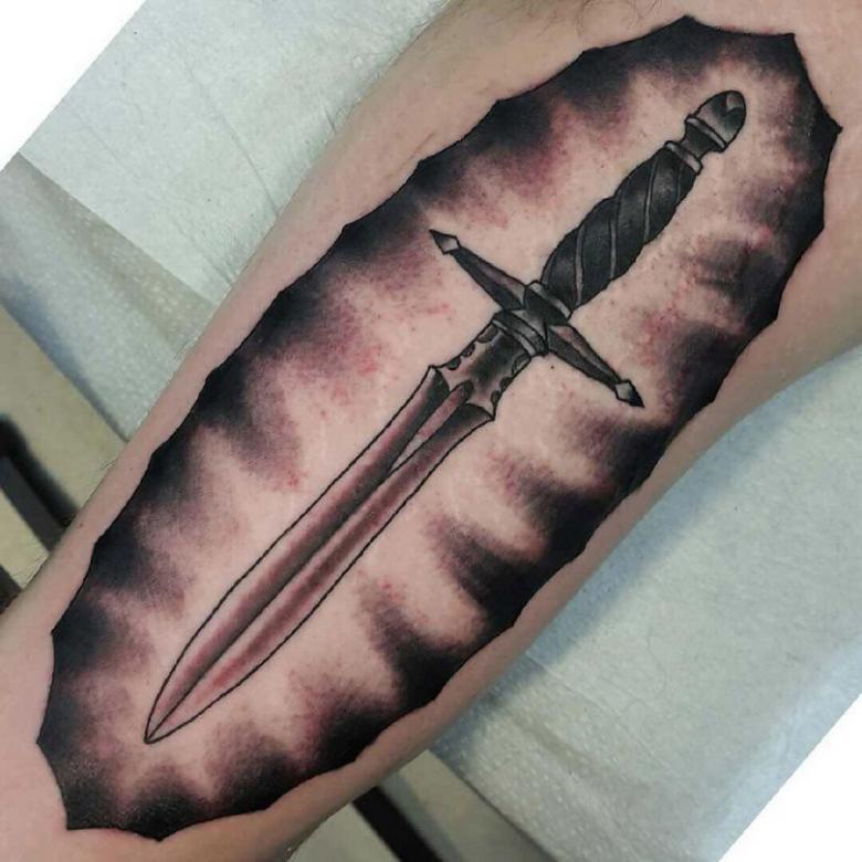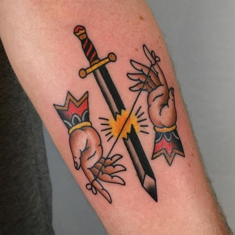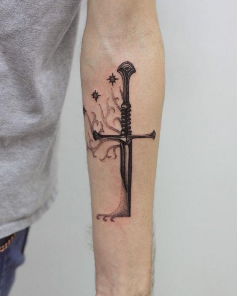 Il n'est pas rare de voir apparaître des tatouages représentant des armes tranchantes et une épée est le plus populaire d'entre eux.