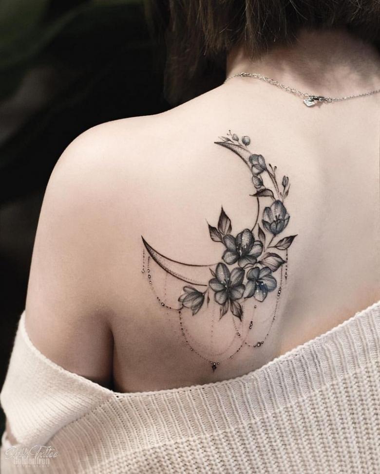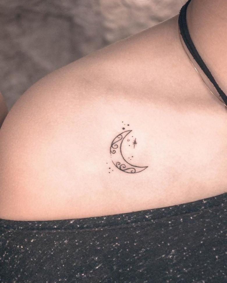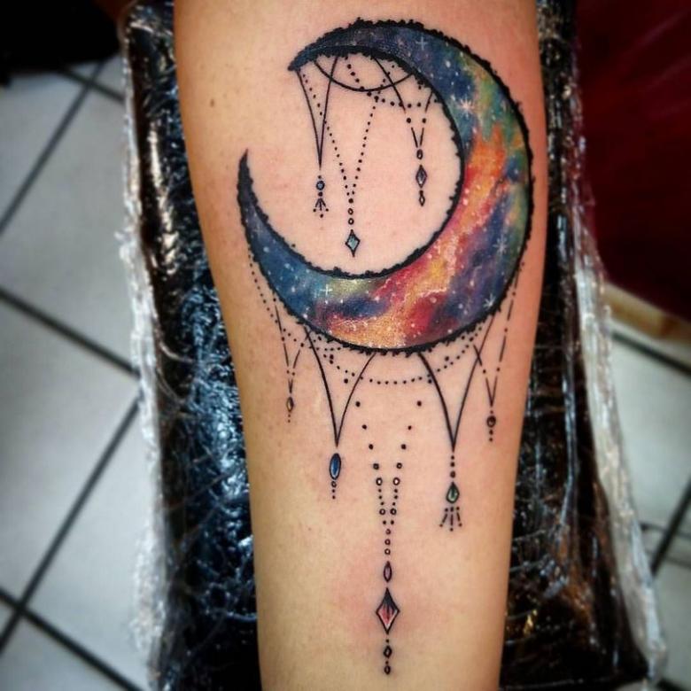 - La vue d'un ciel et d'un mois étoilés est une bonne idée pour un tatouage artistique. Les peintures sur le dos ou le bras représentant un ciel étoilé et un mois brillant évoquent l'infini de l'univers, le mystère de l'univers et la beauté de la vie. Les thèmes lunaires et cosmiques sont généralement réservés aux sous-cultures bohème et philosophique.