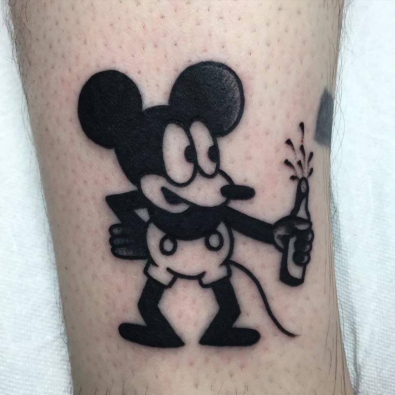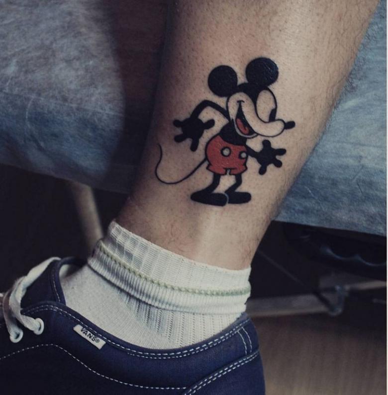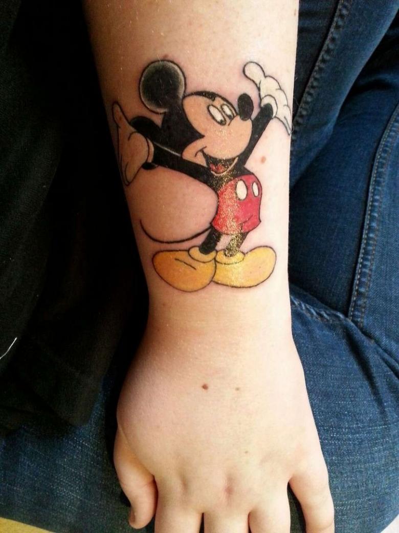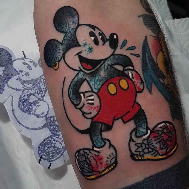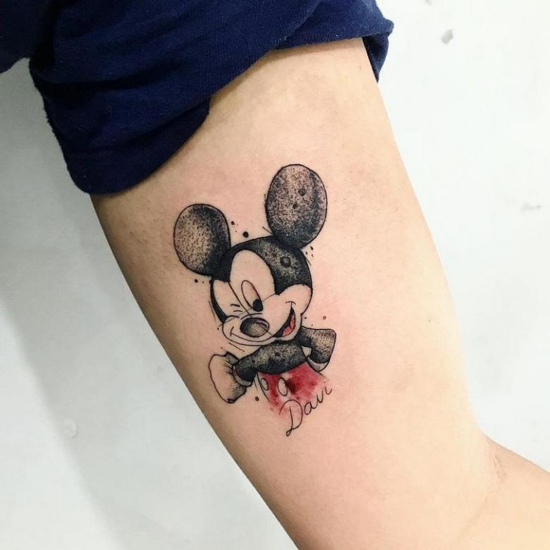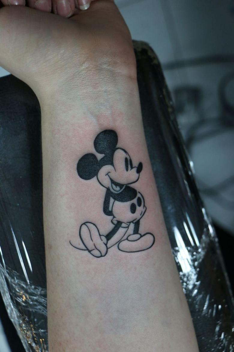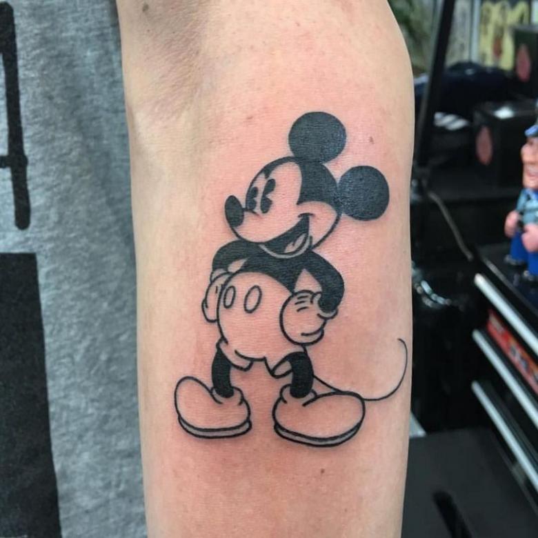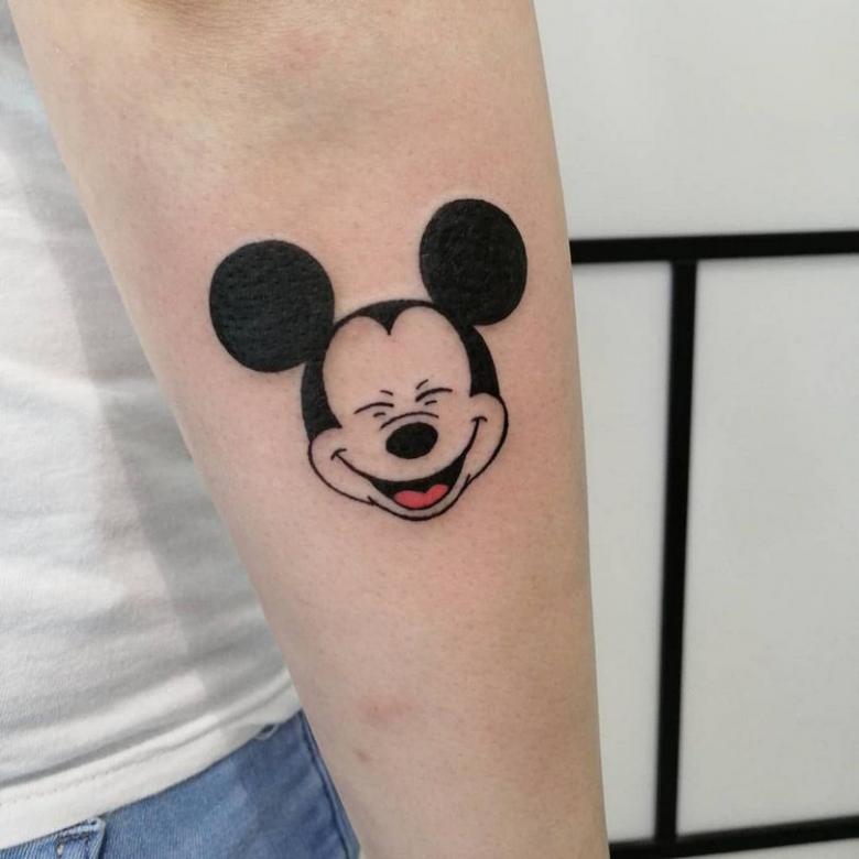 Tattoo Mickey Mouse - une description complète, la signification pour les filles, où appliquer (sur le bras, la jambe), des croquis amusants et des photos