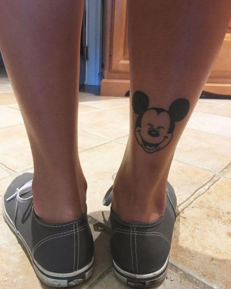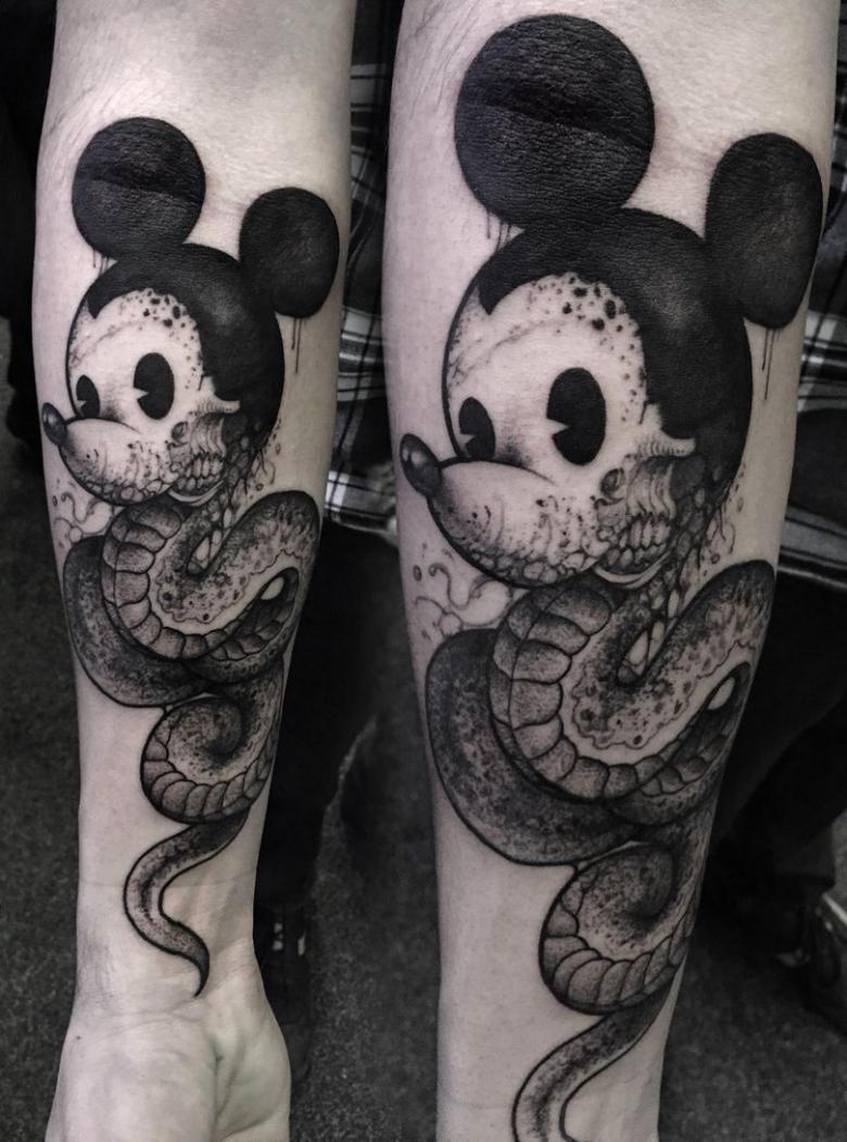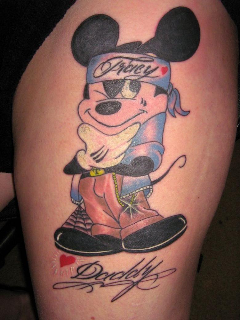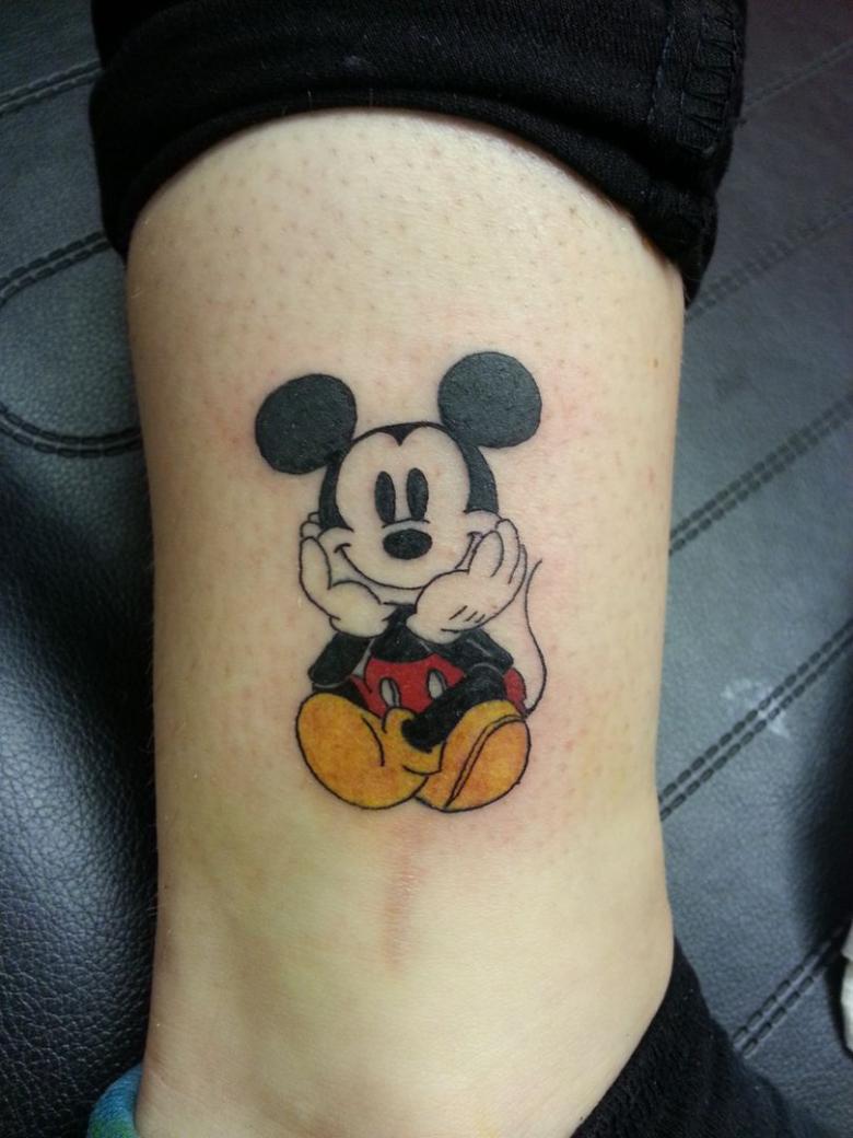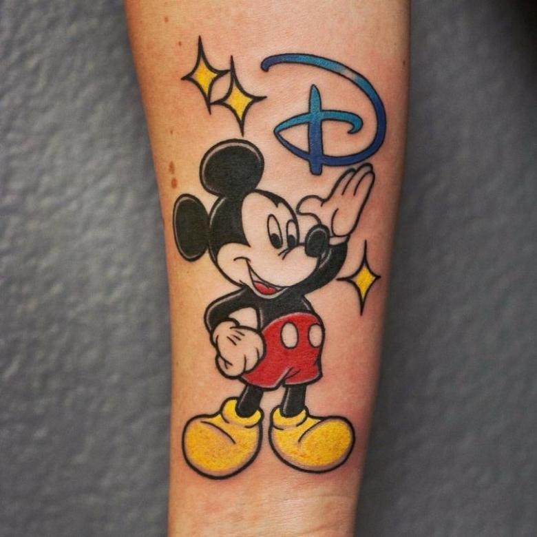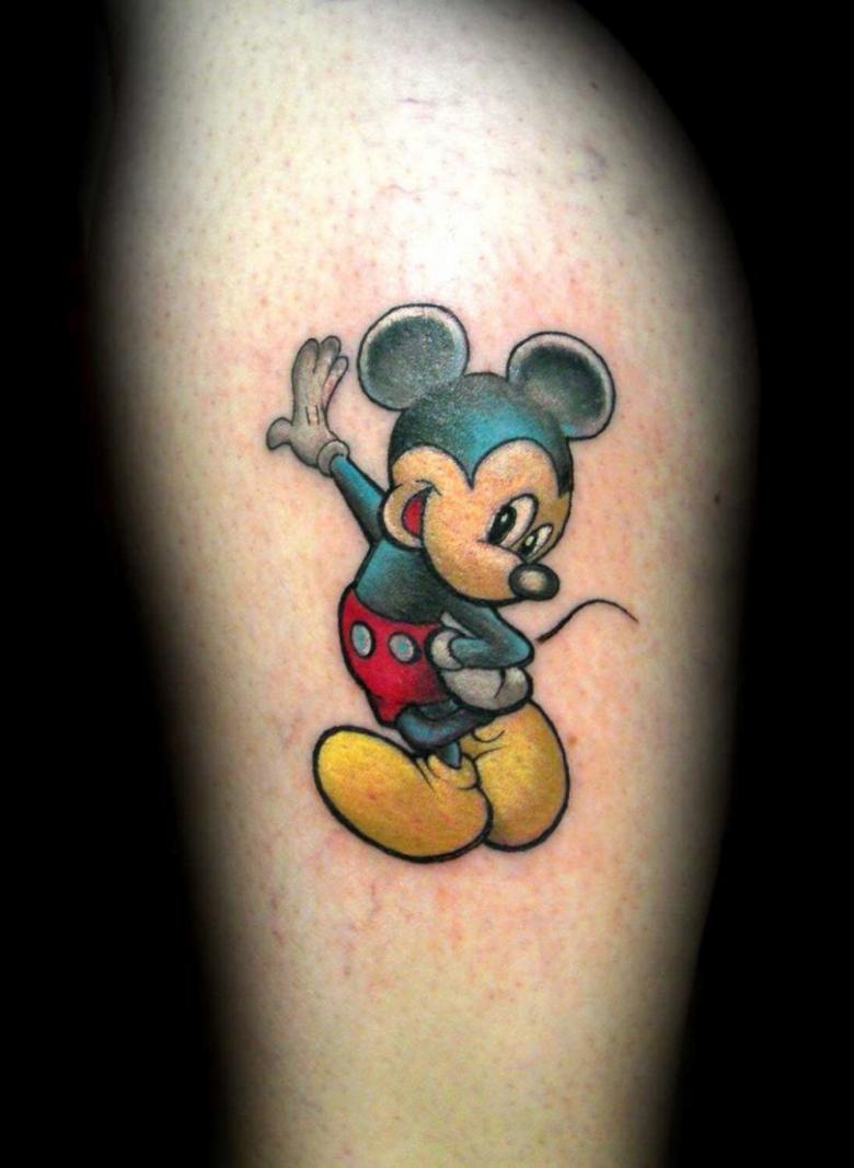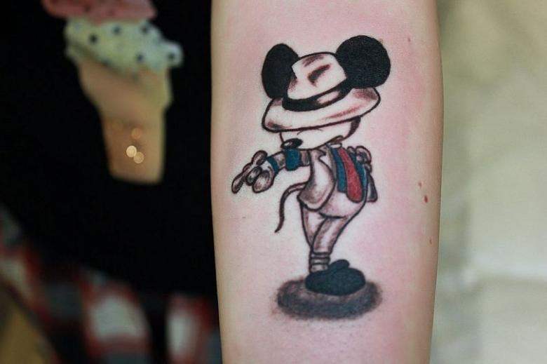 Tattoo Mickey Mouse - une description complète, la signification pour les filles, où appliquer (sur le bras, la jambe), des croquis amusants et des photos