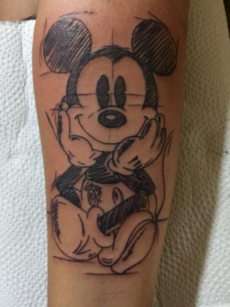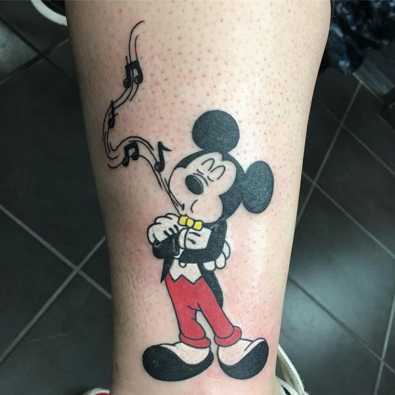 Il ne faut faire confiance qu'aux professionnels pour se faire tatouer Mickey Mouse. Tout artisan doit traiter son travail avec amour et soin. Il est possible d'élaborer un croquis sur lequel le travail sera effectué de manière indépendante.