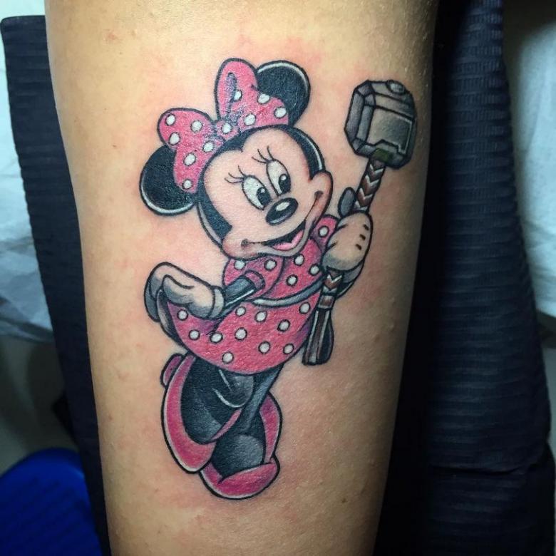 Le public a l'habitude de la voir avec de grosses chaussures brillantes et des robes évasées. Si le but du tatouage est d'exprimer l'amour éternel de Mickey et Minnie à travers le tatouage, les deux souris doivent être tatouées sur le corps.