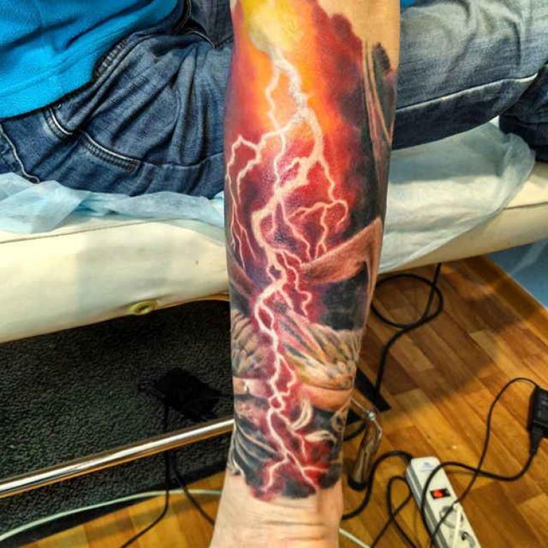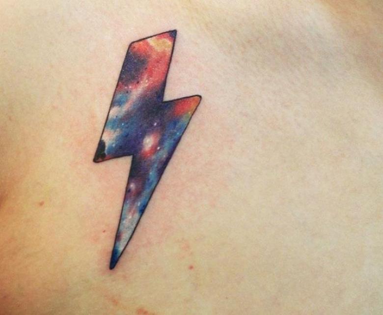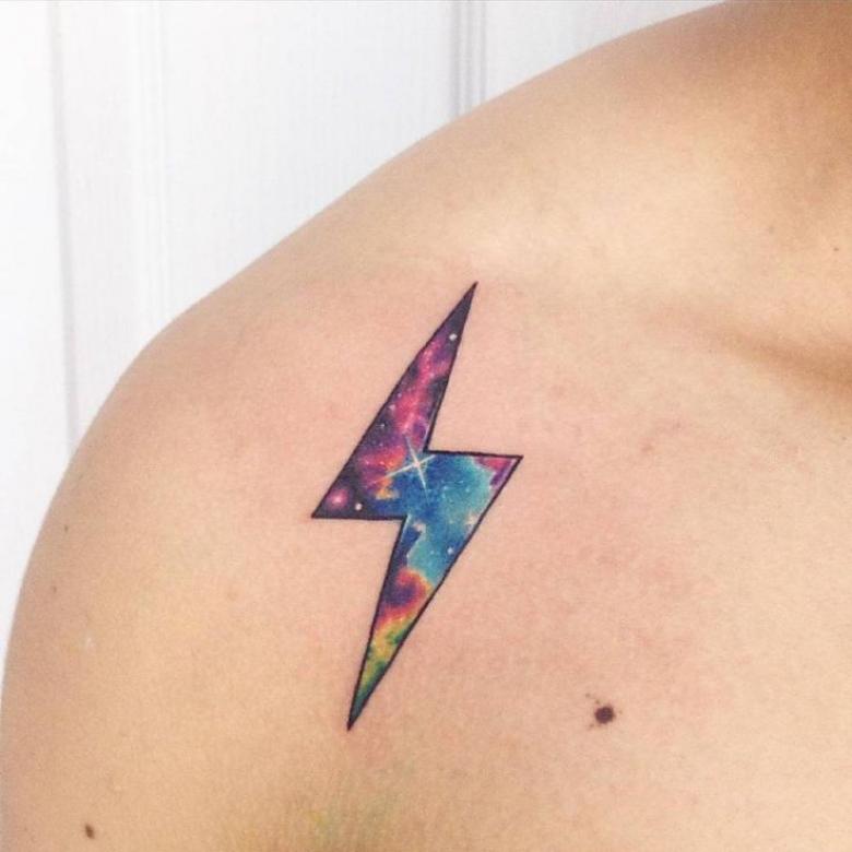 L'image de l'éclair sur le corps a toujours été identifiée à une force rapide, à la puissance et à une autorité inflexible. Et si pour un athée, la foudre n'est qu'une simple décharge électrique, pour les anciens païens, ce phénomène avait une signification sacrée, personnifiant la colère des dieux.