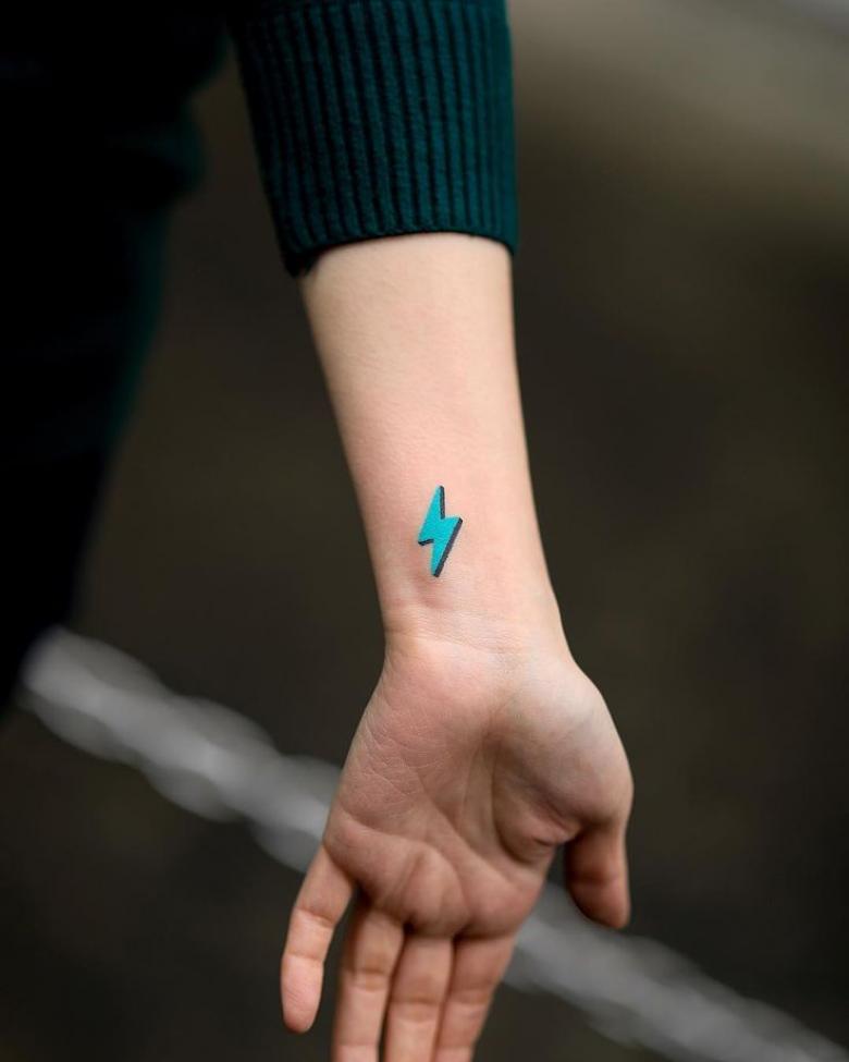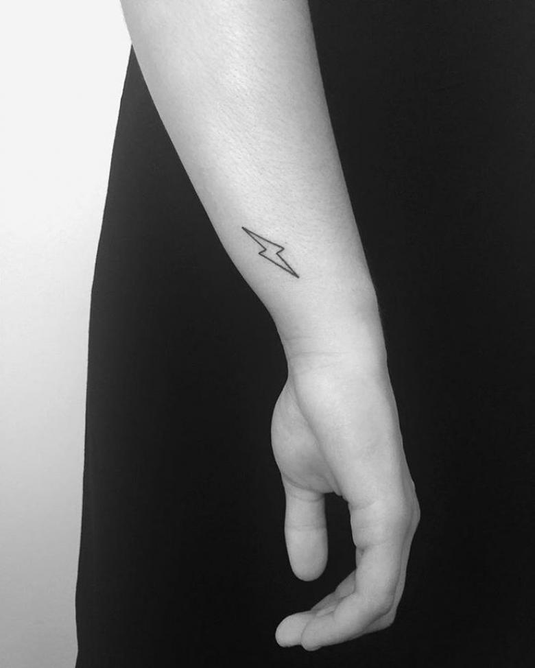Tatouage Éclair - symbolisme, options amusantes, croquis, où l'appliquer (sur la main, le doigt, le poignet, le cou, le pied), idées de photos