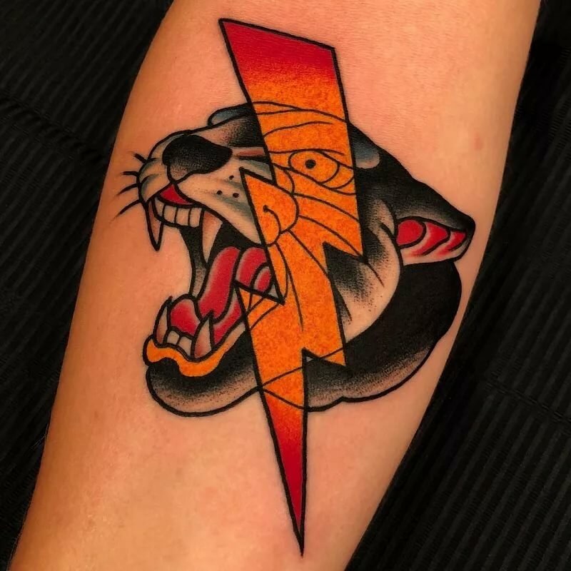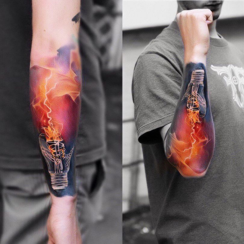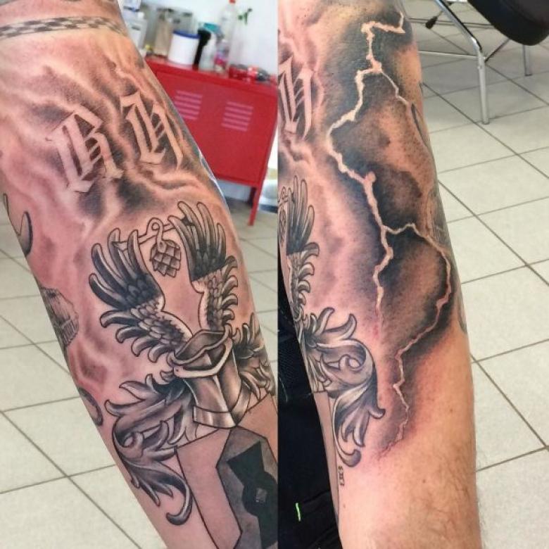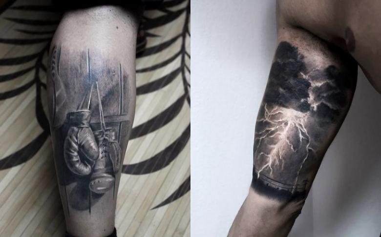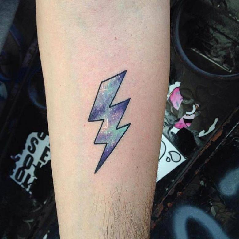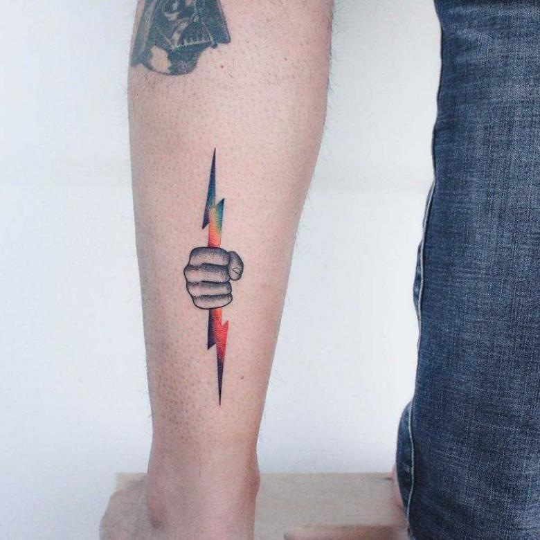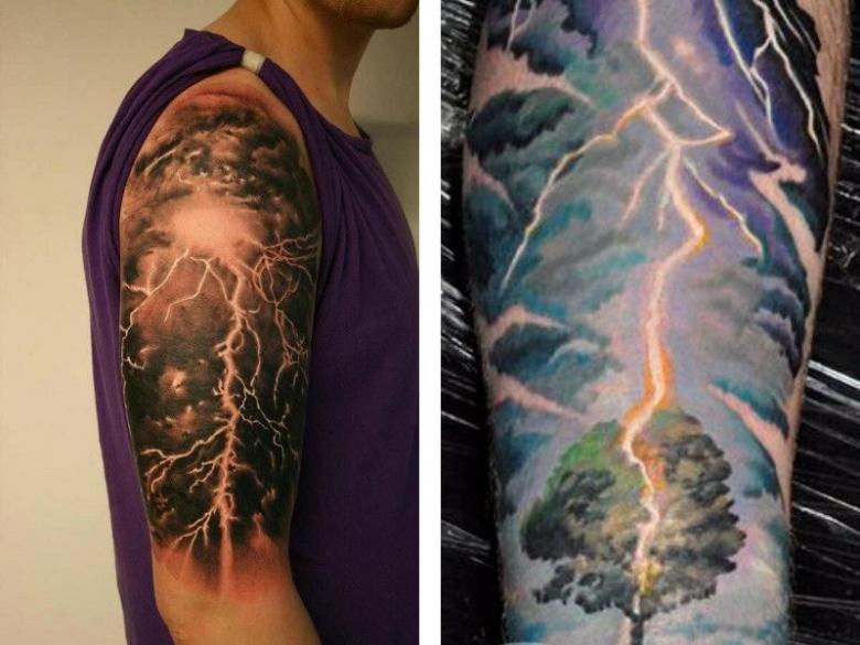 L'élan de la prise de décision, l'impétuosité, la puissance - ce sont des qualités typiquement masculines, ce qui fait que n'importe quel type actif de tatouage "Éclair" est le mieux adapté.
