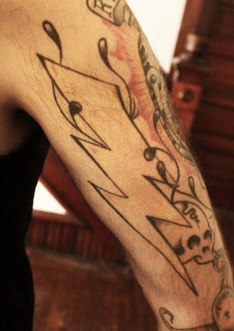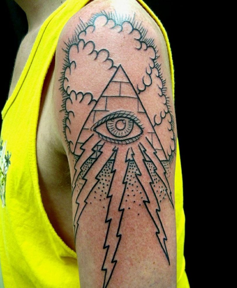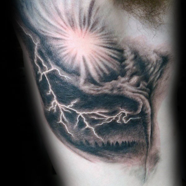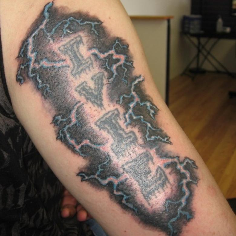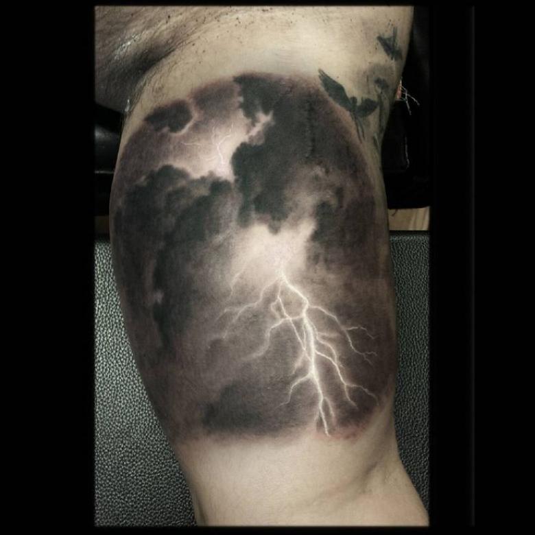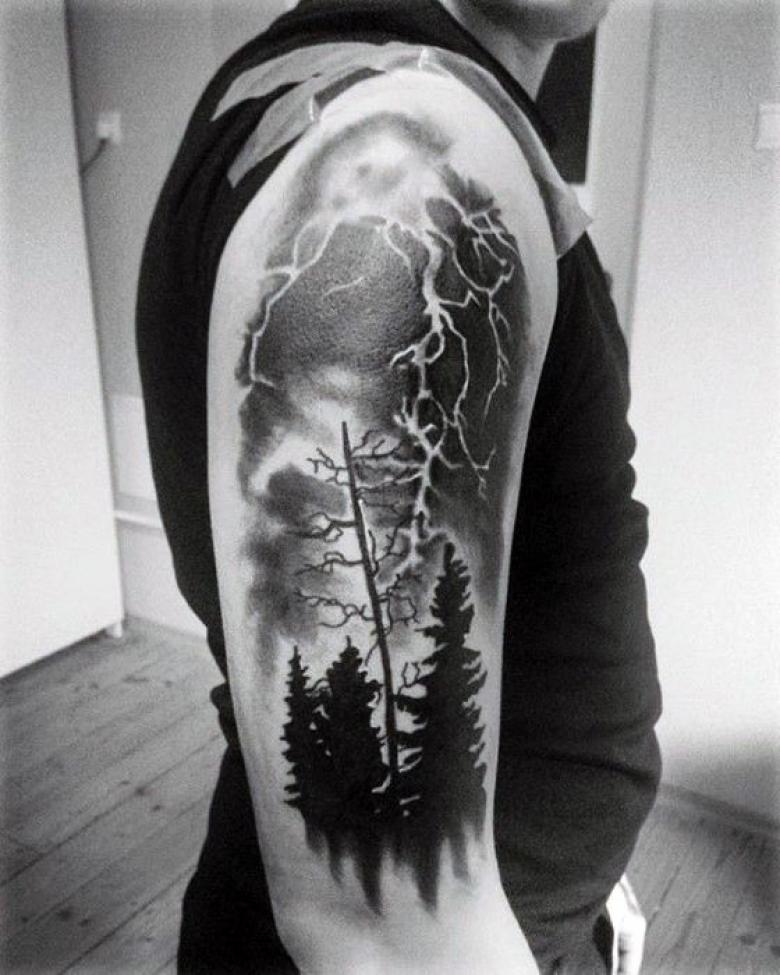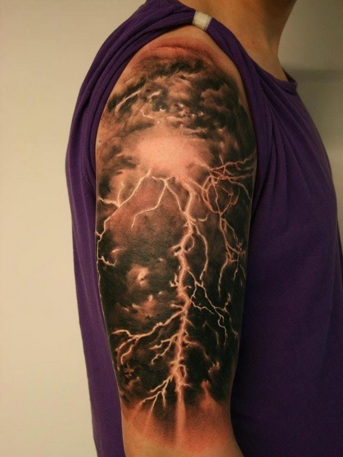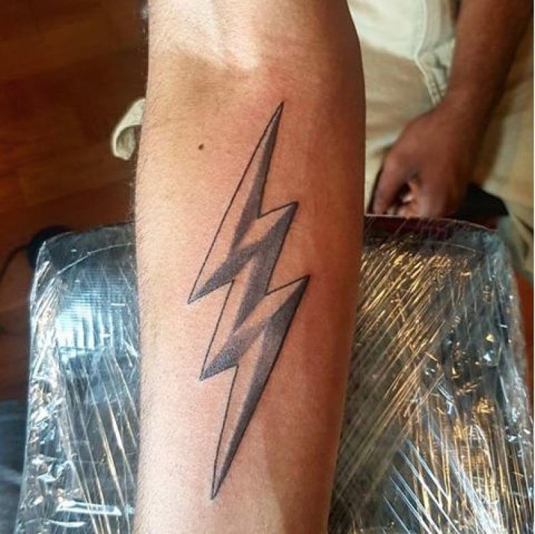 Un tatouage avec un éclair sur le corps d'un homme est un exemple frappant d'un bon choix parmi des milliers d'options possibles. Ce dessin vous permet de concrétiser votre philosophie de vie, l'admiration du divin, le sentiment de l'inexorabilité du destin, de dénoter la présence de forces supérieures dans votre vie.