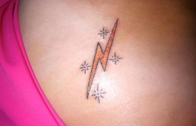 Dans l'esprit de la jeune fille légère et vive, les éclairs sur le corps peuvent aussi avoir des connotations d'esprit et de franchise. La propriétaire d'un tel tatouage ne sortira pas un mot de sa poche, elle dira tout ce qu'elle pense en face, elle sera capable de faire une bonne blague.